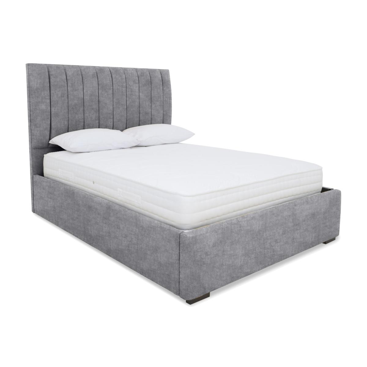Transform your bed and your bedroom with the Sleep Story Dickens range. Contemporary in style and priced to please, the beautifully upholstered pieces in this range are designed to bring home more than a touch of elegance. These ottoman bed frames, floor standing headboards and footboards feature the collection’s signature vertical fluting that’s neatly tailored, simple and understated. And with functionality to the fore – the range’s ottoman bed frames also include an electric-powered model for even easier access to your stored items – this range is an easy choice to make. The Sleep Story Dickens collection is handcrafted in the UK by Highgrove and is exclusively available at Furniture Village. Offering elegant contemporary style plus an abundance of easy-access underbed storage space, this electric ottoman bed frame is exactly what every bedroom needs. Handcrafted. Why you'll love it Make life easier and your bedroom more stylish with this electric ottoman bed frame. Contemporary luxury plus impressive extra storage at an exceptional price. The ottoman lift mechanism is electric powered so accessing the storage space is effortless. The sumptuous cushioned fluted headboard is so elegant. High-quality fabric upholstery in a wide choice of lovely colours. Sturdy wooden slatted mattress support. In small double, double, king and super king bed sizes. Handmade in the UK by Highgrove. Exclusively available at Furniture Village. This electric ottoman bed frame is part of our Sleep Story collection. What you need to know Mattress sold separately. Mattress base is composed of 28 wood slats in king size. This ottoman bed frame opens at the end. Maximum mattress weight is 80 kg for all sizes. Please keep hands clear of the mechanism when opening and closing the ottoman. Do not sit on the foot end of this ottoman bed frame when opening. Clean regularly using a soft brush or vacuum with the curtain attachment. Deal with any spills promptly. Professional cleaning advised for oil- and grease-based stains. Some fabrics can show wear on areas of more use or in direct sunlight. Flattening and shading of heavy wear areas on pile fabrics like velvet is unavoidable. Be sure to brush pile fabrics only in the direction of the pile. Please read our upholstery care guide for more advice.