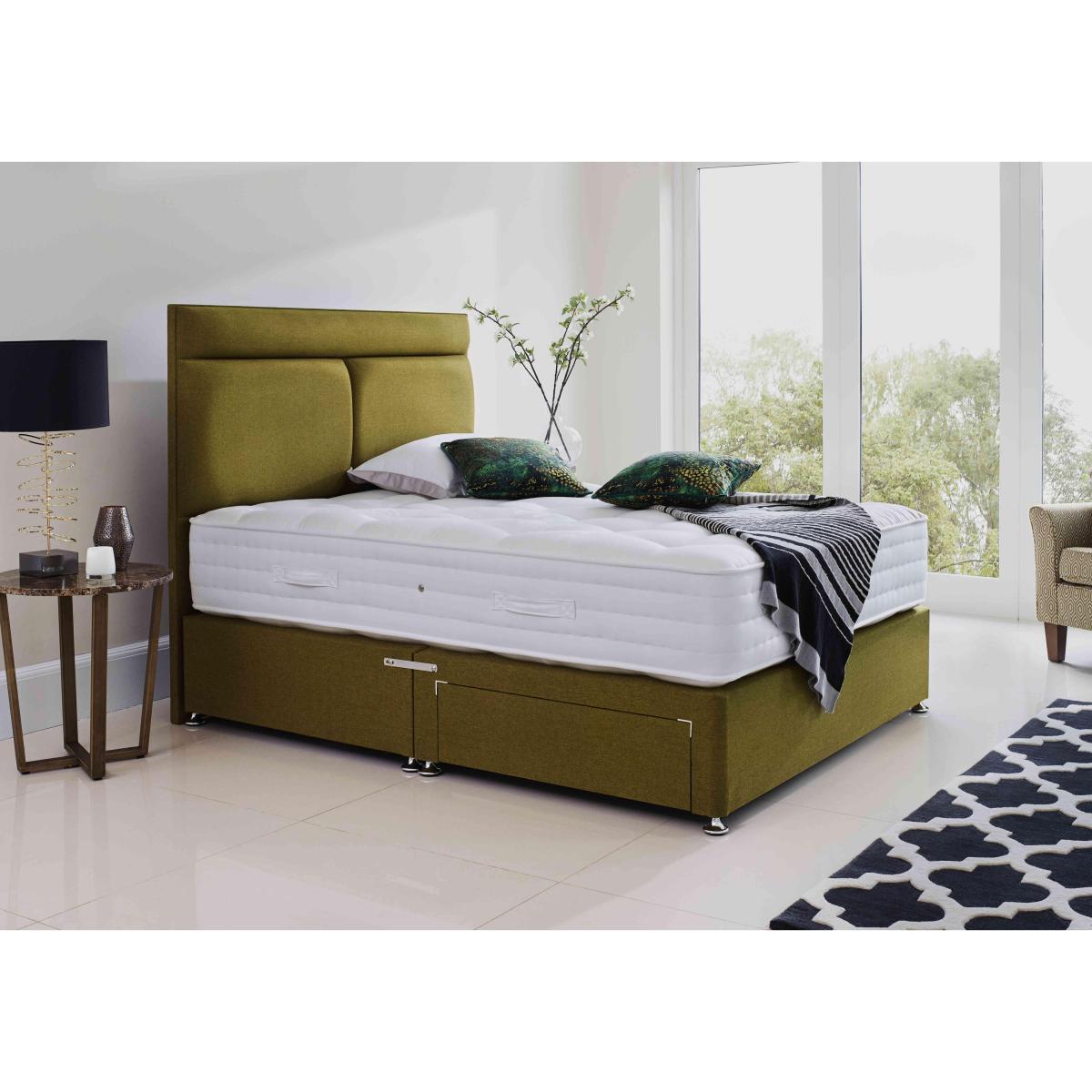 There’s something for everyone in the Sleep Story range, made in Britain and exclusive to Furniture Village. Whether your ideal mattress is traditional and tufted, pillow topped and pocket sprung, or microquilted and foam layered, you’ll find the promise of a wonderfully comfortable night’s sleep waiting for you right here. Pair your perfect mattress with a beautifully-upholstered, platform-top or sprung divan base, choose the spacious built-in storage that works for you – optional drawers, end-lift ottoman or side-lift ottoman – and complete the look with a stylish headboard. With a wide choice of traditionally handcrafted mattresses – including convenient roll up mattresses – storage divans and designer headboards, the incredible-value Sleep Story collection is tailor-made in the UK, just for you. Sprung-edge divan base with a choice of optional storage drawers. Beautifully upholstered in a choice of stylish fabrics. Handcrafted in Britain and exclusive to Furniture Village. Please note: Headboard and mattress shown may be purchased separately. Beautifully-handcrafted style along with practical integrated drawer storage – the Sleep Story divan base with drawers has it all, and at a fantastic-value price too. Designed and made in Britain exclusively for Furniture Village, this platform-top bed base features sprung edges, providing excellent support for all types of mattress. It’s available in a wide choice of hand-tailored upholstery fabrics and colours. Drawer storage is available in a wide choice of configurations including two drawer and end drawer styles – or no drawers at all, if you prefer. The perfect solution for a bedroom lacking storage space, these storage drawers are designed to hold extra bedding, clothes and other lighter-weight items. Available in all standard mattress sizes from single to super king size, this well-designed divan bed base bed base is exclusively available at Furniture Village. Divan bed bases are also available with side-lift and end-lift under bed ottoman storage space. Product images are representative. Find out more.
