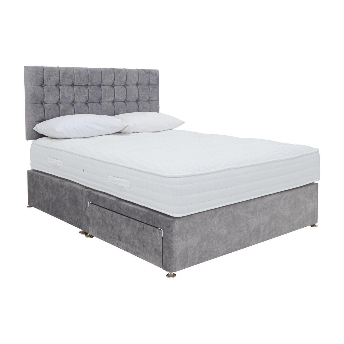 Firm- feel mattress comfort meets sophisticated divan style in this great- value divan set, only at Furniture Village. The mattress has medical- grade fillings for body- responsive comfort. Why you'll love it Great- value divan base plus ergonomic mattress with medical- grade fillings. Combination of pocket springs and foam in the mattress provides total body support. 1000 individually encased pocket springs in king size for correct spinal alignment. Foam layer responds to body movement for instant comfort. Hand- tufted. Hypoallergenic. Platform- top base with a choice of optional storage drawers. Available in a wide selection of stylish upholstery fabrics. Made in the UK by Highgrove and exclusive to Furniture Village. The Sleep Story Ergo 1000 range also includes a mattress and ottoman divan sets. What you need to know. Mattress type: Pocket spring and foam. Depth: 28 cm. Firmness: Medium. Springs: 1000 pocket springs in king size. Pillow top: No. Fillings: Medical grade foam. Cover:Breathable stretch fabric. Requires turning: No. Base type: Platform top with optional drawer storage. Sizes: Small single, single, small double, double, king and super king. Mattress care:Air for 4 hours before using to remove any odour. Allow at least 4 hours for springs to settle and for mattress to attain its full size. Indentations caused by settlement of fillings or body weight are normal and are not considered defects. If used on a slatted bed frame, the space between slats must be no wider than 7. 5 cm. Spaces wider than this may cause excess dipping of the mattress and invalidate the guarantee. Always use a mattress protector. Rotate regularly. Divan base care: Clean upholstery weekly using a soft brush or vacuum with the curtain attachment. Professional cleaning advised for oil- and grease- based stains. Please note: Divan base is supplied in two halves for small double, double, king and super king sizes.