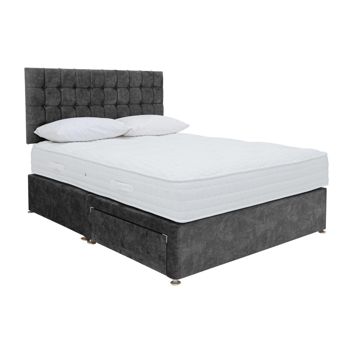 The Sleep Story by Highgrove Ergo 1000 range delivers quality ergonomic comfort at a great-value price. Experience total comfort and support thanks to the 1000 individually pocketed springs which ensure correct spinal alignment while you sleep. And with layers of medical-grade fillings, there’s luxurious cushioning to indulge in too. A generous reflex foam layer delivers total body support, responding to your body’s movements through the night and breathable stretch cover breathes with you while you sleep. Divan bases are beautifully upholstered in a choice of colours and come with a range of space-saving drawer and ottoman storage options. Handcrafted in Britain exclusively for Furniture Village. Firm-feel mattress comfort meets sophisticated divan style in this great-value divan set, only at Furniture Village. The mattress has medical-grade fillings for body-responsive comfort. Why you'll love it. Great-value divan base plus ergonomic mattress with medical-grade fillings. Combination of pocket springs and foam in the mattress provides total body support. 1000 individually encased pocket springs in king size for correct spinal alignment. Foam layer responds to body movement for instant comfort. Hand-tufted. Hypoallergenic. Platform-top base with a choice of optional storage drawers. Available in a wide selection of stylish upholstery fabrics. Made in the UK by Highgrove and exclusive to Furniture Village. The Sleep Story Ergo 1000 range also includes a mattress and ottoman divan sets. What you need to know. Headboard is an optional extra. Mattress type: Pocket spring and foam. Depth: 28 cm. Firmness: Medium. Springs: 1000 pocket springs in king size. Pillow top: No. Fillings: Medical grade foam. Cover: Breathable stretch fabric. Requires turning: No. Base type: Platform top with optional drawer storage. Sizes: Small single, single, small double, double, king and super king. Mattress care: Air for 4 hours before using to remove any odour. Allow at least 4 hours for springs to settle and for mattress to attain its full size. Indentations caused by settlement of fillings or body weight are normal and are not considered defects. If used on a slatted bed frame, the space between slats must be no wider than 7.5 cm. Spaces wider than this may cause excess dipping of the mattress and invalidate the guarantee. Always use a mattress protector. Rotate regularly. Divan base care: Clean upholstery weekly using a soft brush or vacuum with the curtain attachment. Professional cleaning advised for oil- and grease-based stains. Please note: Divan base is supplied in two halves for small double, double, king and super king sizes.