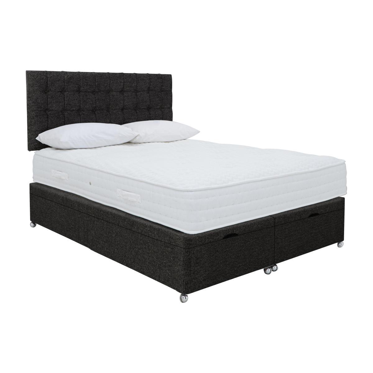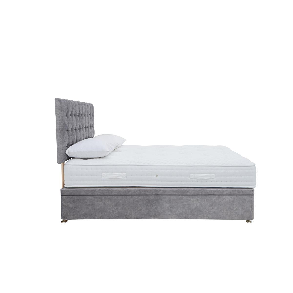 The Sleep Story by Highgrove Ergo 1000 range delivers quality ergonomic comfort at a great-value price. Experience total comfort and support thanks to the 1000 individually pocketed springs which ensure correct spinal alignment while you sleep. And with layers of medical-grade fillings, there’s luxurious cushioning to indulge in too. A generous reflex foam layer delivers total body support, responding to your body’s movements through the night and breathable stretch cover breathes with you while you sleep. Divan bases are beautifully upholstered in a choice of colours and come with a range of space-saving drawer and ottoman storage options. Handcrafted in Britain exclusively for Furniture Village. Ergonomic body-responsive mattress with medical-grade fillings meets ergonomic space-saving divan base with ottoman storage. Handcrafted for Furniture Village and yours at an incredible price. Why you'll love it. Great-value ottoman divan base plus an ergonomic mattress with medical-grade fillings. Combination of pocket springs and foam in the mattress provides total body support. 1000 individually encased pocket springs in king size for correct spinal alignment. Foam layer responds to body movement for instant comfort. Hand-tufted. Hypoallergenic. Platform-top base offers useful end-opening ottoman storage. Available in a wide selection of stylish upholstery fabrics. Made in the UK by Highgrove and exclusive to Furniture Village. The Sleep Story Ergo 1000 range also includes a mattress and divan sets. What you need to know. Headboard is an optional extra. Mattress type: Pocket spring and medical grade foam. Depth: 28 cm. Firmness: Medium. Springs: 1000 pocket springs in king size. Pillow top: No. Fillings: Medical grade foam. Cover: Breathable stretch fabric. Requires turning: No. Base type: Platform top with end-opening ottoman storage. Sizes: Small single, single, small double, double, king and super king. Mattress care: Air for 4 hours before using to remove any odour. Allow at least 4 hours for springs to settle and for mattress to attain its full size. Indentations caused by settlement of fillings or body weight are normal and are not considered defects. If used on a slatted bed frame, the space between slats must be no wider than 7.5 cm. Spaces wider than this may cause excess dipping of the mattress and invalidate the guarantee. Always use a mattress protector. Rotate regularly. Divan base care: Clean upholstery weekly using a soft brush or vacuum with the curtain attachment. Professional cleaning advised for oil- and grease-based stains. Please note: Divan base is supplied in two halves for small double, double, king and super king sizes.