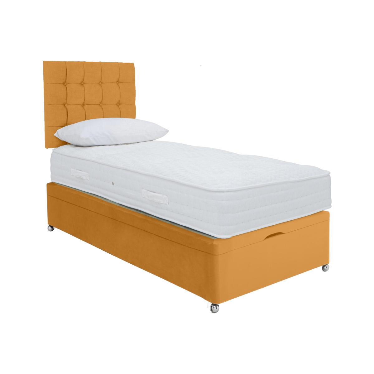 The Sleep Story by Highgrove Ergo 1000 range delivers quality ergonomic comfort at a great-value price. Experience total comfort and support thanks to the 1000 individually pocketed springs which ensure correct spinal alignment while you sleep. And with layers of medical-grade fillings, there’s luxurious cushioning to indulge in too. A generous reflex foam layer delivers total body support, responding to your body’s movements through the night and breathable stretch cover breathes with you while you sleep. Divan bases are beautifully upholstered in a choice of colours and come with a range of space-saving drawer and ottoman storage options. Handcrafted in Britain exclusively for Furniture Village. Ergonomic body-responsive mattress with medical-grade fillings meets ergonomic space-saving divan base with ottoman storage. Handcrafted for Furniture Village and yours at an incredible price. Why you'll love it. Great-value ottoman divan base plus an ergonomic mattress with medical-grade fillings. Combination of pocket springs and foam in the mattress provides total body support. 1000 individually encased pocket springs in king size for correct spinal alignment. Foam layer responds to body movement for instant comfort. Hand-tufted. Hypoallergenic. Platform-top base offers useful end-opening ottoman storage. Available in a wide selection of stylish upholstery fabrics. Made in the UK by Highgrove and exclusive to Furniture Village. The Sleep Story Ergo 1000 range also includes a mattress and divan sets. What you need to know. Headboard is an optional extra. Mattress type: Pocket spring and medical grade foam. Depth: 28 cm. Firmness: Medium. Springs: 1000 pocket springs in king size. Pillow top: No. Fillings: Medical grade foam. Cover: Breathable stretch fabric. Requires turning: No. Base type: Platform top with end-opening ottoman storage. Sizes: Small single, single, small double, double, king and super king. Mattress care: Air for 4 hours before using to remove any odour. Allow at least 4 hours for springs to settle and for mattress to attain its full size. Indentations caused by settlement of fillings or body weight are normal and are not considered defects. If used on a slatted bed frame, the space between slats must be no wider than 7.5 cm. Spaces wider than this may cause excess dipping of the mattress and invalidate the guarantee. Always use a mattress protector. Rotate regularly. Divan base care: Clean upholstery weekly using a soft brush or vacuum with the curtain attachment. Professional cleaning advised for oil- and grease-based stains. Please note: Divan base is supplied in two halves for small double, double, king and super king sizes.