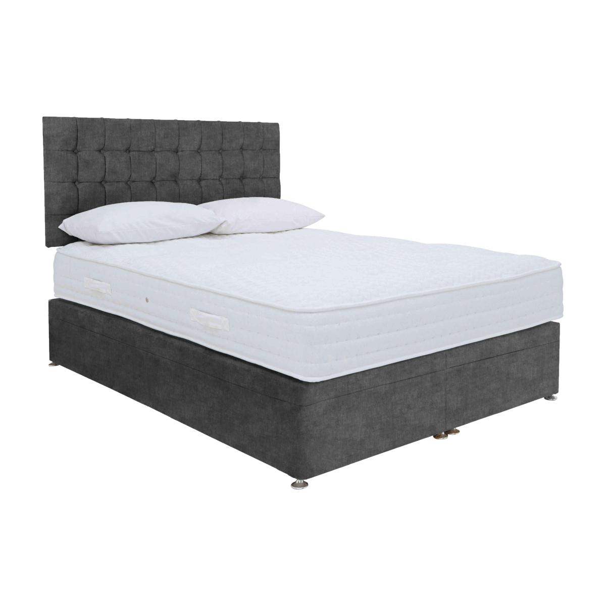 The Sleep Story by Highgrove Ergo 1000 range delivers quality ergonomic comfort at a great-value price. Experience total comfort and support thanks to the 1000 individually pocketed springs which ensure correct spinal alignment while you sleep. And with layers of medical-grade fillings, there’s luxurious cushioning to indulge in too. A generous reflex foam layer delivers total body support, responding to your body’s movements through the night and breathable stretch cover breathes with you while you sleep. Divan bases are beautifully upholstered in a choice of colours and come with a range of space-saving drawer and ottoman storage options. Handcrafted in Britain exclusively for Furniture Village. You’ll sleep better with the body-responsive mattress in this divan set – and you’ll love the easy-access electric-powered ottoman storage base. Only at Furniture Village. Why you'll love it This power ottoman divan set includes an ultra-comfy sprung foam mattress. Style, comfort and effortless storage at a great-value price. Combination of pocket springs and foam in the mattress provides total body support. 1000 individually encased pocket springs in king size for correct spinal alignment. Foam layer responds to body movement for instant comfort. Mattress is hand-tufted and hypoallergenic. Power ottoman divan base means roomy storage with no lifting required. Child lock feature makes the electric mechanism as safe as it is simple. Platform-top style for excellent mattress support. Choose from a wide selection of stylish upholstery fabrics. Made in the UK by Highgrove and exclusive to Furniture Village. Only available online. This power ottoman divan set is part of the Sleep Story Ergo 1000 range. What you need to know Headboard is an optional extra. Mattress type: Pocket spring and medical grade foam. Depth: 28 cm. Firmness: Medium. Springs: 1000 pocket springs in king size. Pillow top: No. Fillings: Medical grade foam. Cover:Breathable stretch fabric. Requires turning: No. Base type: Platform top with electric-powered end-opening ottoman storage base. Sizes: Small single, single, small double, double, king and super king. Mattress care:Air for 4 hours before using to remove any odour. Indentations caused by settlement of fillings or body weight are normal and are not considered defects. If used on a slatted bed frame, the space between slats must be no wider than 7.5 cm. Spaces wider than this may cause excess dipping of the mattress and invalidate the guarantee. Always use a mattress protector. Rotate regularly. Divan base care: Clean upholstery weekly using a soft brush or vacuum with the curtain attachment. Professional cleaning advised for oil- and grease-based stains. Be careful care when opening and closing the ottoman base. The ottoman base is powered by mains electricity. Please ensure that you will be able to connect it to a power source before ordering. Ordering a small double, double, king or super king size? Your divan base will be supplied in two halves for easier access.
