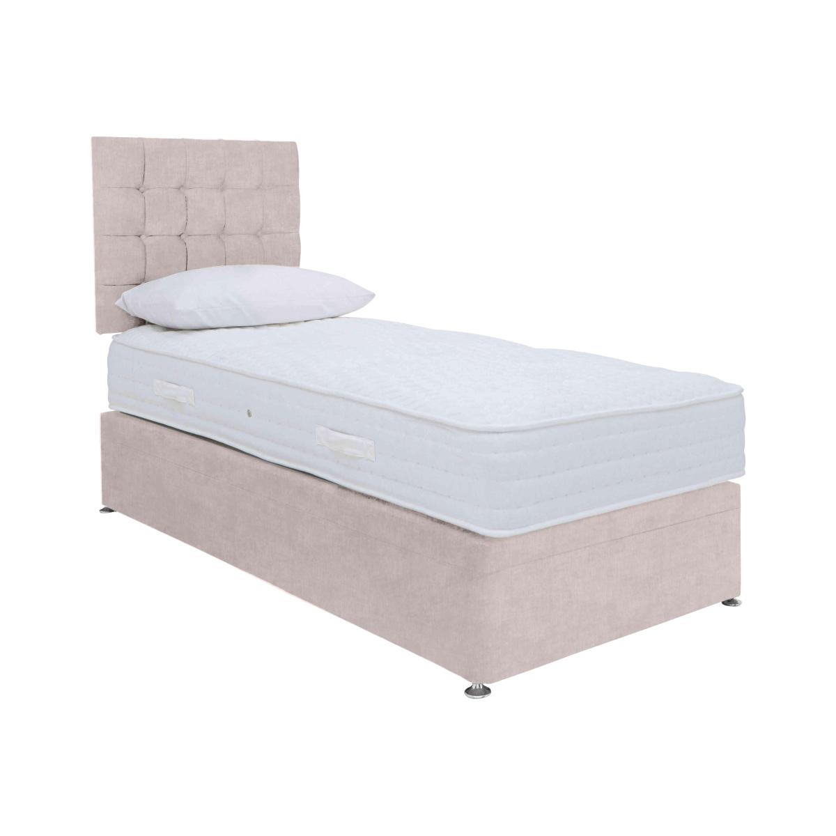 The Sleep Story by Highgrove Ergo 1000 range delivers quality ergonomic comfort at a great-value price. Experience total comfort and support thanks to the 1000 individually pocketed springs which ensure correct spinal alignment while you sleep. And with layers of medical-grade fillings, there’s luxurious cushioning to indulge in too. A generous reflex foam layer delivers total body support, responding to your body’s movements through the night and breathable stretch cover breathes with you while you sleep. Divan bases are beautifully upholstered in a choice of colours and come with a range of space-saving drawer and ottoman storage options. Handcrafted in Britain exclusively for Furniture Village. You’ll sleep better with the body-responsive mattress in this divan set – and you’ll love the easy-access electric-powered ottoman storage base. Only at Furniture Village. Why you'll love it This power ottoman divan set includes an ultra-comfy sprung foam mattress. Style, comfort and effortless storage at a great-value price. Combination of pocket springs and foam in the mattress provides total body support. 1000 individually encased pocket springs in king size for correct spinal alignment. Foam layer responds to body movement for instant comfort. Mattress is hand-tufted and hypoallergenic. Power ottoman divan base means roomy storage with no lifting required. Child lock feature makes the electric mechanism as safe as it is simple. Platform-top style for excellent mattress support. Choose from a wide selection of stylish upholstery fabrics. Made in the UK by Highgrove and exclusive to Furniture Village. Only available online. This power ottoman divan set is part of the Sleep Story Ergo 1000 range. What you need to know Headboard is an optional extra. Mattress type: Pocket spring and medical grade foam. Depth: 28 cm. Firmness: Medium. Springs: 1000 pocket springs in king size. Pillow top: No. Fillings: Medical grade foam. Cover:Breathable stretch fabric. Requires turning: No. Base type: Platform top with electric-powered end-opening ottoman storage base. Sizes: Small single, single, small double, double, king and super king. Mattress care:Air for 4 hours before using to remove any odour. Indentations caused by settlement of fillings or body weight are normal and are not considered defects. If used on a slatted bed frame, the space between slats must be no wider than 7.5 cm. Spaces wider than this may cause excess dipping of the mattress and invalidate the guarantee. Always use a mattress protector. Rotate regularly. Divan base care: Clean upholstery weekly using a soft brush or vacuum with the curtain attachment. Professional cleaning advised for oil- and grease-based stains. Be careful care when opening and closing the ottoman base. The ottoman base is powered by mains electricity. Please ensure that you will be able to connect it to a power source before ordering. Ordering a small double, double, king or super king size? Your divan base will be supplied in two halves for easier access.