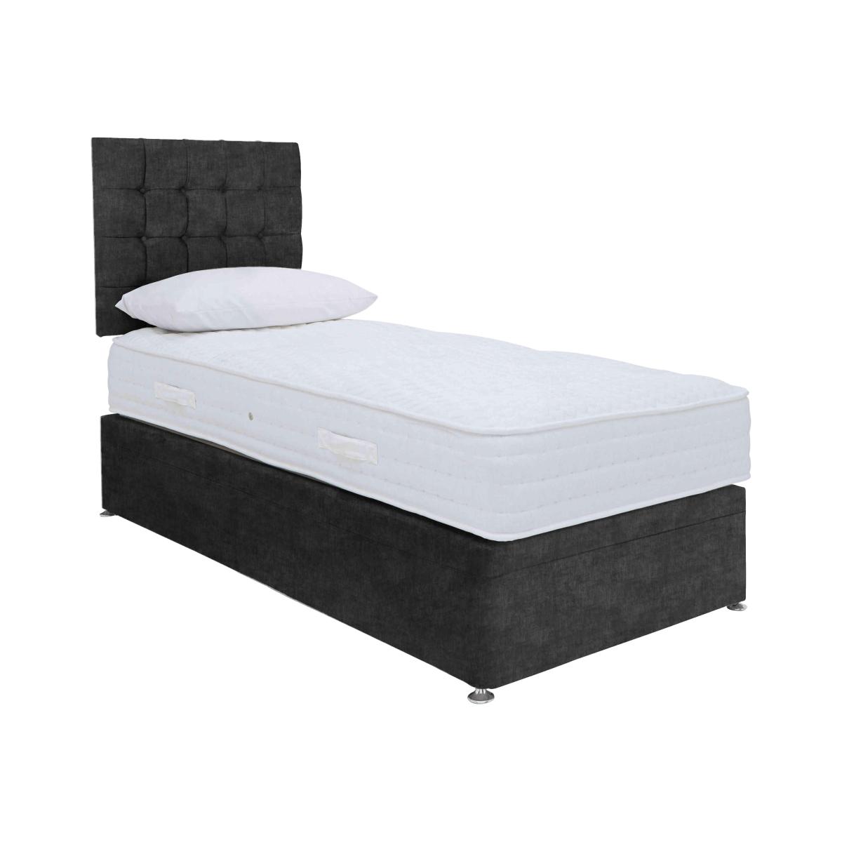 The Sleep Story by Highgrove Ergo 1000 range delivers quality ergonomic comfort at a great-value price. Experience total comfort and support thanks to the 1000 individually pocketed springs which ensure correct spinal alignment while you sleep. And with layers of medical-grade fillings, there’s luxurious cushioning to indulge in too. A generous reflex foam layer delivers total body support, responding to your body’s movements through the night and breathable stretch cover breathes with you while you sleep. Divan bases are beautifully upholstered in a choice of colours and come with a range of space-saving drawer and ottoman storage options. Handcrafted in Britain exclusively for Furniture Village. You’ll sleep better with the body-responsive mattress in this divan set – and you’ll love the easy-access electric-powered ottoman storage base. Only at Furniture Village. Why you'll love it This power ottoman divan set includes an ultra-comfy sprung foam mattress. Style, comfort and effortless storage at a great-value price. Combination of pocket springs and foam in the mattress provides total body support. 1000 individually encased pocket springs in king size for correct spinal alignment. Foam layer responds to body movement for instant comfort. Mattress is hand-tufted and hypoallergenic. Power ottoman divan base means roomy storage with no lifting required. Child lock feature makes the electric mechanism as safe as it is simple. Platform-top style for excellent mattress support. Choose from a wide selection of stylish upholstery fabrics. Made in the UK by Highgrove and exclusive to Furniture Village. Only available online. This power ottoman divan set is part of the Sleep Story Ergo 1000 range. What you need to know Headboard is an optional extra. Mattress type: Pocket spring and medical grade foam. Depth: 28 cm. Firmness: Medium. Springs: 1000 pocket springs in king size. Pillow top: No. Fillings: Medical grade foam. Cover:Breathable stretch fabric. Requires turning: No. Base type: Platform top with electric-powered end-opening ottoman storage base. Sizes: Small single, single, small double, double, king and super king. Mattress care:Air for 4 hours before using to remove any odour. Indentations caused by settlement of fillings or body weight are normal and are not considered defects. If used on a slatted bed frame, the space between slats must be no wider than 7.5 cm. Spaces wider than this may cause excess dipping of the mattress and invalidate the guarantee. Always use a mattress protector. Rotate regularly. Divan base care: Clean upholstery weekly using a soft brush or vacuum with the curtain attachment. Professional cleaning advised for oil- and grease-based stains. Be careful care when opening and closing the ottoman base. The ottoman base is powered by mains electricity. Please ensure that you will be able to connect it to a power source before ordering. Ordering a small double, double, king or super king size? Your divan base will be supplied in two halves for easier access.