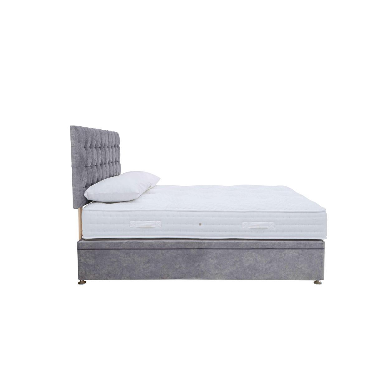 The Sleep Story by Highgrove Ergo 1000 range delivers quality ergonomic comfort at a great-value price. Experience total comfort and support thanks to the 1000 individually pocketed springs which ensure correct spinal alignment while you sleep. And with layers of medical-grade fillings, there’s luxurious cushioning to indulge in too. A generous reflex foam layer delivers total body support, responding to your body’s movements through the night and breathable stretch cover breathes with you while you sleep. Divan bases are beautifully upholstered in a choice of colours and come with a range of space-saving drawer and ottoman storage options. Handcrafted in Britain exclusively for Furniture Village. You’ll sleep better with the body-responsive mattress in this divan set – and you’ll love the easy-access electric-powered ottoman storage base. Only at Furniture Village. Why you'll love it This power ottoman divan set includes an ultra-comfy sprung foam mattress. Style, comfort and effortless storage at a great-value price. Combination of pocket springs and foam in the mattress provides total body support. 1000 individually encased pocket springs in king size for correct spinal alignment. Foam layer responds to body movement for instant comfort. Mattress is hand-tufted and hypoallergenic. Power ottoman divan base means roomy storage with no lifting required. Child lock feature makes the electric mechanism as safe as it is simple. Platform-top style for excellent mattress support. Choose from a wide selection of stylish upholstery fabrics. Made in the UK by Highgrove and exclusive to Furniture Village. Only available online. This power ottoman divan set is part of the Sleep Story Ergo 1000 range. What you need to know Headboard is an optional extra. Mattress type: Pocket spring and medical grade foam. Depth: 28 cm. Firmness: Medium. Springs: 1000 pocket springs in king size. Pillow top: No. Fillings: Medical grade foam. Cover:Breathable stretch fabric. Requires turning: No. Base type: Platform top with electric-powered end-opening ottoman storage base. Sizes: Small single, single, small double, double, king and super king. Mattress care:Air for 4 hours before using to remove any odour. Indentations caused by settlement of fillings or body weight are normal and are not considered defects. If used on a slatted bed frame, the space between slats must be no wider than 7.5 cm. Spaces wider than this may cause excess dipping of the mattress and invalidate the guarantee. Always use a mattress protector. Rotate regularly. Divan base care: Clean upholstery weekly using a soft brush or vacuum with the curtain attachment. Professional cleaning advised for oil- and grease-based stains. Be careful care when opening and closing the ottoman base. The ottoman base is powered by mains electricity. Please ensure that you will be able to connect it to a power source before ordering. Ordering a small double, double, king or super king size? Your divan base will be supplied in two halves for easier access.