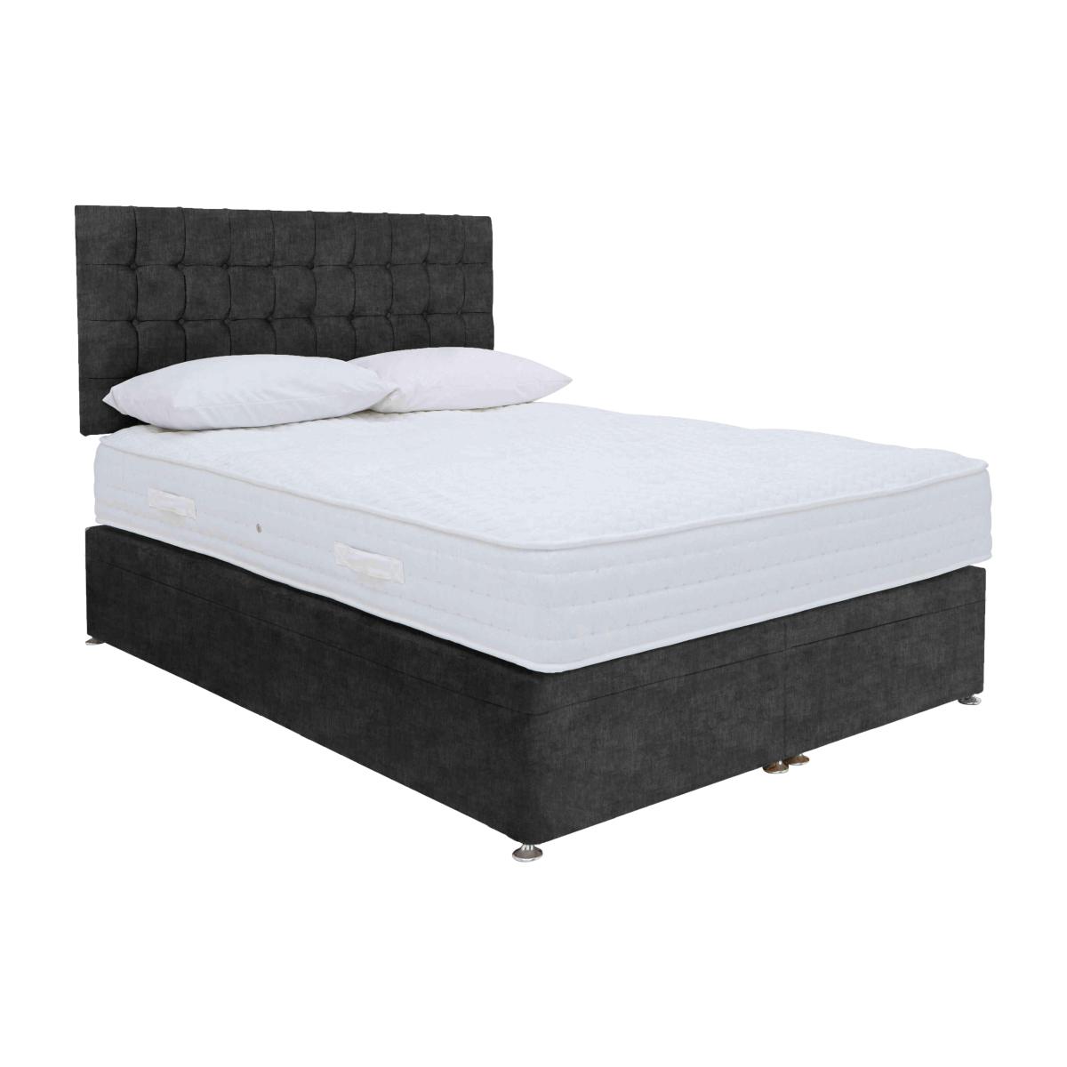 The Sleep Story by Highgrove Ergo 1000 range delivers quality ergonomic comfort at a great-value price. Experience total comfort and support thanks to the 1000 individually pocketed springs which ensure correct spinal alignment while you sleep. And with layers of medical-grade fillings, there’s luxurious cushioning to indulge in too. A generous reflex foam layer delivers total body support, responding to your body’s movements through the night and breathable stretch cover breathes with you while you sleep. Divan bases are beautifully upholstered in a choice of colours and come with a range of space-saving drawer and ottoman storage options. Handcrafted in Britain exclusively for Furniture Village. You’ll sleep better with the body-responsive mattress in this divan set – and you’ll love the easy-access electric-powered ottoman storage base. Only at Furniture Village. Why you'll love it This power ottoman divan set includes an ultra-comfy sprung foam mattress. Style, comfort and effortless storage at a great-value price. Combination of pocket springs and foam in the mattress provides total body support. 1000 individually encased pocket springs in king size for correct spinal alignment. Foam layer responds to body movement for instant comfort. Mattress is hand-tufted and hypoallergenic. Power ottoman divan base means roomy storage with no lifting required. Child lock feature makes the electric mechanism as safe as it is simple. Platform-top style for excellent mattress support. Choose from a wide selection of stylish upholstery fabrics. Made in the UK by Highgrove and exclusive to Furniture Village. Only available online. This power ottoman divan set is part of the Sleep Story Ergo 1000 range. What you need to know Headboard is an optional extra. Mattress type: Pocket spring and medical grade foam. Depth: 28 cm. Firmness: Medium. Springs: 1000 pocket springs in king size. Pillow top: No. Fillings: Medical grade foam. Cover:Breathable stretch fabric. Requires turning: No. Base type: Platform top with electric-powered end-opening ottoman storage base. Sizes: Small single, single, small double, double, king and super king. Mattress care:Air for 4 hours before using to remove any odour. Indentations caused by settlement of fillings or body weight are normal and are not considered defects. If used on a slatted bed frame, the space between slats must be no wider than 7.5 cm. Spaces wider than this may cause excess dipping of the mattress and invalidate the guarantee. Always use a mattress protector. Rotate regularly. Divan base care: Clean upholstery weekly using a soft brush or vacuum with the curtain attachment. Professional cleaning advised for oil- and grease-based stains. Be careful care when opening and closing the ottoman base. The ottoman base is powered by mains electricity. Please ensure that you will be able to connect it to a power source before ordering. Ordering a small double, double, king or super king size? Your divan base will be supplied in two halves for easier access.
