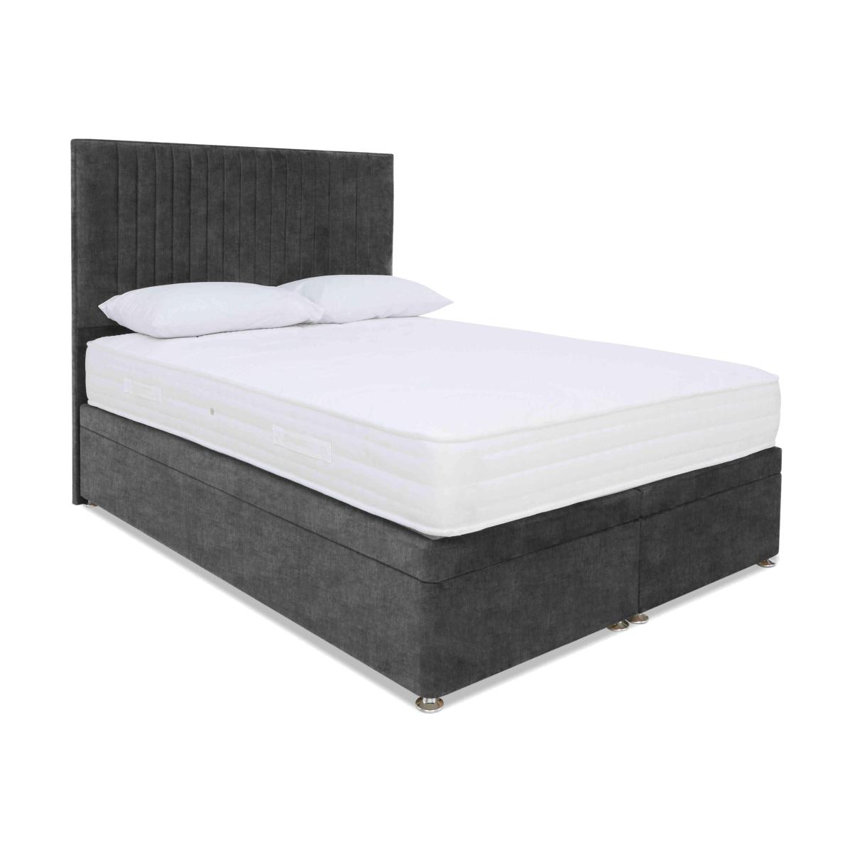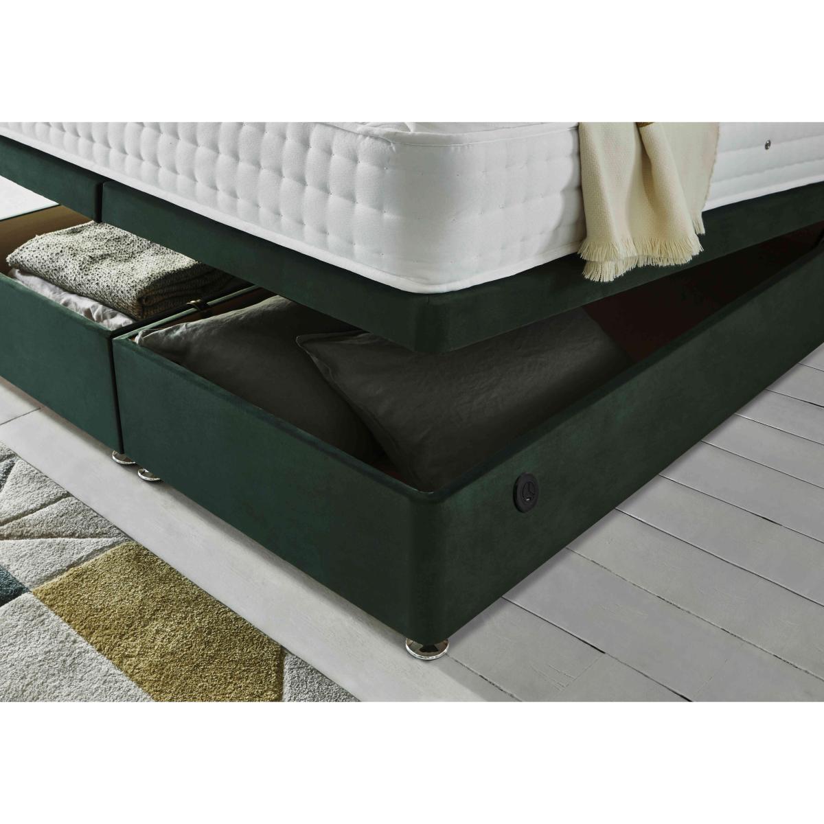Firm-feel mattress comfort now comes with advanced cooling technology. The cooling gel fillings and Cooltouch mattress covers of our Sleep Story Firm Gel collection mean that you can enjoy the firm-support pocket spring and foam feel that you love with the welcome assurance that you won’t overheat at night. And, to make things even easier, we’ve paired these fabulous mattresses with a wide choice of divan base options including ones with built-in storage drawers and underbed storage. The range even includes two power ottoman bases so you can enjoy spacious and ergonomically designed storage with absolutely no heavy lifting. Made by Highgrove, the Sleep Story Firm Gel collection is only available at Furniture Village. Enjoy firm mattress support, the comfort of cooling gel fillings and easy electric-powered ottoman storage in this fabulous ottoman divan set. Only at Furniture Village. Why you'll love it Power end ottoman divan set with firm gel mattress is a winner all round. Firm mattress support meets effortless divan storage at a great-value price. Mattress has advanced gel fillings to help regulate body temperature for undisturbed sleep. 1000 pocket springs in king size for head to toe firm support. Special Cooltouch mattress cover for totally refreshing sleep. End-opening ottoman divan base is electric powered for storage with ease. Electric cut-out system makes this a super-safe choice. Platform-top style ensures excellent mattress support. Upholstered in a wide choice of stylish and sophisticated fabrics. Available in every standard bed size. Made in the UK by Highgrove and exclusive to Furniture Village. This power end ottoman divan set is part of the Sleep Story Firm Gel range. What you need to know Headboard is an optional extra. Mattress type: Pocket spring and gel foam. Depth: 23 cm. Firmness: Firm. Springs: 1000 pocket springs in king size. Pillow top: No. Fillings: Cooling gel foam. Cover: Cooltouch fabric. Requires turning: No. Base type: Platform top with electric-powered end-opening ottoman storage. Sizes: Small single, single, small double, double, king and super king. Mattress care:Air for 4 hours before using to remove any odour. Indentations caused by settlement of fillings or body weight are normal and are not considered defects. If used on a slatted bed frame, the space between slats must be no wider than 7.5 cm. Spaces wider than this may cause excess dipping of the mattress and invalidate the guarantee. Always use a mattress protector. Rotate regularly. Divan base care: Clean upholstery weekly using a soft brush or vacuum with the curtain attachment. Professional cleaning advised for oil- and grease-based stains. Be careful care when opening and closing the ottoman base. The ottoman base is powered by mains electricity. Please ensure that you will be able to connect it to a power source before ordering. Ordering a small double, double, king or super king size? Your divan base will be supplied in two halves for easier access.