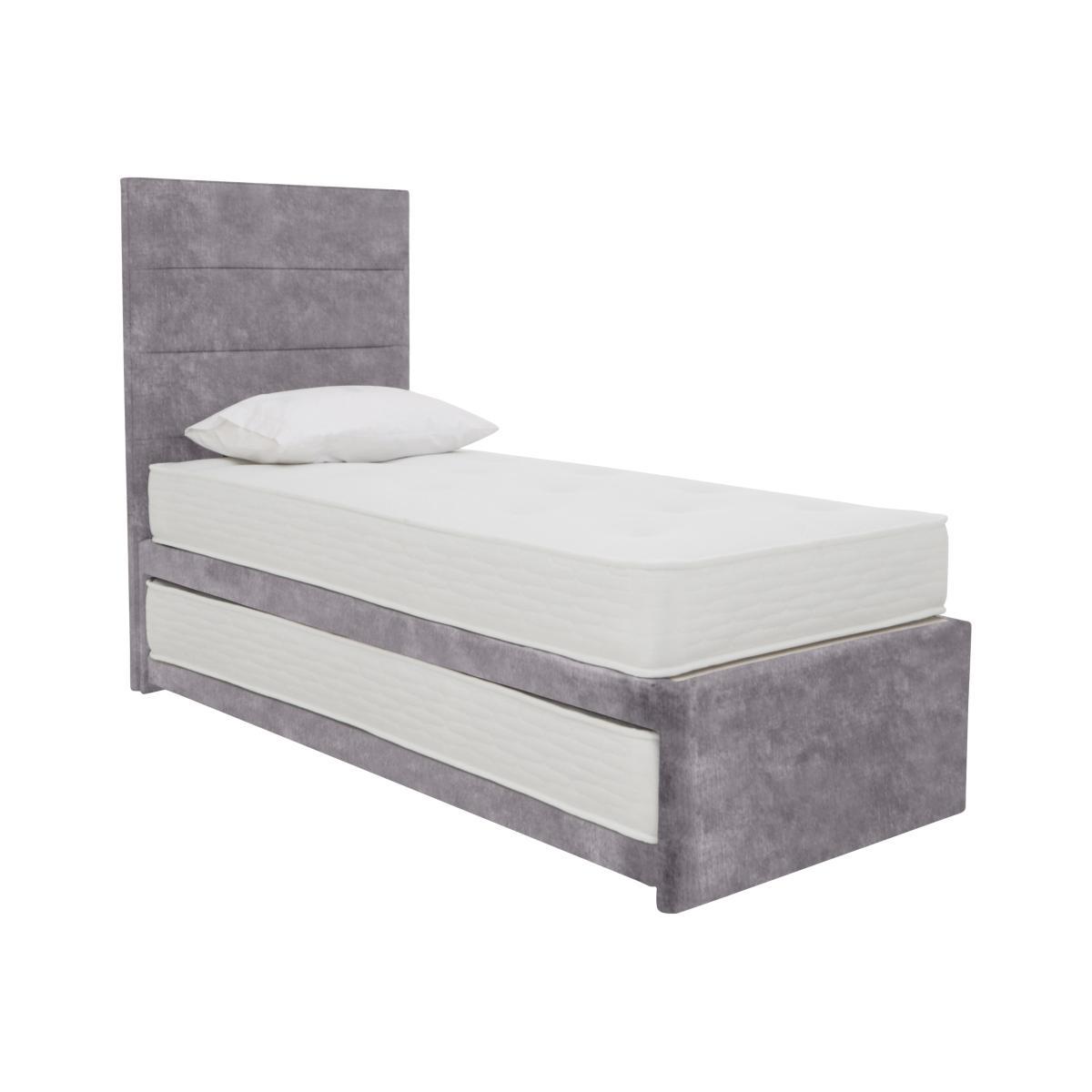 There’s something for everyone in the Sleep Story range, made in Britain and exclusive to Furniture Village. Whether your ideal mattress is traditional and tufted, pillow topped and pocket sprung, or microquilted and foam layered, you’ll find the promise of a wonderfully comfortable night’s sleep waiting for you right here. Pair your perfect mattress with a beautifully-upholstered, platform-top or sprung divan base, choose the spacious built-in storage that works for you – optional drawers, end-lift ottoman or side-lift ottoman – and complete the look with a stylish headboard. With a wide choice of traditionally handcrafted mattresses – including convenient roll up mattresses – storage divans, adjustable beds, guest beds and designer headboards, the incredible-value Sleep Story collection is tailor-made in the UK, just for you. A clever solution for smaller guest rooms and teen bedrooms. Single bed quickly converts into two singles or a super king size bed. A Furniture Village online exclusive. Make the most of your space with the single bed that converts to a super king size bed – and back again – in seconds. The Sleep Story guest bed with pocket sprung mattresses is perfect for a teen bedroom or a spare room, and it’s incredible value too. Simply slide the second bed out from under the divan base and see how quickly it pops up into place. Zip the two mattresses together to form a large and very comfortable guest bed for two people, or leave them as two separate single beds. Both mattresses are 19 cm deep and offer firm-feel comfort thanks to well-crafted pocket spring units and generous layers of fillings. Sides are reinforced for edge support, and mattress covers are made of microquilted Coolmax® stretch fabric. The platform top divan base is upholstered in beautiful high-quality fabric. Choose from a wide range of fabric styles and colours. The clever Sleep Story guest bed with pocket sprung mattresses is part of the Sleep Story guest bed collection, handcrafted in Britain and exclusively available online at Furniture Village. Product images are representative. Find out more. Did you know?. The mattress should be aired for four hours after delivery to freshen and remove any aroma from storage. It may take time for your mattress to attain its full size once the springs have settled to the correct position. This is due to the mattress being upright during transit. Settlement of fillings and indentations caused by body weight compressing the fillings are natural and not considered defects. This can be minimised by regular rotating. Headboard sold separately.
