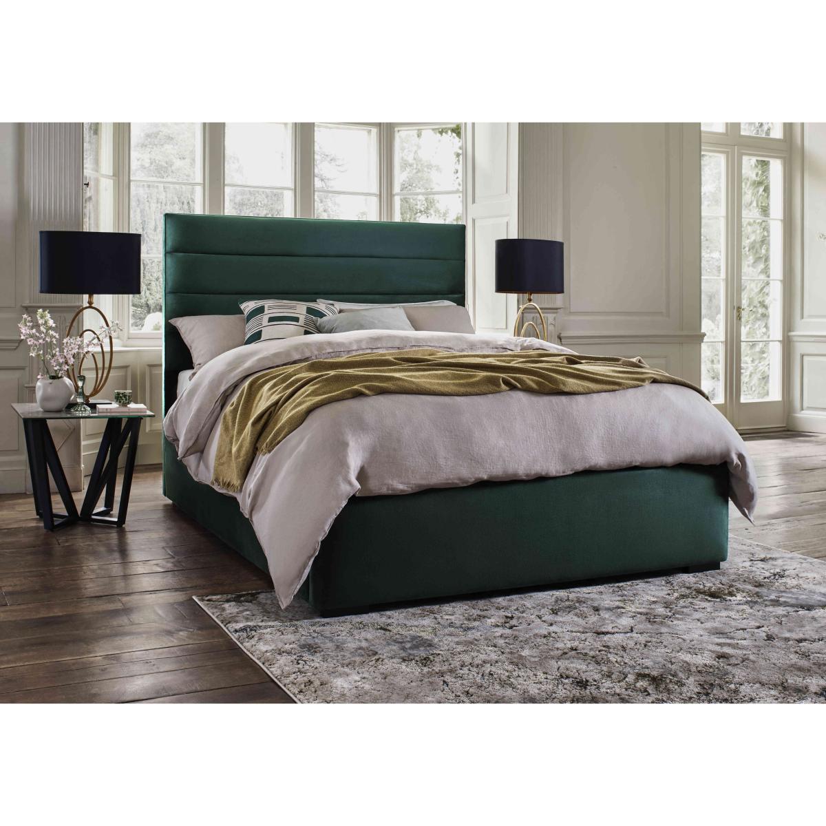 Sleek and chic, our Sleep Story Horizon collection makes it easy and affordable to create a luxurious bedroom. As well as a headboard, the range offers ottoman bed frames with huge underbed storage spaces including one that’s electric powered to make accessing and closing the storage space even easier. The collection's signature style motif – contemporary horizontal fluting – is understated and elegant, equally at home in both classic and modern bedrooms, and everything is upholstered in a wide choice of fabrics. The great-value Sleep Story Horizon collection is handcrafted in the UK by Highgrove and is exclusively available at Furniture Village. This stylish bed frame offers powerful storage in more ways than one. The electric ottoman lift mechanism makes opening and closing this bed frame’s storage compartment so easy. Why you'll love it Make life easier and your bedroom more stylish with this electric ottoman bed frame. Contemporary luxury plus impressive extra storage at an exceptional price. The ottoman lift mechanism is electric powered so accessing the storage space is effortless. Well-cushioned headboard with understated horizontal stitching. High-quality fabric upholstery in a wide choice of lovely colours. Sturdy wooden slatted mattress support. In small double, double, king and super king bed sizes. Handmade in the UK by Highgrove. Exclusively available at Furniture Village. This electric ottoman bed frame is part of our Sleep Story collection. What you need to know Mattress sold separately. Mattress base is composed of 28 wood slats in king size. This ottoman bed frame opens at the end. Maximum mattress weight is 80 kg for all sizes. Please keep hands clear of the mechanism when opening and closing the ottoman. Do not sit on the foot end of this ottoman bed frame when opening. Clean regularly using a soft brush or vacuum with the curtain attachment. Deal with any spills promptly. Professional cleaning advised for oil- and grease-based stains. Some fabrics can show wear on areas of more use or in direct sunlight. Flattening and shading of heavy wear areas on pile fabrics like velvet is unavoidable. Be sure to brush pile fabrics only in the direction of the pile. Please read our upholstery care guide for more advice.