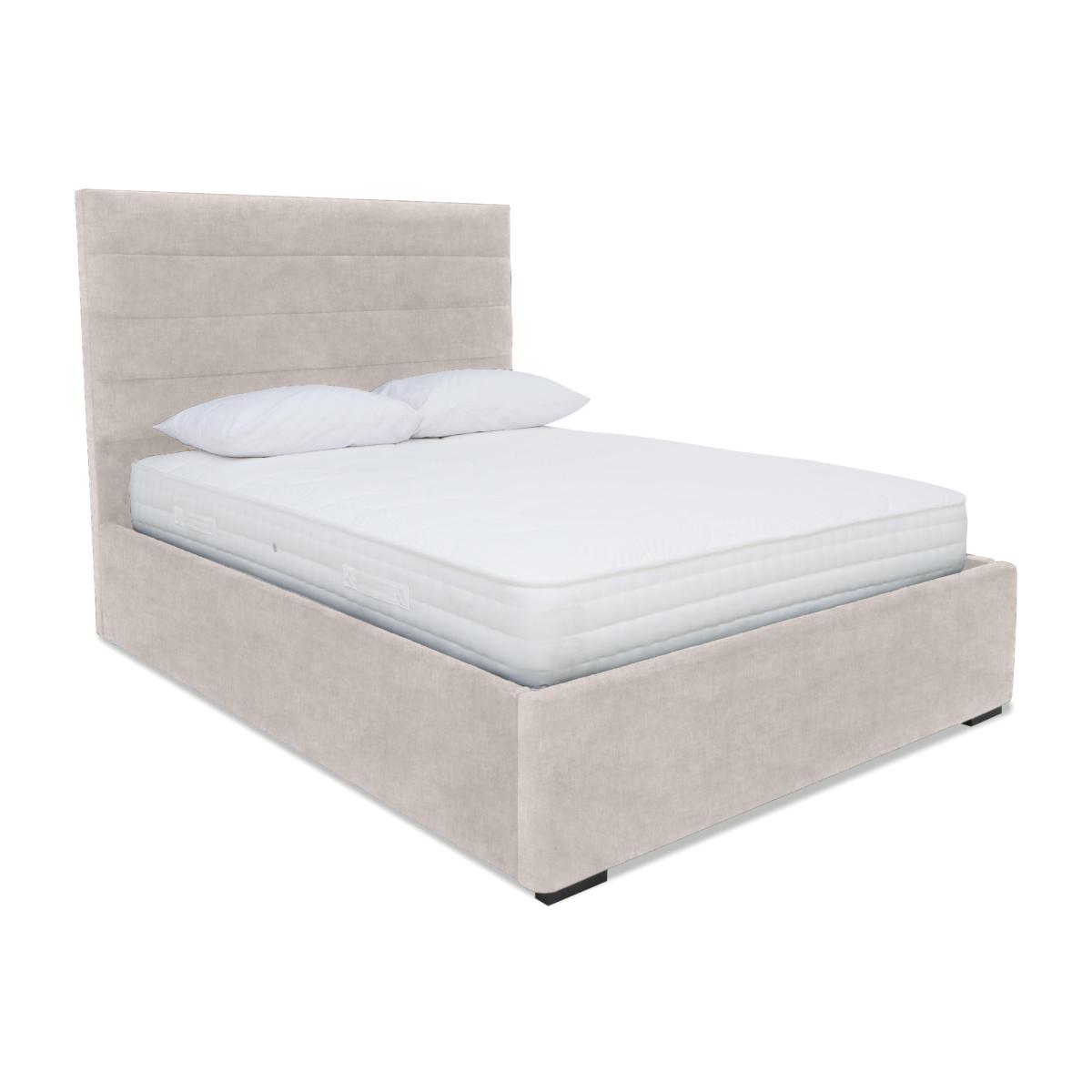 Sleek and chic, our Sleep Story Horizon collection makes it easy and affordable to create a luxurious bedroom. As well as a headboard, the range offers ottoman bed frames with huge underbed storage spaces including one that’s electric powered to make accessing and closing the storage space even easier. The collection's signature style motif – contemporary horizontal fluting – is understated and elegant, equally at home in both classic and modern bedrooms, and everything is upholstered in a wide choice of fabrics. The great-value Sleep Story Horizon collection is handcrafted in the UK by Highgrove and is exclusively available at Furniture Village. This stylish bed frame offers powerful storage in more ways than one. The electric ottoman lift mechanism makes opening and closing this bed frame’s storage compartment so easy. Why you'll love it Make life easier and your bedroom more stylish with this electric ottoman bed frame. Contemporary luxury plus impressive extra storage at an exceptional price. The ottoman lift mechanism is electric powered so accessing the storage space is effortless. Well-cushioned headboard with understated horizontal stitching. High-quality fabric upholstery in a wide choice of lovely colours. Sturdy wooden slatted mattress support. In small double, double, king and super king bed sizes. Handmade in the UK by Highgrove. Exclusively available at Furniture Village. This electric ottoman bed frame is part of our Sleep Story collection. What you need to know Mattress sold separately. Mattress base is composed of 28 wood slats in king size. This ottoman bed frame opens at the end. Maximum mattress weight is 80 kg for all sizes. Please keep hands clear of the mechanism when opening and closing the ottoman. Do not sit on the foot end of this ottoman bed frame when opening. Clean regularly using a soft brush or vacuum with the curtain attachment. Deal with any spills promptly. Professional cleaning advised for oil- and grease-based stains. Some fabrics can show wear on areas of more use or in direct sunlight. Flattening and shading of heavy wear areas on pile fabrics like velvet is unavoidable. Be sure to brush pile fabrics only in the direction of the pile. Please read our upholstery care guide for more advice.