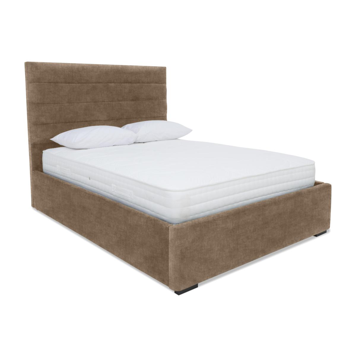 Sleek and chic, our Sleep Story Horizon collection makes it easy and affordable to create a luxurious bedroom. As well as a headboard, the range offers ottoman bed frames with huge underbed storage spaces including one that’s electric powered to make accessing and closing the storage space even easier. The collection's signature style motif – contemporary horizontal fluting – is understated and elegant, equally at home in both classic and modern bedrooms, and everything is upholstered in a wide choice of fabrics. The great-value Sleep Story Horizon collection is handcrafted in the UK by Highgrove and is exclusively available at Furniture Village. This stylish bed frame offers powerful storage in more ways than one. The electric ottoman lift mechanism makes opening and closing this bed frame’s storage compartment so easy. Why you'll love it Make life easier and your bedroom more stylish with this electric ottoman bed frame. Contemporary luxury plus impressive extra storage at an exceptional price. The ottoman lift mechanism is electric powered so accessing the storage space is effortless. Well-cushioned headboard with understated horizontal stitching. High-quality fabric upholstery in a wide choice of lovely colours. Sturdy wooden slatted mattress support. In small double, double, king and super king bed sizes. Handmade in the UK by Highgrove. Exclusively available at Furniture Village. This electric ottoman bed frame is part of our Sleep Story collection. What you need to know Mattress sold separately. Mattress base is composed of 28 wood slats in king size. This ottoman bed frame opens at the end. Maximum mattress weight is 80 kg for all sizes. Please keep hands clear of the mechanism when opening and closing the ottoman. Do not sit on the foot end of this ottoman bed frame when opening. Clean regularly using a soft brush or vacuum with the curtain attachment. Deal with any spills promptly. Professional cleaning advised for oil- and grease-based stains. Some fabrics can show wear on areas of more use or in direct sunlight. Flattening and shading of heavy wear areas on pile fabrics like velvet is unavoidable. Be sure to brush pile fabrics only in the direction of the pile. Please read our upholstery care guide for more advice.