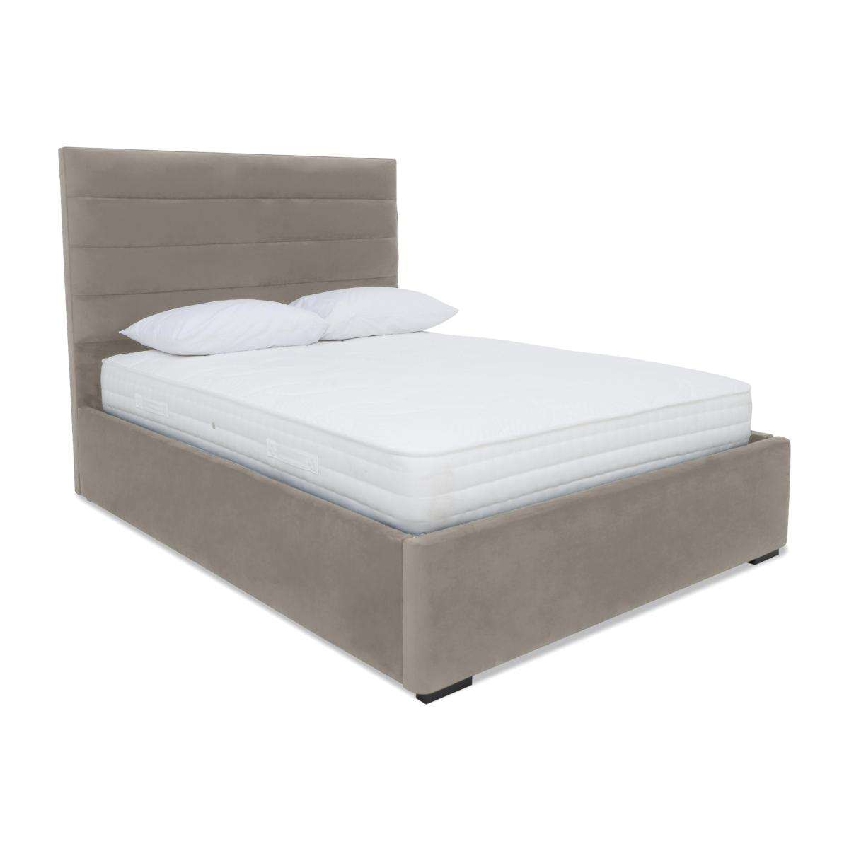 Sleek and chic, our Sleep Story Horizon collection makes it easy and affordable to create a luxurious bedroom. As well as a headboard, the range offers ottoman bed frames with huge underbed storage spaces including one that’s electric powered to make accessing and closing the storage space even easier. The collection's signature style motif – contemporary horizontal fluting – is understated and elegant, equally at home in both classic and modern bedrooms, and everything is upholstered in a wide choice of fabrics. The great-value Sleep Story Horizon collection is handcrafted in the UK by Highgrove and is exclusively available at Furniture Village. This stylish bed frame offers powerful storage in more ways than one. The electric ottoman lift mechanism makes opening and closing this bed frame’s storage compartment so easy. Why you'll love it Make life easier and your bedroom more stylish with this electric ottoman bed frame. Contemporary luxury plus impressive extra storage at an exceptional price. The ottoman lift mechanism is electric powered so accessing the storage space is effortless. Well-cushioned headboard with understated horizontal stitching. High-quality fabric upholstery in a wide choice of lovely colours. Sturdy wooden slatted mattress support. In small double, double, king and super king bed sizes. Handmade in the UK by Highgrove. Exclusively available at Furniture Village. This electric ottoman bed frame is part of our Sleep Story collection. What you need to know Mattress sold separately. Mattress base is composed of 28 wood slats in king size. This ottoman bed frame opens at the end. Maximum mattress weight is 80 kg for all sizes. Please keep hands clear of the mechanism when opening and closing the ottoman. Do not sit on the foot end of this ottoman bed frame when opening. Clean regularly using a soft brush or vacuum with the curtain attachment. Deal with any spills promptly. Professional cleaning advised for oil- and grease-based stains. Some fabrics can show wear on areas of more use or in direct sunlight. Flattening and shading of heavy wear areas on pile fabrics like velvet is unavoidable. Be sure to brush pile fabrics only in the direction of the pile. Please read our upholstery care guide for more advice.