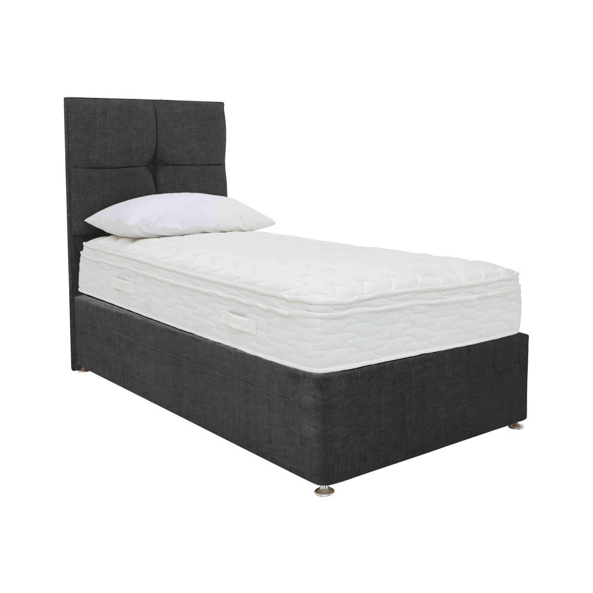 If you often wake up because you’re too hot, the Sleep Story by Highgrove Hybrid 2500 range is for you. Featuring advanced Equasleep© technology with unique fibres designed to regulate surface temperature, a cool night’s sleep is yours. A fully encapsulated border gives a 100% sleep surface, providing total body comfort and support while 2500 pocket springs evenly distribute your weight and a body-contouring memory foam layer delivers sumptuous cushioning. A luxury micro Tencel cover completes the comfort on offer. Available with a choice of stylish drawer and ottoman storage divan sets. Handmade in Britain exclusively for Furniture Village. Advanced Equasleep technology for effective temperature regulation. Fully encapsulated border provides a maximum sleep surface. Handmade in Britain. Beautifully stylish and space-saving side lift ottoman divan. Headboard is an optional extra. The Sleep Story by Highgrove Hybrid 2500 Side Lift Ottoman Divan Set is the perfect combination – a cool and comfortable night’s sleep on a bed with clever hidden storage. The mattress features advanced Equasleep© technology with advanced fibres that cool the sleep surface. A fully encapsulated border gives edge to edge support while a memory foam layer hugs your body giving pressure relief just where you need it. 2500 pocket springs offer responsive support and a luxury micro Tencel cover gives you a soft sleeping surface. The divan comes in a choice of fashionable colours to suit any décor, and there’s plenty of under the bed storage under the piston assisted side lift ottoman base. Exclusive to Furniture Village, the Sleep Story by Highgrove Hybrid 2500 Side Lift Ottoman Divan Set is part of the Sleep Story Hybrid 2500 range. Product images are representative. Find out more. Please note. After delivery the mattress should be aired for four hours to freshen and remove any aroma from storage. Due to the pressure-relieving properties of the material it may take some time to become accustomed to the level of comfort and support. It may take time for your mattress to attain its full size once the springs have settled to the correct position. This is due to the mattress being upright during transit. Settlement of fillings and indentations caused by body weight compressing the fillings are natural and not considered defects. The mattress case should not be removed and is not washable. If the mattress is used with a slatted base, the slats must be no further than 7 cm apart.