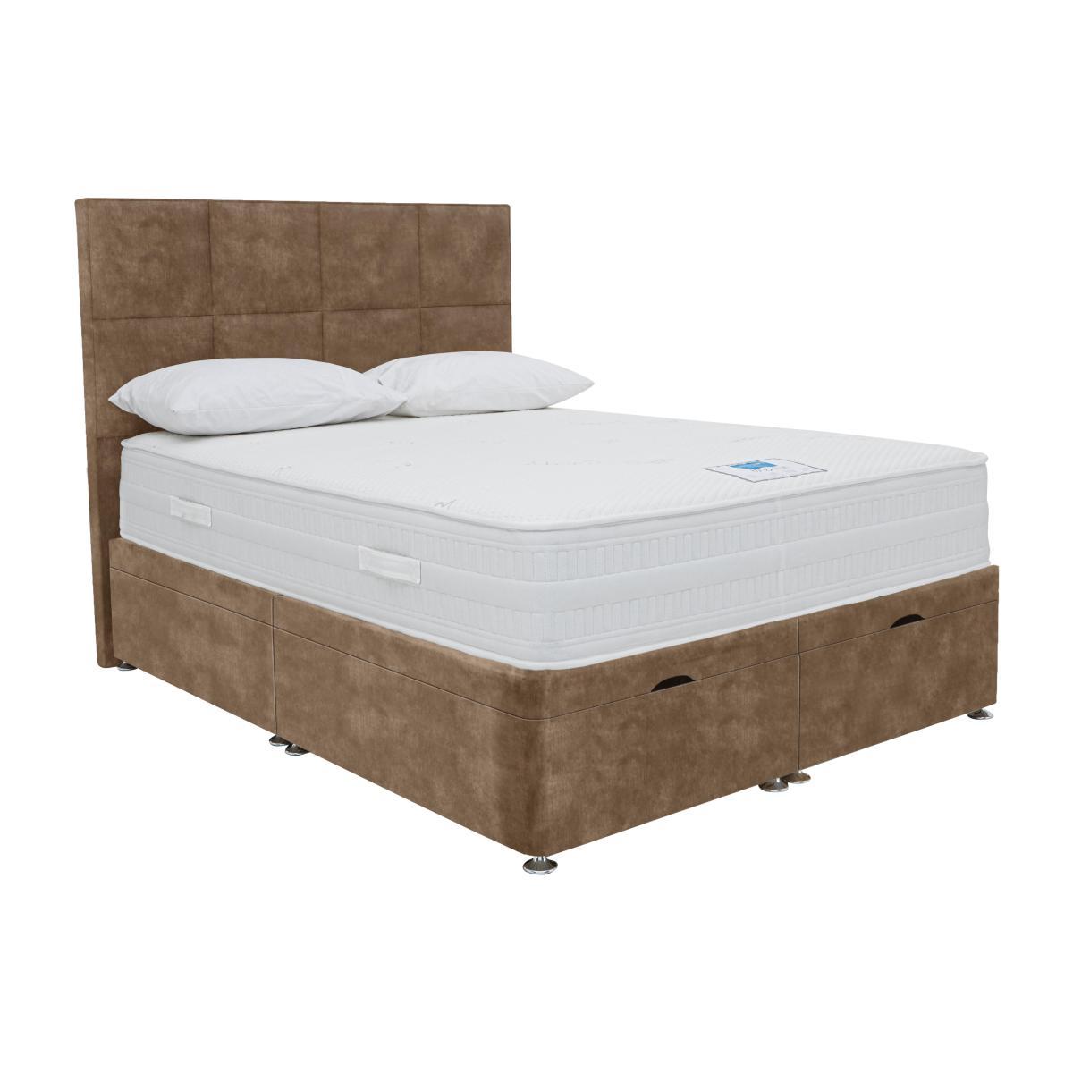 Clever mattress technology combines with memory foam and pocket sprung comfort in this well-designed Sleep Story Hybrid 3000 range. The unique fibres of Equasleep© deliver a cool and comfortable sleep by regulating surface temperature while a generous memory foam layer contours to your body through the night. 3000 pocket springs offer superior support by evenly distributing your weight while the fully encapsulated border prevents roll off and allows you to use 100% of the mattress. It’s completed by a luxury micro Tencel™ cover for a wonderfully soft, smooth and breathable sleeping surface. Pair your mattress with a beautifully designed divan that comes with choice of space-efficient ottoman and drawer storage options. This range has been lovingly handcrafted in Britain and is only available at Furniture Village. The Hybrid 3000 end lift ottoman divan set keeps you comfy, fresh and cool all night long, and there’s plenty of storage space too. The 31 cm deep, medium-firm mattress contours to the shape of your body with pressure relieving advanced memory foam. And the fibre Equasleep© technology regulates the surface temperature of the mattress so you enjoy a fresher and cooler night’s sleep. The encapsulating Advant. Edge©system means you have a wider sleeping surface, giving edge to edge support so there’s no roll off. The mattress has 3000 zoned pocket springs in king size for head to toe support. Plus you have the luxury of a wool and silk stretch cover. The hand-tailored divan is available in a choice of of colours and has useful easy to access storage in the end-lift ottoman base. The Sleep Story Hybrid 3000 end-lift ottoman divan set is part of the Sleep Story Hybrid 3000 collection and is handcrafted in the UK. Only available at Furniture Village. Product images are representative. Find out more. Please note. After delivery the mattress should be aired for four hours to freshen and remove any aroma from storage. Due to the pressure-relieving properties of the material it may take some time to become accustomed to the level of comfort and support. It may take time for your mattress to attain its full size once the springs have settled to the correct position. This is due to the mattress being upright during transit. Settlement of fillings and indentations caused by body weight compressing the fillings are natural and not considered defects. The mattress case should not be removed and is not washable. If the mattress is used with a slatted base, the slats must be no further than 7 cm apart.