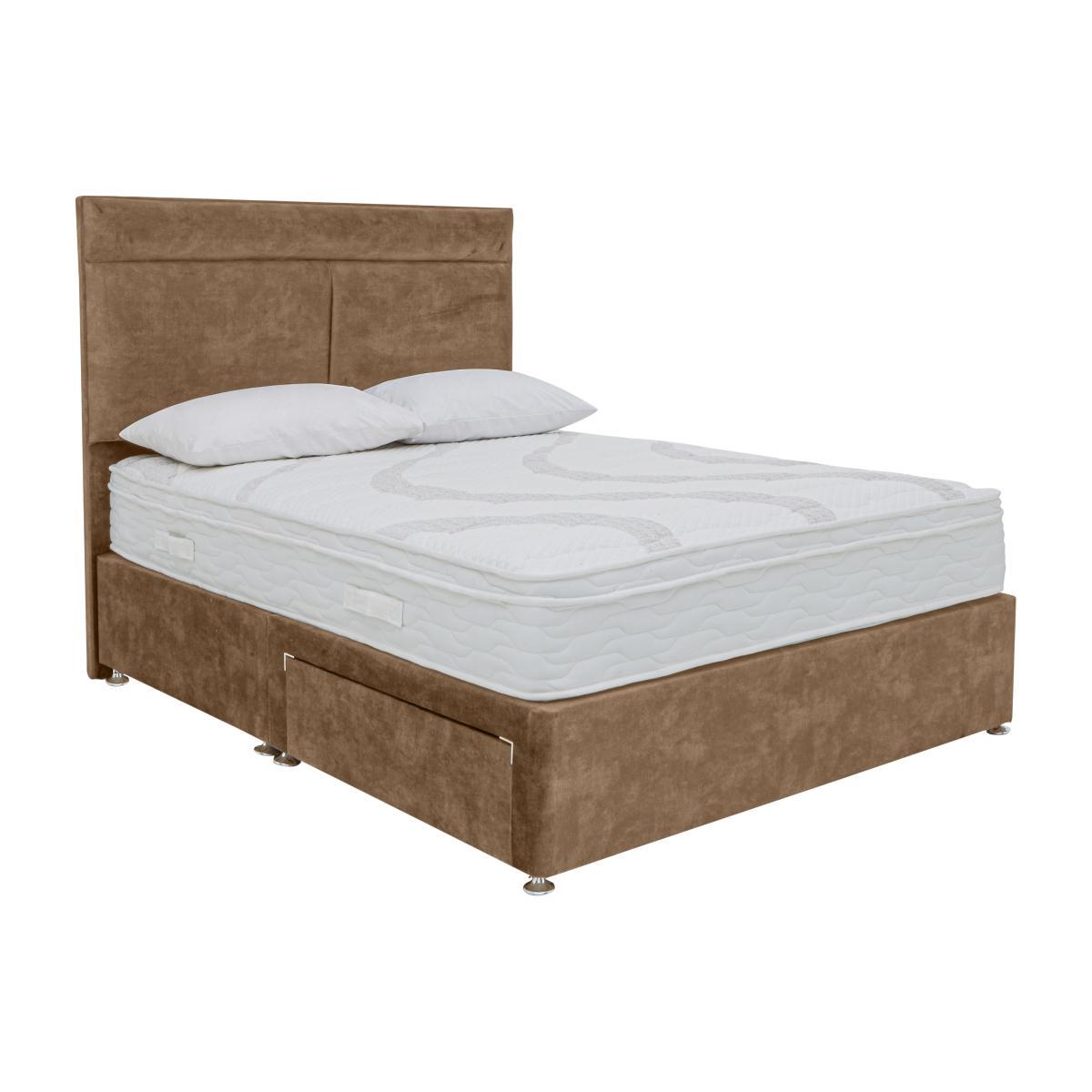 The Sleep Story by Highgrove Latex 3400 range is a unique and innovative combination of pressure-relieving latex and supportive springs. A deep natural latex layer delivers instant pressure relief and promotes natural spinal alignment, so you wake up feeling rested and refreshed. An AdvantEdge® system gives edge to edge support so you can use every inch of mattress space available while an advanced pocket spring design ensures you always have proper underlying support. This hypoallergenic, easy-care mattress is non-turn and finished with a luxuriously soft micro quilt cover for extra comfort. The beautiful divans come in a range of sizes, colours and boast space-saving storage options. Handcrafted in Britain exclusively for Furniture Village. Deep natural latex and pocket sprung comfort designed to relieve pressure. AdvantEdge® support system for maximum sleeping space. Handcrafted in Britain. Elegant and stylish divan with clever, space-saving drawer options. Headboard is an optional extra. Enhanced support and superior comfort are built into the innovative Sleep Story by Highgrove Latex 3400 Divan Set. The hypoallergenic mattress boasts a deep natural latex layer that quickly responds to your body’s movements for advanced pressure relief. 3400 pocket springs are cleverly engineered in an advanced system that offers exceptional underlying support, evenly distributing weight and promoting natural spinal alignment. A luxurious micro quilt cover promises wonderful comfort and you can make full use of the superbly comfortable mattress surface thanks to the AdvantEdge® system which delivers complete support right to the edges. The divan base is beautifully upholstered in a stylish range of fabrics and colours, with plenty of drawer storage options that help you maximise your bedroom space. Expertly handcrafted in the UK exclusively for Furniture Village, the Sleep Story by Highgrove Latex 3400 Divan Set is part of the Sleep Story by Highgrove Latex 3400 range which delivers exceptional support and instant pressure relief. Product images are representative. Find out more. Please note. After delivery the mattress should be aired for four hours to freshen and remove any aroma from storage. Due to the pressure-relieving properties of the material it may take some time to become accustomed to the level of comfort and support. It may take time for your mattress to attain its full size once the springs have settled to the correct position. This is due to the mattress being upright during transit. Settlement of fillings and indentations caused by body weight compressing the fillings are natural and not considered defects. The mattress case should not be removed and is not washable. If the mattress is used with a slatted base, the slats must be no further than 7 cm apart.