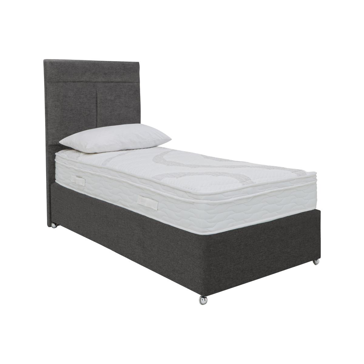 The Sleep Story latex divan is a versatile and practical choice for a variety of interior styles, particularly contemporary or minimalist schemes. Its clean lines and neutral grey upholstery make it easy to incorporate with a wide range of colours and textures, from plush bedding to sleek accessories. I love pairing it with crisp white linens and tactile throws for a fresh, modern look, or contrasting it with richer tones for a more cosy feel. Practical styling tips include adding a padded headboard to soften the overall aesthetic and layering different bedding textures to create visual interest. It’s ideal for smaller spaces given its single size, and its straightforward form ensures it remains functional without overwhelming a room.