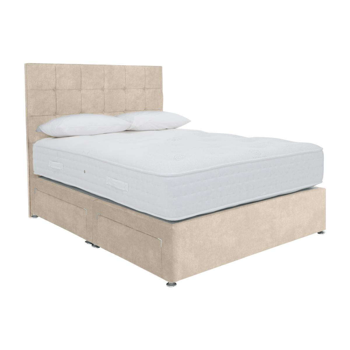 The Sleep Story by Highgrove Luxury 2000 range delivers luxury comfort at an impressively affordable price. Inside the hypoallergenic mattress is a luxurious blend of natural wool, cotton, silk and cashmere for sumptuous comfort and 2000 pocket springs for total body support. This design encourages correct spinal alignment and relieves pressure, so it’s ideal for those looking for more support from their mattress. For additional comfort, the mattress is finished with a super-soft and breathable Tencel™ cover which keeps you cool and comfortable through the night. A range of divan bases are available in a selection of contemporary colours and come with a variety of space-saving storage options. Expertly handcrafted in the UK exclusively for Furniture Village. This oh-so-luxurious (yet very affordable) mattress comes complete with a stylish storage divan base. The pocket spring and natural fillings combination gives you medium support with a sumptuous feel. Why you'll love it. Divan set promises luxurious medium-feel comfort at a very affordable price. Pocket spring mattress has natural fillings for support with a touch of softness. 2000 individually pocketed springs in king size provide excellent pressure relief. Sumptuous layers of wool, cotton, silk and cashmere. Hypoallergenic. Platform-top base with a choice of optional storage drawers. Choose from a wide selection of beautiful upholstery fabrics. Made in the UK by Highgrove and exclusive to Furniture Village. The Sleep Story Luxury 2000 range also includes a mattress and ottoman divan sets. What you need to know. Headboard is an optional extra. Mattress type: Pocket spring and natural fillings. Depth: 28 cm. Firmness: Medium. Springs: 2000 pocket springs in king size. Pillow top: No. Fillings: Wool, cotton, silk and cashmere. Cover: Breathable TencelT M. Requires turning: No. Base type: Platform top with optional drawer storage. Sizes: Small single, single, small double, double, king and super king. Mattress care: Air for 4 hours before using to remove any odour. Allow at least 4 hours for springs to settle and for mattress to attain its full size. Indentations caused by settlement of fillings or body weight are normal and are not considered defects. If used on a slatted bed frame, the space between slats must be no wider than 7.5 cm. Spaces wider than this may cause excess dipping of the mattress and invalidate the guarantee. Always use a mattress protector. Rotate regularly. Divan base care: Clean upholstery weekly using a soft brush or vacuum with the curtain attachment. Professional cleaning advised for oil- and grease-based stains. Please note: Divan base is supplied in two halves for small double, double, king and super king sizes.