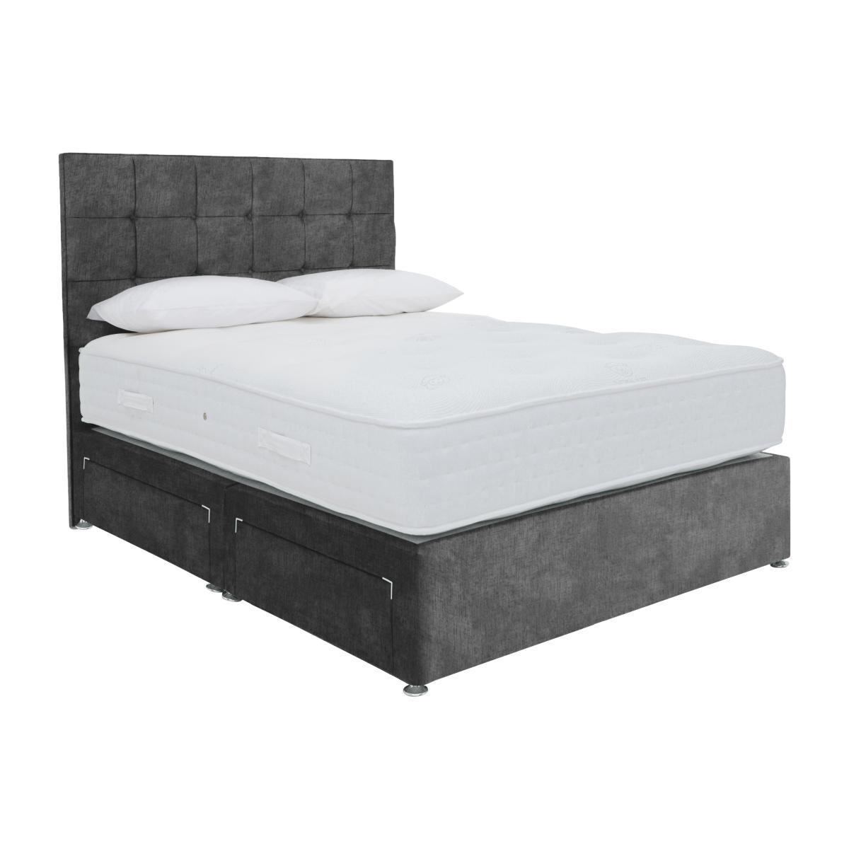 The Sleep Story by Highgrove Luxury 2000 range delivers luxury comfort at an impressively affordable price. Inside the hypoallergenic mattress is a luxurious blend of natural wool, cotton, silk and cashmere for sumptuous comfort and 2000 pocket springs for total body support. This design encourages correct spinal alignment and relieves pressure, so it’s ideal for those looking for more support from their mattress. For additional comfort, the mattress is finished with a super-soft and breathable Tencel™ cover which keeps you cool and comfortable through the night. A range of divan bases are available in a selection of contemporary colours and come with a variety of space-saving storage options. Expertly handcrafted in the UK exclusively for Furniture Village. This oh-so-luxurious (yet very affordable) mattress comes complete with a stylish storage divan base. The pocket spring and natural fillings combination gives you medium support with a sumptuous feel. Why you'll love it. Divan set promises luxurious medium-feel comfort at a very affordable price. Pocket spring mattress has natural fillings for support with a touch of softness. 2000 individually pocketed springs in king size provide excellent pressure relief. Sumptuous layers of wool, cotton, silk and cashmere. Hypoallergenic. Platform-top base with a choice of optional storage drawers. Choose from a wide selection of beautiful upholstery fabrics. Made in the UK by Highgrove and exclusive to Furniture Village. The Sleep Story Luxury 2000 range also includes a mattress and ottoman divan sets. What you need to know. Headboard is an optional extra. Mattress type: Pocket spring and natural fillings. Depth: 28 cm. Firmness: Medium. Springs: 2000 pocket springs in king size. Pillow top: No. Fillings: Wool, cotton, silk and cashmere. Cover: Breathable TencelT M. Requires turning: No. Base type: Platform top with optional drawer storage. Sizes: Small single, single, small double, double, king and super king. Mattress care: Air for 4 hours before using to remove any odour. Allow at least 4 hours for springs to settle and for mattress to attain its full size. Indentations caused by settlement of fillings or body weight are normal and are not considered defects. If used on a slatted bed frame, the space between slats must be no wider than 7.5 cm. Spaces wider than this may cause excess dipping of the mattress and invalidate the guarantee. Always use a mattress protector. Rotate regularly. Divan base care: Clean upholstery weekly using a soft brush or vacuum with the curtain attachment. Professional cleaning advised for oil- and grease-based stains. Please note: Divan base is supplied in two halves for small double, double, king and super king sizes.