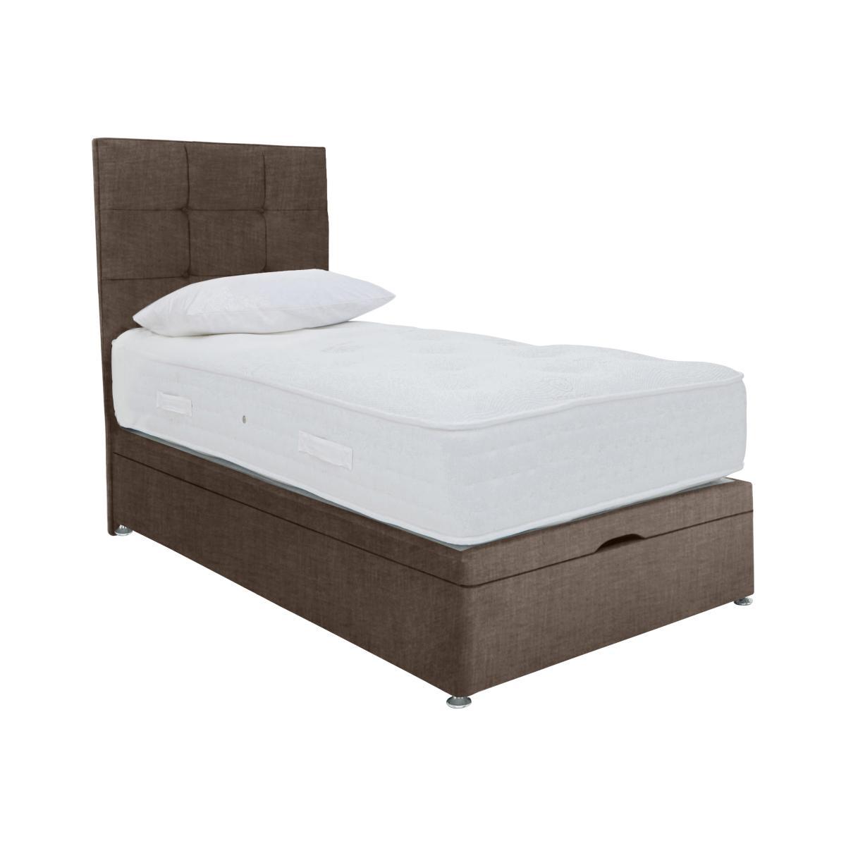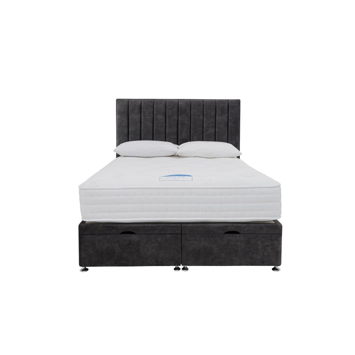 The Sleep Story by Highgrove Luxury 2000 range delivers luxury comfort at an impressively affordable price. Inside the hypoallergenic mattress is a luxurious blend of natural wool, cotton, silk and cashmere for sumptuous comfort and 2000 pocket springs for total body support. This design encourages correct spinal alignment and relieves pressure, so it’s ideal for those looking for more support from their mattress. For additional comfort, the mattress is finished with a super-soft and breathable Tencel™ cover which keeps you cool and comfortable through the night. A range of divan bases are available in a selection of contemporary colours and come with a variety of space-saving storage options. Expertly handcrafted in the UK exclusively for Furniture Village. A medium mattress that feels truly luxurious? You’ve found it. This exceptional mattress provides great support and has sumptuous natural fillings. Includes a space-saving ottoman divan base. Why you'll love it. Ottoman divan set promises luxurious medium-feel comfort at a very affordable price. Pocket spring mattress has natural fillings for support with a touch of softness. 2000 individually pocketed springs in king size provide excellent pressure relief. Sumptuous layers of wool, cotton, silk and cashmere. Hypoallergenic. Platform-top base has an end-opening ottoman storage compartment. Choose from a wide selection of beautiful upholstery fabrics. Made in the UK by Highgrove and exclusive to Furniture Village. The Sleep Story Luxury 2000 range also includes a mattress and divan sets. What you need to know. Headboard is an optional extra. Mattress type: Pocket spring and natural fillings. Depth: 28 cm. Firmness: Medium. Springs: 2000 pocket springs in king size. Pillow top: No. Fillings: Wool, cotton, silk and cashmere. Cover: Breathable TencelT M. Requires turning: No. Base type: Platform top with end-opening ottoman storage. Sizes: Small single, single, small double, double, king and super king. Mattress care: Air for 4 hours before using to remove any odour. Allow at least 4 hours for springs to settle and for mattress to attain its full size. Indentations caused by settlement of fillings or body weight are normal and are not considered defects. If used on a slatted bed frame, the space between slats must be no wider than 7.5 cm. Spaces wider than this may cause excess dipping of the mattress and invalidate the guarantee. Always use a mattress protector. Rotate regularly. Divan base care: Clean upholstery weekly using a soft brush or vacuum with the curtain attachment. Professional cleaning advised for oil- and grease-based stains. Please note: Divan base is supplied in two halves for small double, double, king and super king sizes.