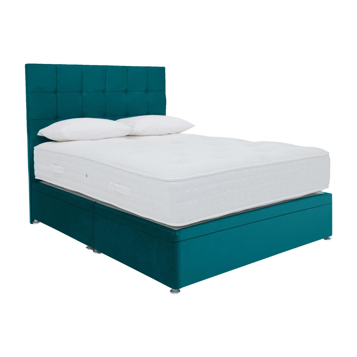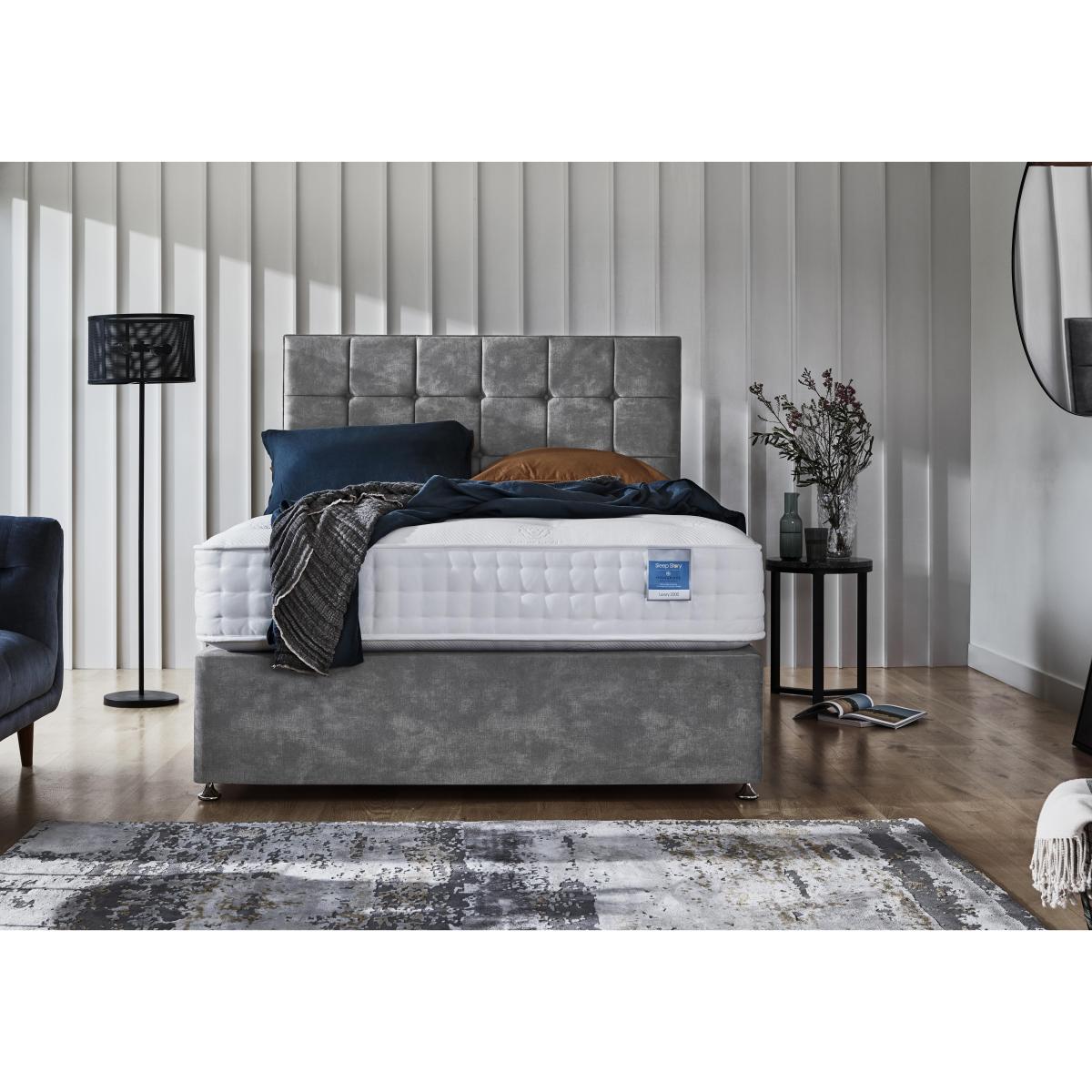 The Sleep Story by Highgrove Luxury 2000 range delivers luxury comfort at an impressively affordable price. Inside the hypoallergenic mattress is a luxurious blend of natural wool, cotton, silk and cashmere for sumptuous comfort and 2000 pocket springs for total body support. This design encourages correct spinal alignment and relieves pressure, so it’s ideal for those looking for more support from their mattress. For additional comfort, the mattress is finished with a super-soft and breathable Tencel™ cover which keeps you cool and comfortable through the night. A range of divan bases are available in a selection of contemporary colours and come with a variety of space-saving storage options. Expertly handcrafted in the UK exclusively for Furniture Village. • 2000 pocket springs for impressive support and spinal alignment • Luxurious blend of wool, cotton, silk and cashmere for indulgent comfort • Handcrafted in Britain • Contemporary stylish divans with variety of ottoman storage optionsHeadboard is an optional extra Discover indulgent pocket sprung comfort handcrafted in the UK at a very comfortable price with the Sleep Story by Highgrove Luxury 2000 Side Ottoman Divan Set. Designed to give you a premium sleep experience, this hypoallergenic mattress is expertly handcrafted right here in the UK. A sumptuous natural blend of silk, wool, cotton and cashmere creates a wonderfully cushioned feel while 2000 pocket springs deliver effective total body support. They evenly distribute your weight while promoting correct spinal alignment, so you always wake up fully rested. Finally, an incredibly soft cover of breathable Tencel™ completes your comfort, creating a cool and cushioned sleep surface. Turn the mattress regularly to promote long-lasting comfort. Divan bases designed to suit every bedroom come in a beautiful variety of colours and with the space-saving addition of spacious ottoman storage. The Sleep Story by Highgrove Luxury 2000 Side Ottoman Divan Set is part of the Sleep Story by Highgrove Luxury 2000 range which offers premium support and comfort with the indulgent luxury of all-natural materials. Product images are representative. Find out more. Please note: The mattress should be aired for four hours after delivery to freshen and remove any aroma from storage. It may take time for your mattress to attain its full size once the springs have settled to the correct position. This is due to the mattress being upright during transit. Settlement of fillings and indentations caused by body weight compressing the fillings are natural and not considered defects. This can be minimised by regular rotating and turning.