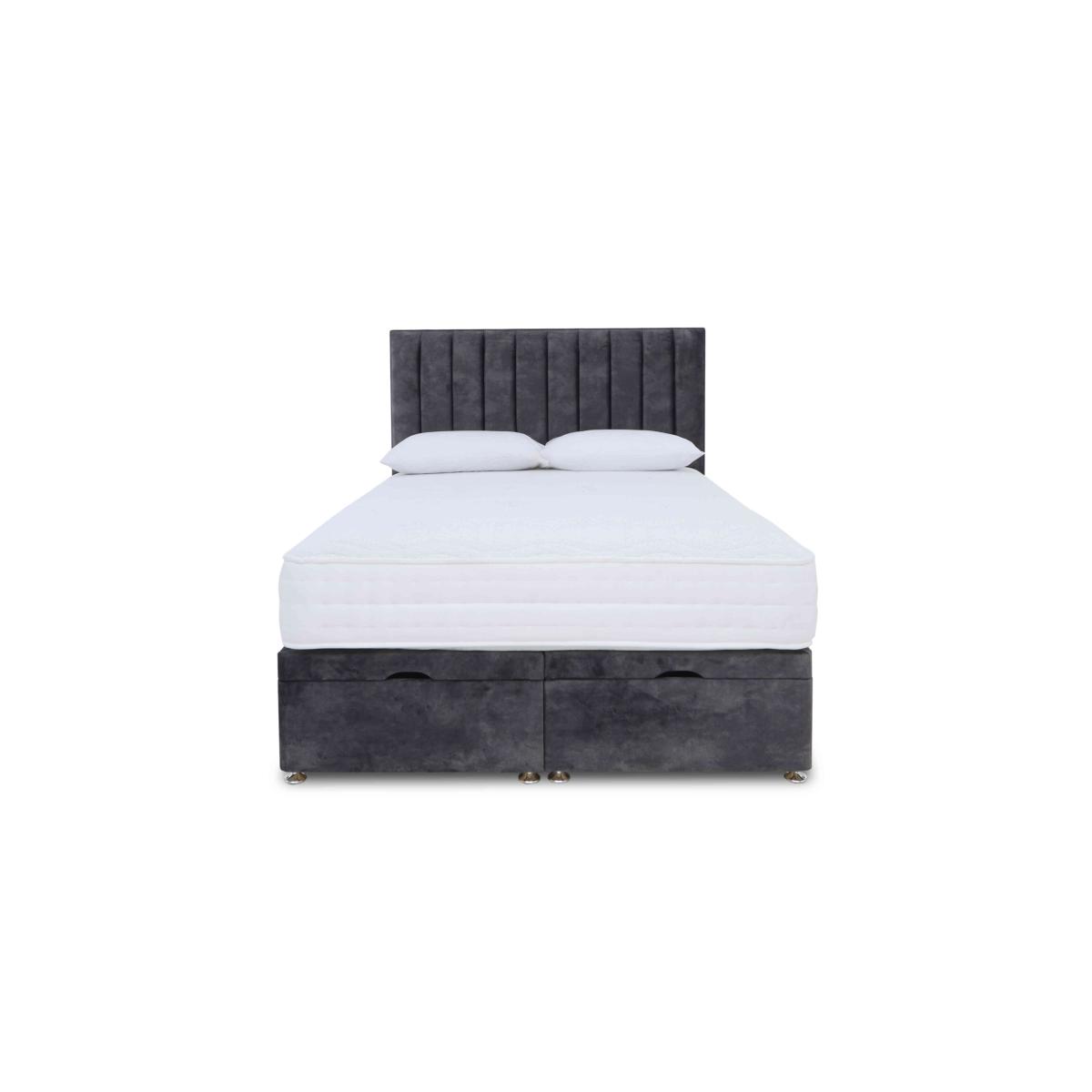 Look forward to better sleep on this ultra-comfy pocket spring and memory foam mattress. And keep your bedroom neat and tidy with the divan base’s roomy ottoman storage space. Why you'll love it Ottoman divan set with pocket spring and memory foam mattress promises all round better sleep. Get the best of both worlds at a great-value price. AdvantEdge® pocket spring system has 1000 springs in king size. It’s designed to offer total body support across the entire sleep surface. Ensures correct spinal alignment for better quality of sleep. Layer of cushioning memory foam conforms to your body’s shape and weight. Improves pressure relief and reduces aches and pains. Breathable micro-quilted knitted stretch cover made with Tencel®. Hypoallergenic. Divan set includes a platform-top base with end-opening ottoman storage. Available in a wide selection of stylish upholstery fabrics. Make life even easier – choose the electric-powered version of this ottoman divan set. Made in the UK by Highgrove and exclusive to Furniture Village. This ottoman divan set is part of the Sleep Story Memory Pocket range. Shop the Sleep Story Memory Pocket range for mattresses, divan sets, electric ottoman beds and more. What you need to know Headboard is an optional extra. Mattress type: Hybrid. Depth: 25 cm. Weight:Small single 15.6 kg, single 18.72 kg, small double 24.96 kg, double 28.08 kg, king 31.2 kg and super king 37.4 kg. Firmness: Medium. Springs: 1000 pocket springs in king size. Pillow top: No. Fillings: Memory foam. Cover: Tencel® knitted stretch cover. Requires turning: No. Base type: Platform top with end-opening ottoman storage. Sizes: Small single, single, small double, double, king and super king. Mattress care:Air for 4 hours before using to remove any odour. Indentations caused by settlement of fillings or body weight are normal and are not considered defects. If used on a slatted bed frame, the space between slats must be no wider than 7.5 cm. Spaces wider than this may cause excess dipping of the mattress and invalidate the guarantee. Always use a mattress protector. Rotate regularly. Divan base care: Clean upholstery weekly using a soft brush or vacuum with the curtain attachment. Professional cleaning advised for oil- and grease-based stains. Be careful care when opening and closing the ottoman base. Ordering a small double, double, king or super king size? Your divan base will be supplied in two halves for easier access.