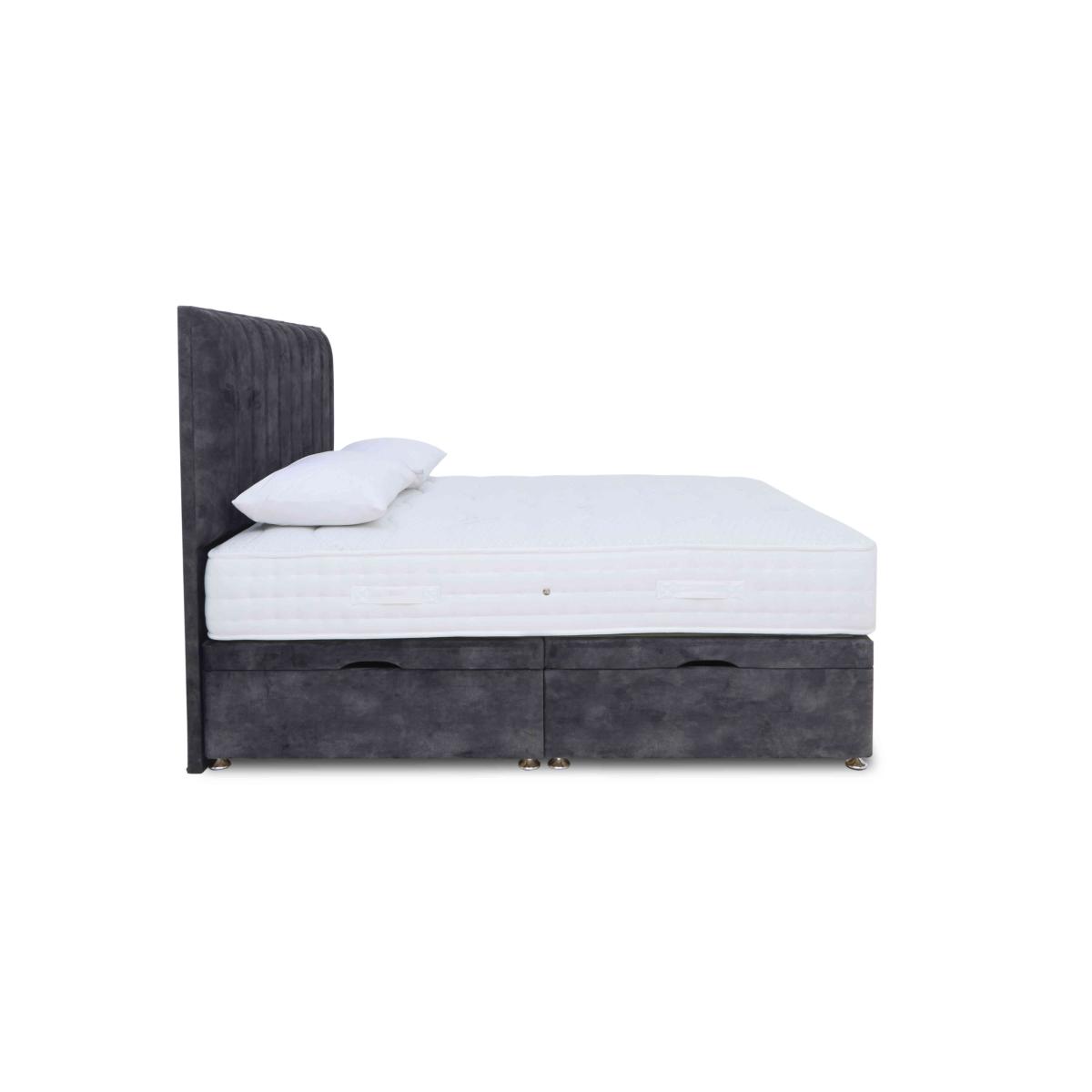 An extra comfortable pocket spring and memory foam mattress plus extra storage in the divan base – this Sleep Story divan set has it all, and at a great price too. Why you'll love it Ottoman divan set with pocket spring and memory foam mattress promises all round better sleep. Get the best of both worlds at a great-value price. AdvantEdge® pocket spring system has 1000 springs in king size. It’s designed to offer total body support across the entire sleep surface. Ensures correct spinal alignment for better quality of sleep. Layer of cushioning memory foam conforms to your body’s shape and weight. Improves pressure relief and reduces aches and pains. Breathable micro-quilted knitted stretch cover made with Tencel®. Hypoallergenic. Divan set includes a platform-top base with space-saving side-opening ottoman storage. Available in a wide selection of stylish upholstery fabrics. Made in the UK by Highgrove and exclusive to Furniture Village. This ottoman divan set is part of the Sleep Story Memory Pocket range. Shop the Sleep Story Memory Pocket range for mattresses, divan sets, electric ottoman beds and more. What you need to know Headboard is an optional extra. Mattress type: Hybrid. Depth: 25 cm. Weight:Small single 15.6 kg, single 18.72 kg, small double 24.96 kg, double 28.08 kg, king 31.2 kg and super king 37.4 kg. Firmness: Medium. Springs: 1000 pocket springs in king size. Pillow top: No. Fillings: Memory foam. Cover: Tencel® knitted stretch cover. Requires turning: No. Base type: Platform top with side-opening ottoman storage. Sizes: Small single, single, small double, double, king and super king. Mattress care:Air for 4 hours before using to remove any odour. Indentations caused by settlement of fillings or body weight are normal and are not considered defects. If used on a slatted bed frame, the space between slats must be no wider than 7.5 cm. Spaces wider than this may cause excess dipping of the mattress and invalidate the guarantee. Always use a mattress protector. Rotate regularly. Divan base care: Clean upholstery weekly using a soft brush or vacuum with the curtain attachment. Professional cleaning advised for oil- and grease-based stains. Be careful care when opening and closing the ottoman base. Ordering a small double, double, king or super king size? Your divan base will be supplied in two halves for easier access.