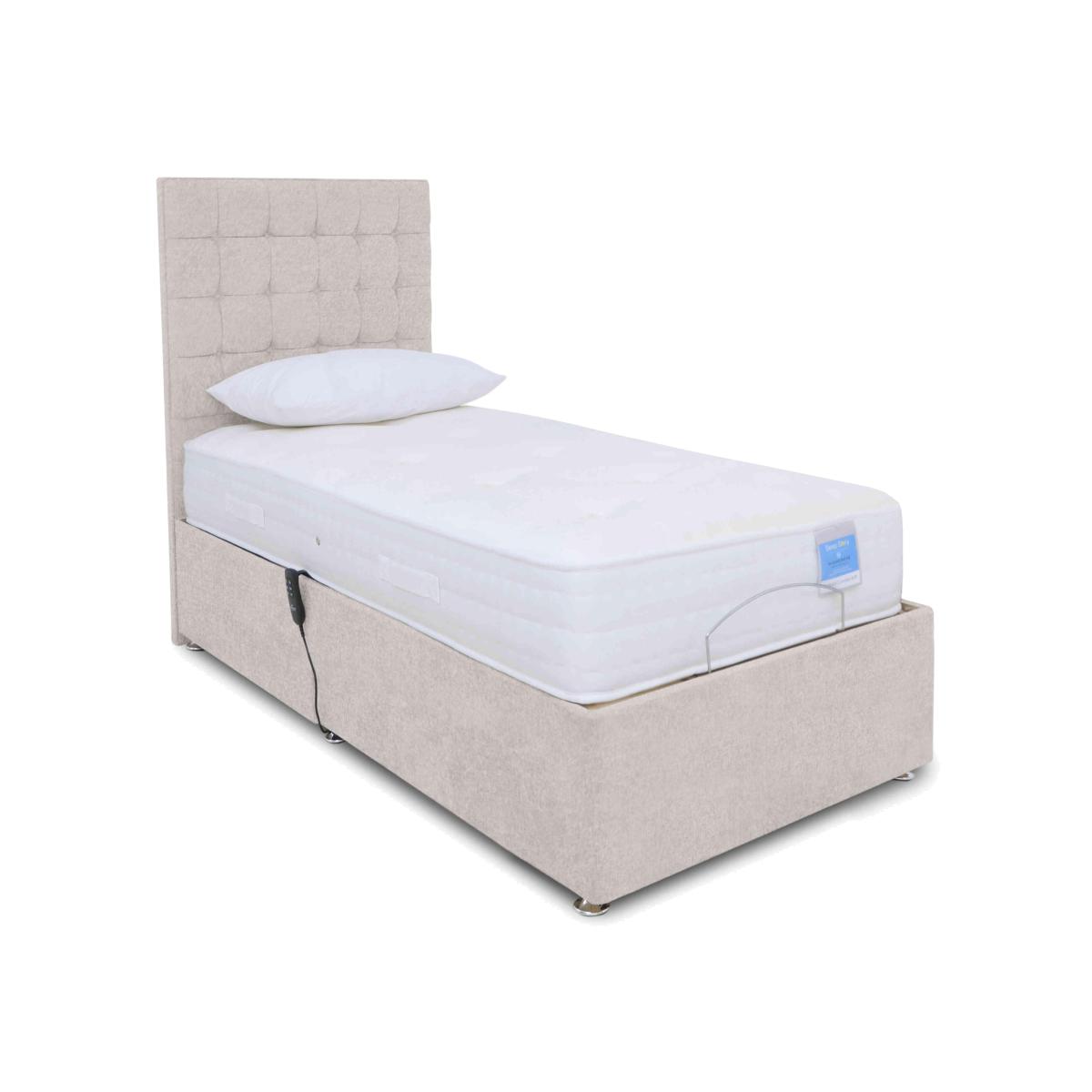 Are you ready to say goodbye to restless nights and say hello to feeling refreshed? Bring home the Sleep Story Natural Comfort Adjustable range and find your optimal sleep position in seconds. Ideal for those with reduced mobility, back pain or joint issues, the fully remote-operated adjustable beds in this range give you total control over your sleep and your comfort. A wireless handset lets you move the bed base and mattress up and down with ease, while you enjoy whole-body support the entire time. With a choice between a soft and firm mattress and a range of sizes, there’s a tailor-made bed for everyone. And it’s a winner for style-lovers too, with a range of beautiful fabrics, colours and drawer storage options. Find your optimum sleep position in seconds with the Sleep Story Natural Comfort Adjustable divan bed. Made for sleepers with joint or mobility issues, it makes falling asleep and waking up easier than ever. Why you'll love it Adjustable pocket sprung mattress with all-natural fillings that moves with your body. Fully adjustable so you can find your perfect position with ease. Wireless handheld remote gives you full control over your comfort. 1000 pocket springs in king size provide total body comfort. Natural fillings are hypoallergenic. Make the most of your space with optional drawer storage. Contemporary divan available in a range of stylish fabrics and colours. Made in the UK exclusive to Furniture Village. The Sleep Story Natural Comfort Adjustable Mattress also includes divan sets with storage. What you need to know Mattress type:Pocket spring, reflex foam and natural fillings. Depth: 22 cm. Firmness: Soft or firm. Springs: 1000 pocket springs in king size. Pillow top: No. Fillings: 270 GSM Silk, 270 GSM Polyester, 3" Reflex Soft foam. Cover: Cashmere, viscose. Requires turning: No. Sizes: Small single, single, small double, 2 x small single (75cm) make a king size and 2 x single (90cm) make a super king. Mattress care:Air for 4 hours before using to remove any odour. Allow at least 4 hours for springs to settle and for mattress to attain its full size. Indentations caused by settlement of fillings or body weight are normal and are not considered defects. If used on a slatted bed frame, the space between slats must be no wider than 7.5 cm. Spaces wider than this may cause excess dipping of the mattress and invalidate the guarantee. Always use a mattress protector. Rotate regularly.
