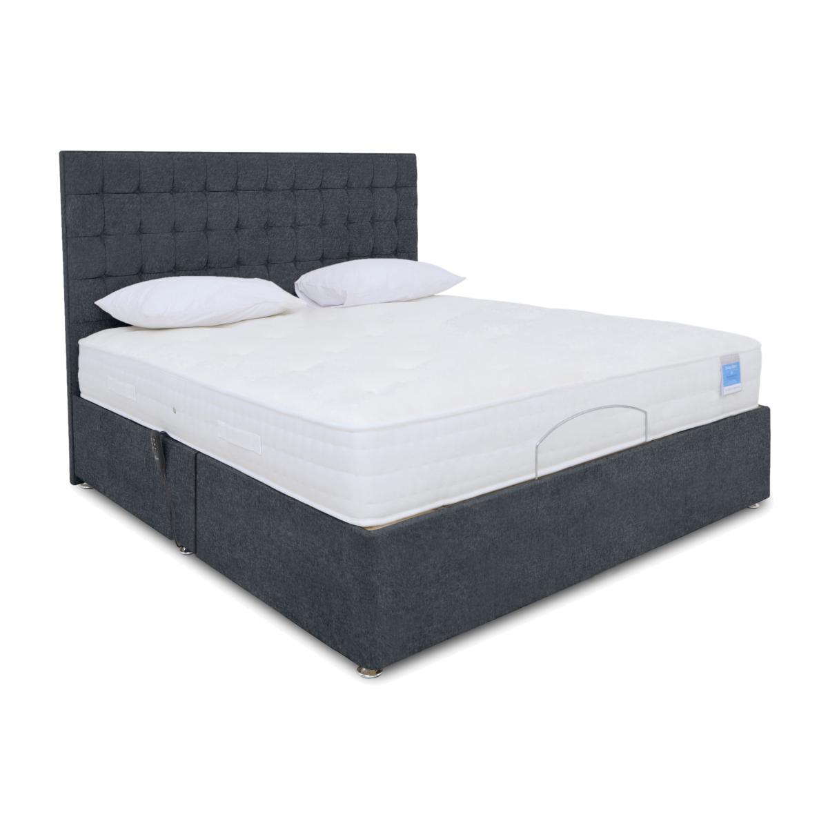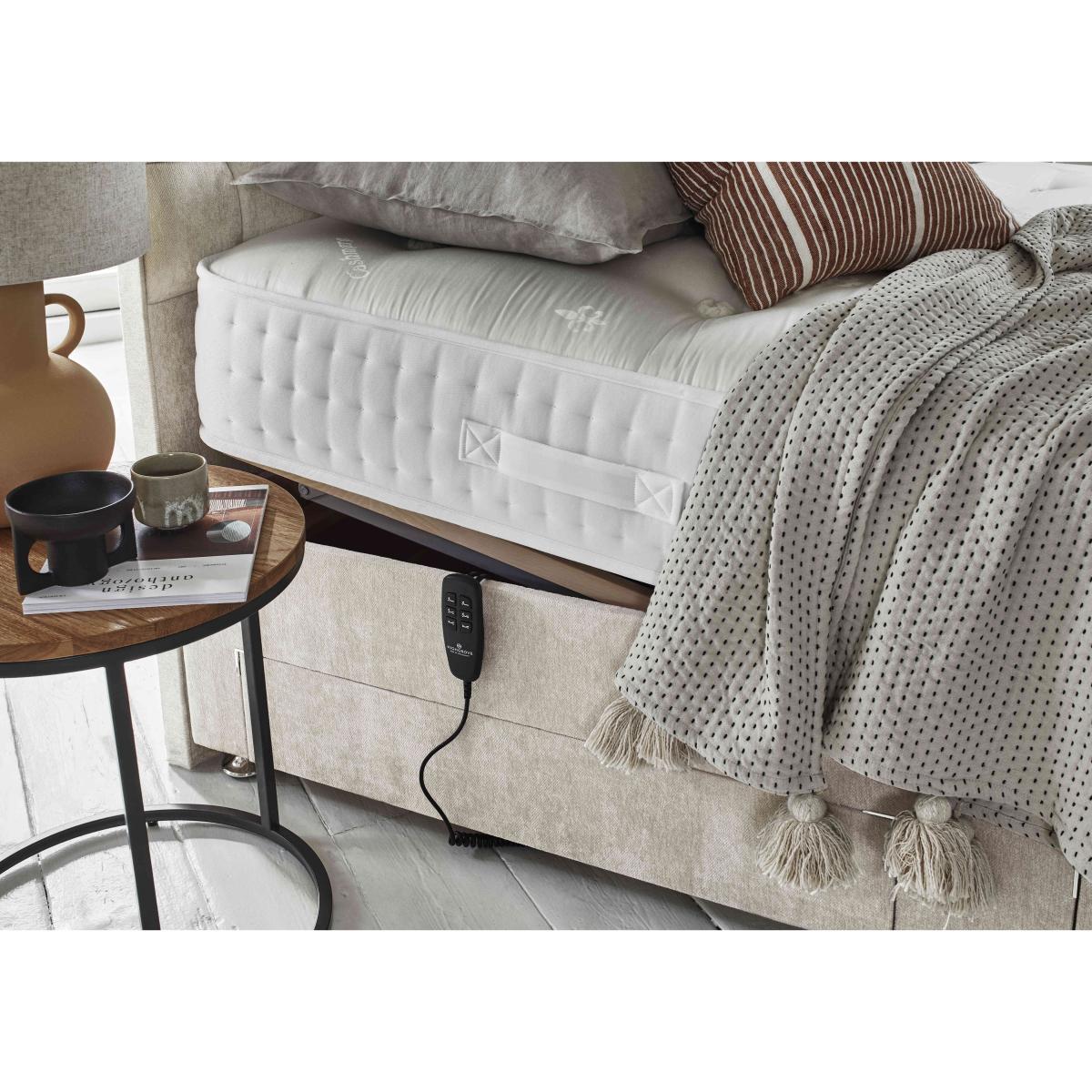 Are you ready to say goodbye to restless nights and say hello to feeling refreshed? Bring home the Sleep Story Natural Comfort Adjustable range and find your optimal sleep position in seconds. Ideal for those with reduced mobility, back pain or joint issues, the fully remote-operated adjustable beds in this range give you total control over your sleep and your comfort. A wireless handset lets you move the bed base and mattress up and down with ease, while you enjoy whole-body support the entire time. With a choice between a soft and firm mattress and a range of sizes, there’s a tailor-made bed for everyone. And it’s a winner for style-lovers too, with a range of beautiful fabrics, colours and drawer storage options. Find your optimum sleep position in seconds with the Sleep Story Natural Comfort Adjustable divan bed. Made for sleepers with joint or mobility issues, it makes falling asleep and waking up easier than ever. Why you'll love it Adjustable pocket sprung mattress with all-natural fillings that moves with your body. Fully adjustable so you can find your perfect position with ease. Wireless handheld remote gives you full control over your comfort. 1000 pocket springs in king size provide total body comfort. Natural fillings are hypoallergenic. Make the most of your space with optional drawer storage. Contemporary divan available in a range of stylish fabrics and colours. Made in the UK exclusive to Furniture Village. The Sleep Story Natural Comfort Adjustable Mattress also includes divan sets with storage. What you need to know Mattress type:Pocket spring, reflex foam and natural fillings. Depth: 22 cm. Firmness: Soft or firm. Springs: 1000 pocket springs in king size. Pillow top: No. Fillings: 270 GSM Silk, 270 GSM Polyester, 3" Reflex Soft foam. Cover: Cashmere, viscose. Requires turning: No. Sizes: Small single, single, small double, 2 x small single (75cm) make a king size and 2 x single (90cm) make a super king. Mattress care:Air for 4 hours before using to remove any odour. Allow at least 4 hours for springs to settle and for mattress to attain its full size. Indentations caused by settlement of fillings or body weight are normal and are not considered defects. If used on a slatted bed frame, the space between slats must be no wider than 7.5 cm. Spaces wider than this may cause excess dipping of the mattress and invalidate the guarantee. Always use a mattress protector. Rotate regularly.