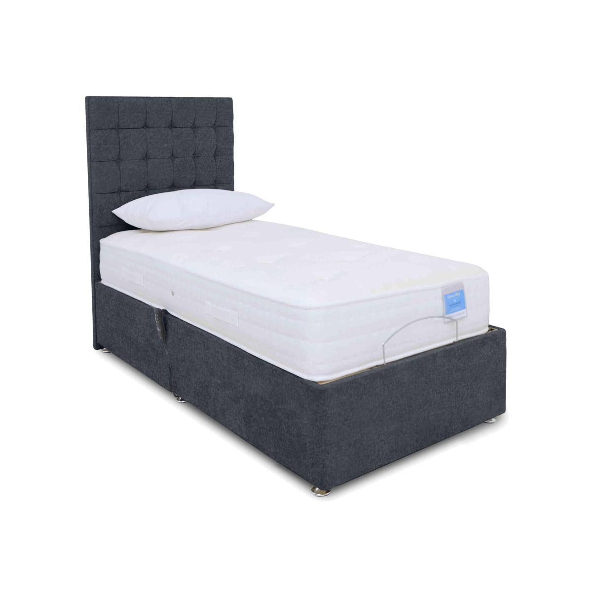 Are you ready to say goodbye to restless nights and say hello to feeling refreshed? Bring home the Sleep Story Natural Comfort Adjustable range and find your optimal sleep position in seconds. Ideal for those with reduced mobility, back pain or joint issues, the fully remote-operated adjustable beds in this range give you total control over your sleep and your comfort. A wireless handset lets you move the bed base and mattress up and down with ease, while you enjoy whole-body support the entire time. With a choice between a soft and firm mattress and a range of sizes, there’s a tailor-made bed for everyone. And it’s a winner for style-lovers too, with a range of beautiful fabrics, colours and drawer storage options. Find your optimum sleep position in seconds with the Sleep Story Natural Comfort Adjustable divan bed. Made for sleepers with joint or mobility issues, it makes falling asleep and waking up easier than ever. Why you'll love it Adjustable pocket sprung mattress with all-natural fillings that moves with your body. Fully adjustable so you can find your perfect position with ease. Wireless handheld remote gives you full control over your comfort. 1000 pocket springs in king size provide total body comfort. Natural fillings are hypoallergenic. Make the most of your space with optional drawer storage. Contemporary divan available in a range of stylish fabrics and colours. Made in the UK exclusive to Furniture Village. The Sleep Story Natural Comfort Adjustable Mattress also includes divan sets with storage. What you need to know Mattress type:Pocket spring, reflex foam and natural fillings. Depth: 22 cm. Firmness: Soft or firm. Springs: 1000 pocket springs in king size. Pillow top: No. Fillings: 270 GSM Silk, 270 GSM Polyester, 3" Reflex Soft foam. Cover: Cashmere, viscose. Requires turning: No. Sizes: Small single, single, small double, 2 x small single (75cm) make a king size and 2 x single (90cm) make a super king. Mattress care:Air for 4 hours before using to remove any odour. Allow at least 4 hours for springs to settle and for mattress to attain its full size. Indentations caused by settlement of fillings or body weight are normal and are not considered defects. If used on a slatted bed frame, the space between slats must be no wider than 7.5 cm. Spaces wider than this may cause excess dipping of the mattress and invalidate the guarantee. Always use a mattress protector. Rotate regularly.