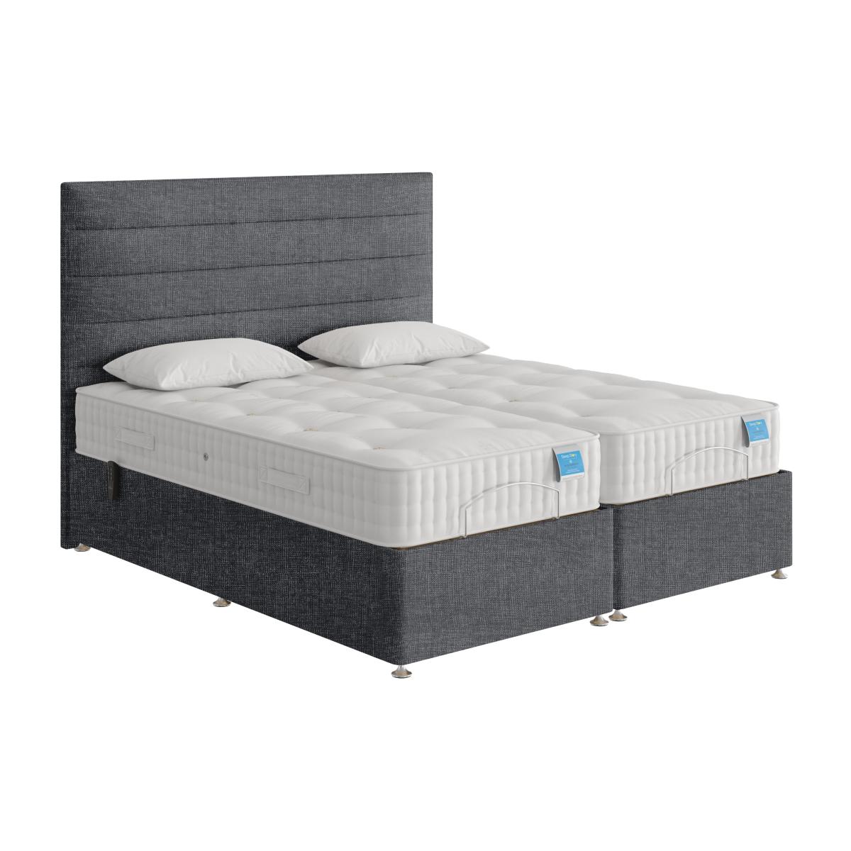 Find your optimum sleep position in seconds with the Sleep Story Natural Comfort Adjustable divan bed. Made for sleepers with joint or mobility issues, it makes falling asleep and waking up easier than ever. Why you'll love it Adjustable pocket sprung mattress with all- natural fillings that moves with your body. Fully adjustable so you can find your perfect position with ease. Wireless handheld remote gives you full control over your comfort. 1000 pocket springs in king size provide total body comfort. Natural fillings are hypoallergenic. Make the most of your space with optional drawer storage. Contemporary divan available in a range of stylish fabrics and colours. Made in the UK exclusive to Furniture Village. The Sleep Story Natural Comfort Adjustable Mattress also includes divan sets with storage. What you need to know Mattress type:Pocket spring, reflex foam and natural fillings. Depth: 22cm. Firmness:Soft or firm. Springs: 1000 pocket springs in king size. Pillow top: No. Fillings: 270 GSM Silk, 270 GSM Polyester, 3 Reflex Soft foam. Cover: Cashmere, viscose. Requires turning: No. Sizes: Small single, single, small double, 2 x small single (75cm) make a king size and 2 x single (90cm) make a super king. Mattress care:Air for 4 hours before using to remove any odour. Allow at least 4 hours for springs to settle and for mattress to attain its full size. Indentations caused by settlement of fillings or body weight are normal and are not considered defects. If used on a slatted bed frame, the space between slats must be no wider than 7. 5 cm. Spaces wider than this may cause excess dipping of the mattress and invalidate the guarantee. Always use a mattress protector. Rotate regularly.