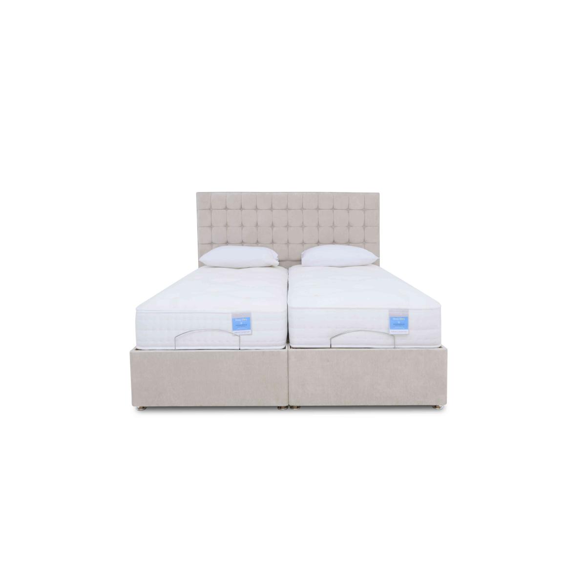 Are you ready to say goodbye to restless nights and say hello to feeling refreshed? Bring home the Sleep Story Natural Comfort Adjustable range and find your optimal sleep position in seconds. Ideal for those with reduced mobility, back pain or joint issues, the fully remote-operated adjustable beds in this range give you total control over your sleep and your comfort. A wireless handset lets you move the bed base and mattress up and down with ease, while you enjoy whole-body support the entire time. With a choice between a soft and firm mattress and a range of sizes, there’s a tailor-made bed for everyone. And it’s a winner for style-lovers too, with a range of beautiful fabrics, colours and drawer storage options. Find your optimum sleep position in seconds with the Sleep Story Natural Comfort Adjustable divan bed. Made for sleepers with joint or mobility issues, it makes falling asleep and waking up easier than ever. Why you'll love it Adjustable pocket sprung mattress with all-natural fillings that moves with your body. Fully adjustable so you can find your perfect position with ease. Wireless handheld remote gives you full control over your comfort. 1000 pocket springs in king size provide total body comfort. Natural fillings are hypoallergenic. Make the most of your space with optional drawer storage. Contemporary divan available in a range of stylish fabrics and colours. Made in the UK exclusive to Furniture Village. The Sleep Story Natural Comfort Adjustable Mattress also includes divan sets with storage. What you need to know Mattress type:Pocket spring, reflex foam and natural fillings. Depth: 22 cm. Firmness: Soft or firm. Springs: 1000 pocket springs in king size. Pillow top: No. Fillings: 270 GSM Silk, 270 GSM Polyester, 3" Reflex Soft foam. Cover: Cashmere, viscose. Requires turning: No. Sizes: Small single, single, small double, 2 x small single (75cm) make a king size and 2 x single (90cm) make a super king. Mattress care:Air for 4 hours before using to remove any odour. Allow at least 4 hours for springs to settle and for mattress to attain its full size. Indentations caused by settlement of fillings or body weight are normal and are not considered defects. If used on a slatted bed frame, the space between slats must be no wider than 7.5 cm. Spaces wider than this may cause excess dipping of the mattress and invalidate the guarantee. Always use a mattress protector. Rotate regularly.