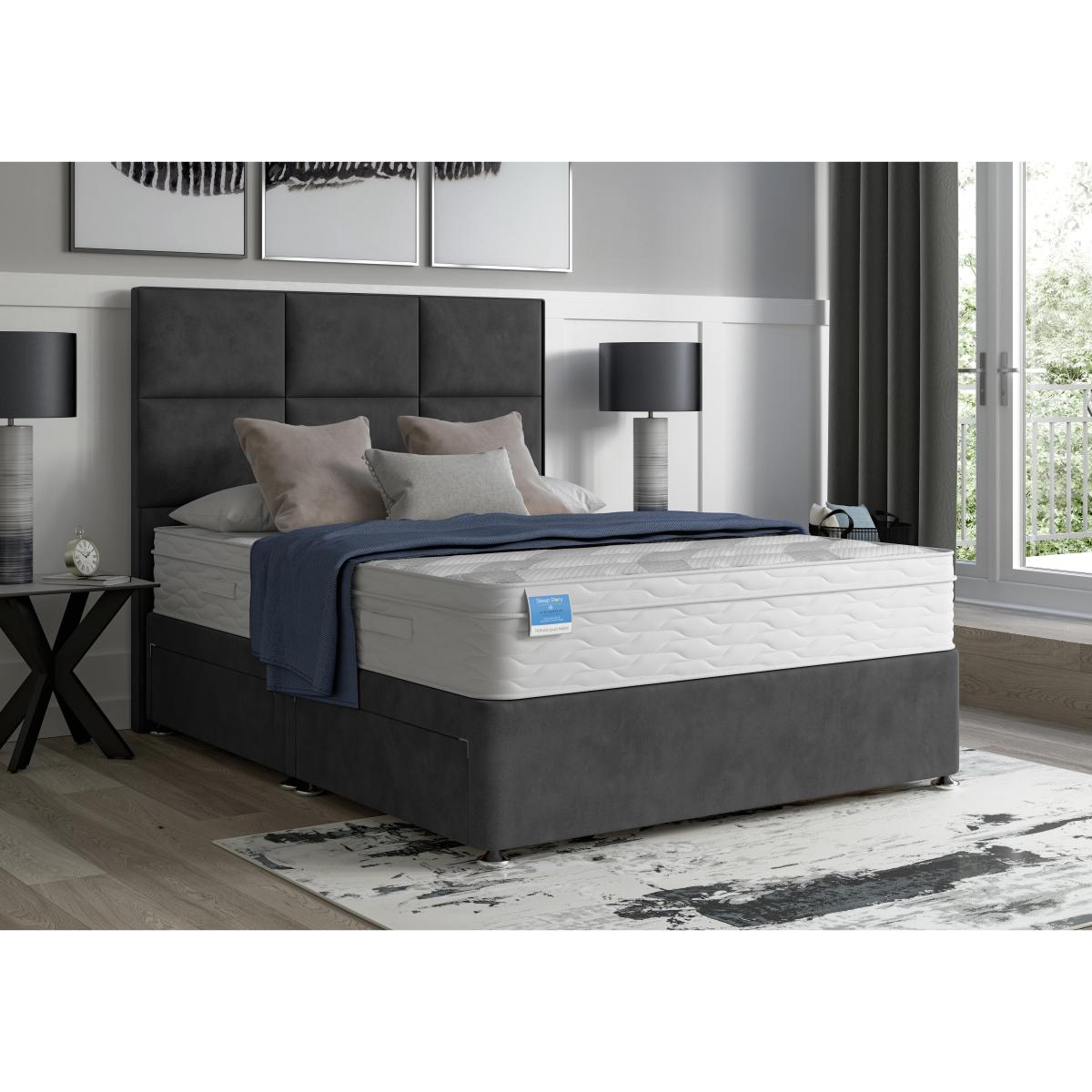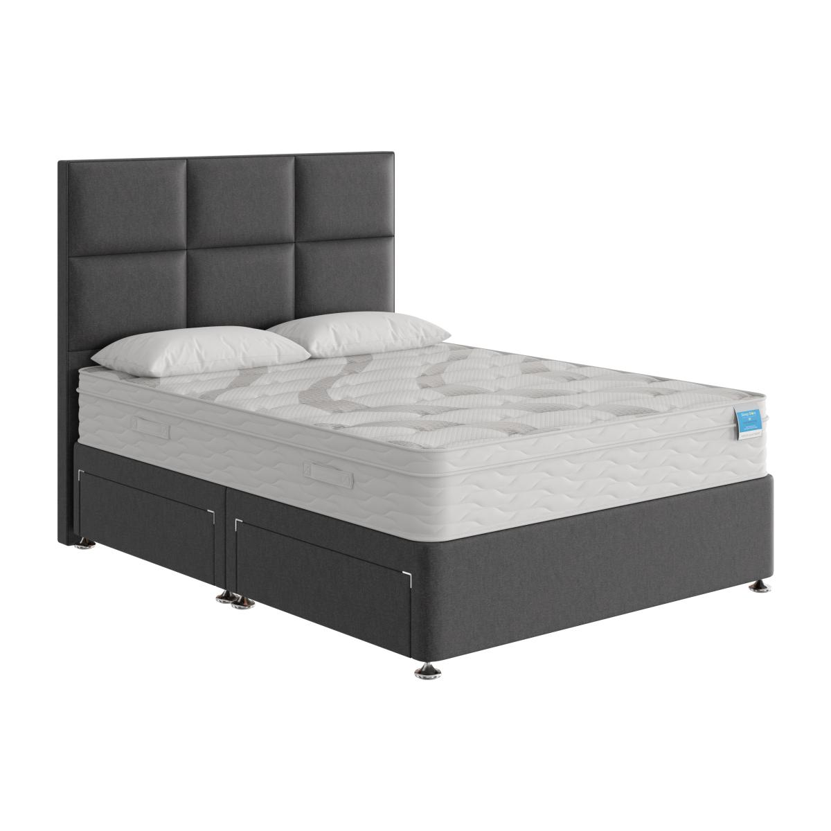 Imagine drifting off to sleep on a beautifully crafted pocket spring mattress layered with natural fillings of cashmere, cotton, wool and silk. The medium-feel Sleep Story Natural Luxury Hybrid mattress combines perfect support with the sumptuous cushioning of natural materials – and it’s hypoallergenic too. Made especially for Furniture Village by Highgrove, the collection includes mattresses in every size from small single to super king as well as a wide choice of divan sets with built-in drawer and ottoman storage upholstered in gorgeous fabrics. The excellent-value Sleep Story Natural Luxury Hybrid range is only available at Furniture Village. Look forward to truly relaxing sleep on this pocket sprung mattress layered with cashmere, cotton, wool and silk. The divan base comes with your choice of storage drawers and is upholstered in a luxe fabric. Why you'll love it. Exceptional value divan set with sumptuous pocket spring and natural fillings mattress. Relax into layers of cashmere, cotton, wool and silk. 1400 pocket springs in king size provide supportive comfort. Hypoallergenic. Made in the UK by Highgrove and exclusive to Furniture Village. Platform-top base with a choice of optional storage drawers. Wide selection of stylish upholstery fabrics. Made in the UK by Highgrove and exclusive to Furniture Village. The Sleep Story Natural Luxury Hybrid range includes a mattress and ottoman divan sets. What you need to know. Headboard is an optional extra. Mattress type: Pocket spring, reflex foam and natural fillings. Depth: 25.5 cm. Firmness: Medium. Springs: 1400 pocket springs in king size. Pillow top: No. Fillings: 5 cm reflex foam, 18 cm fibre, plus cashmere, cotton, wool and silk. Cover: Tencel, Elastance and polyester. Requires turning: No. Base type: Platform top with optional drawer storage. Sizes: Small single, single, small double, double, king and super king. Mattress care: Air for 4 hours before using to remove any odour. Allow at least 4 hours for springs to settle and for mattress to attain its full size. Indentations caused by settlement of fillings or body weight are normal and are not considered defects. If used on a slatted bed frame, the space between slats must be no wider than 7.5 cm. Spaces wider than this may cause excess dipping of the mattress and invalidate the guarantee. Always use a mattress protector. Rotate regularly. Divan base care: Clean upholstery weekly using a soft brush or vacuum with the curtain attachment. Professional cleaning advised for oil- and grease-based stains. Please note: Divan base is supplied in two halves for small double, double, king and super king sizes.