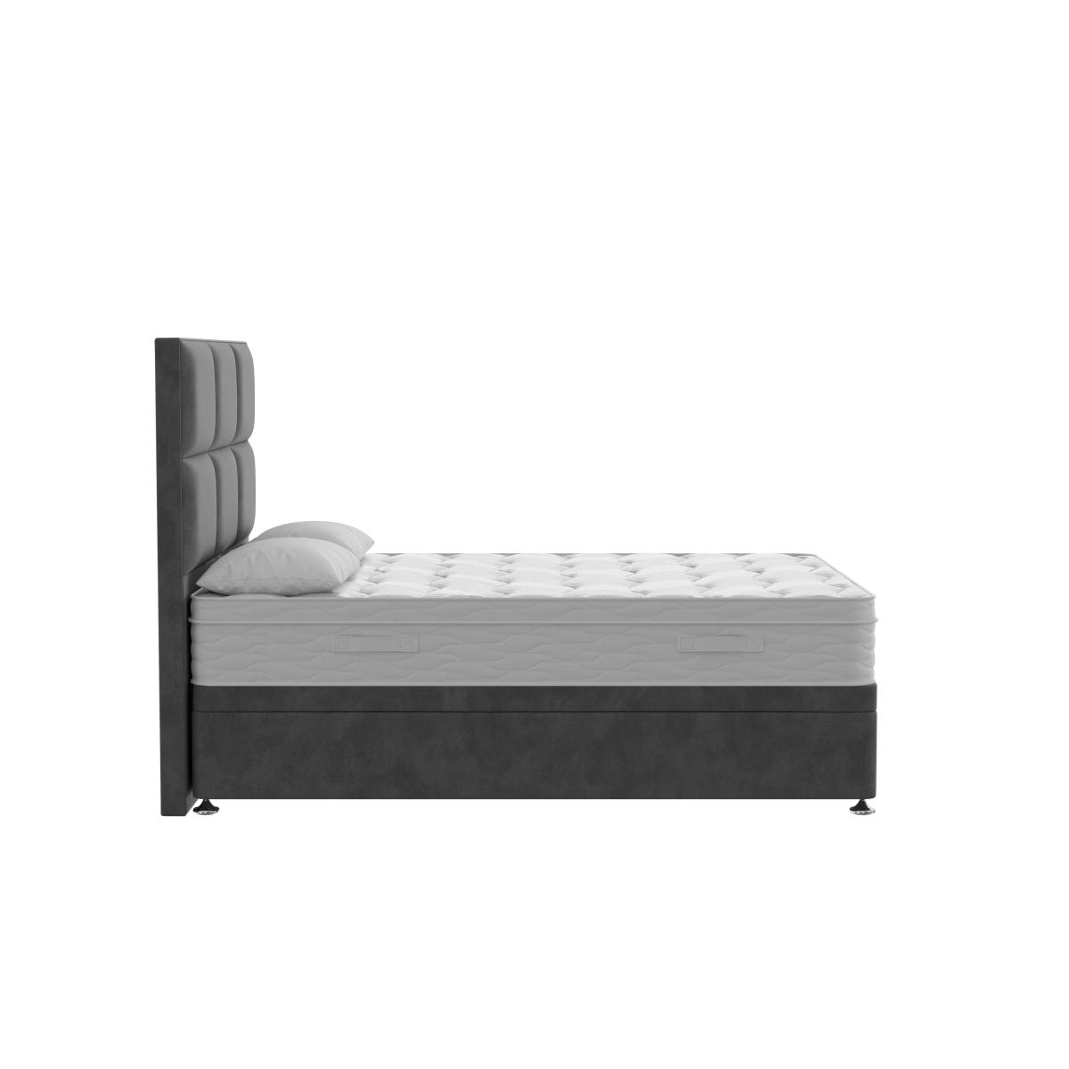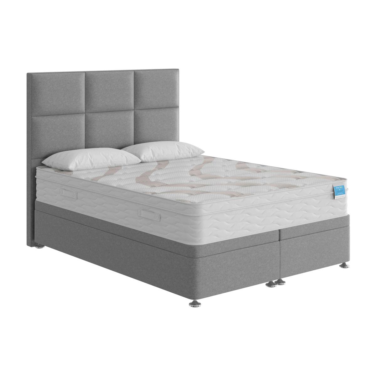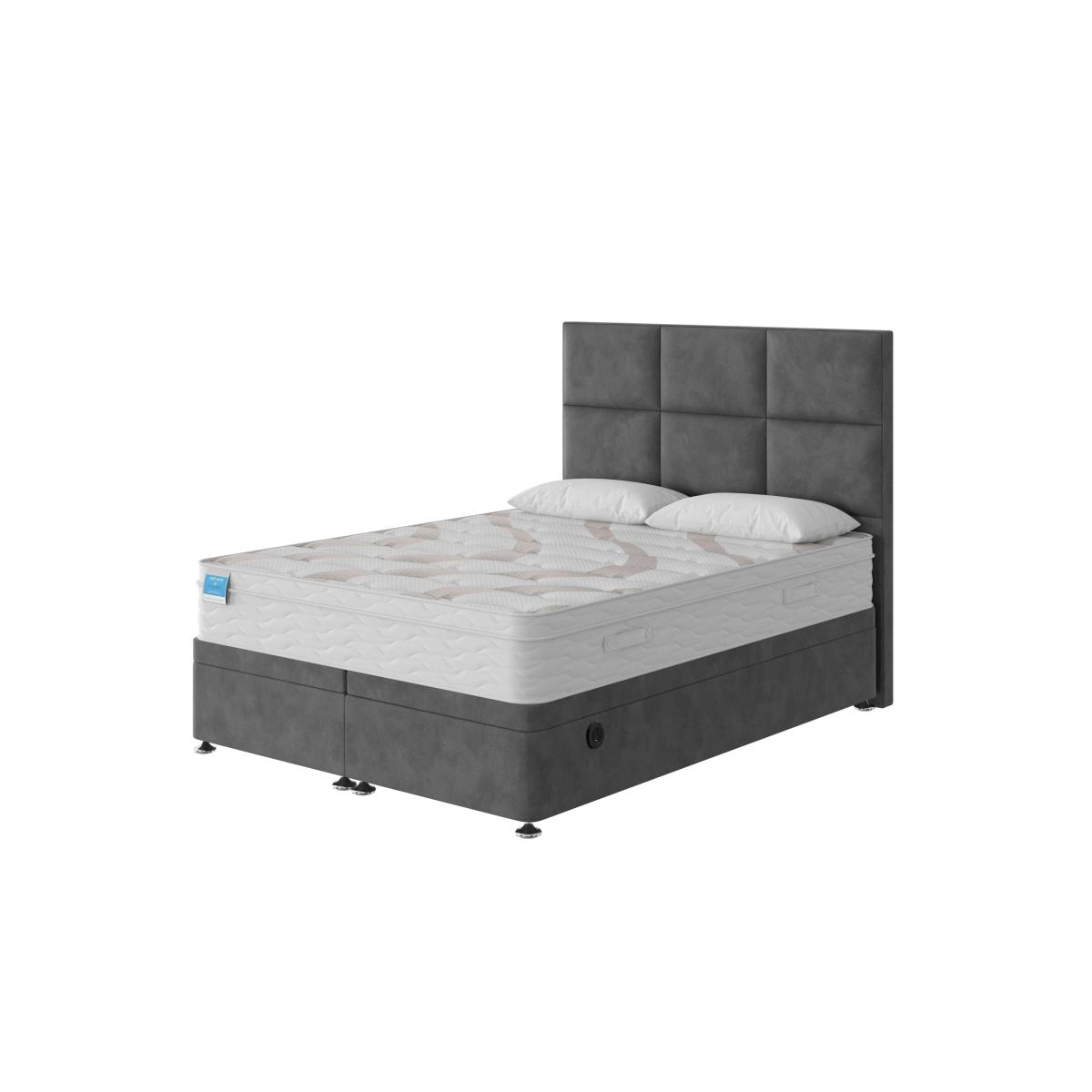 Imagine drifting off to sleep on a beautifully crafted pocket spring mattress layered with natural fillings of cashmere, cotton, wool and silk. The medium-feel Sleep Story Natural Luxury Hybrid mattress combines perfect support with the sumptuous cushioning of natural materials – and it’s hypoallergenic too. Made especially for Furniture Village by Highgrove, the collection includes mattresses in every size from small single to super king as well as a wide choice of divan sets with built-in drawer and ottoman storage upholstered in gorgeous fabrics. The excellent-value Sleep Story Natural Luxury Hybrid range is only available at Furniture Village. With cashmere, cotton, wool and silk fillings, the mattress in this power ottoman divan set promises a relaxing night’s sleep. The easy-open electric ottoman storage base is just as dreamy. Why you'll love it With its sumptuous mattress, this power ottoman divan set is a must-have. Style, comfort and effortless storage at a great-value price. Relax into layers of cashmere, cotton, wool and silk. 1400 pocket springs in king size provide supportive comfort. Hypoallergenic. Power ottoman divan base means roomy storage – with no lifting required. Child lock feature makes the electric mechanism as safe as it is simple. Platform-top style for excellent mattress support. Choose from a wide selection of stylish upholstery fabrics. Made in the UK by Highgrove and exclusive to Furniture Village. Only available online. This power ottoman divan set is part of the Sleep Story Natural Luxury Hybrid range. What you need to know Headboard is an optional extra. Mattress type: Pocket spring, reflex foam and natural fillings. Depth: 25.5 cm. Firmness: Medium. Springs: 1400 pocket springs in king size. Pillow top: No. Fillings: 5 cm reflex foam, 18 cm fibre, plus cashmere, cotton, wool and silk. Cover: Tencel, Elastance and polyester. Requires turning: No. Base type: Platform top with electric-powered end-opening ottoman storage base. Sizes: Small single, single, small double, double, king and super king. Mattress care:Air for 4 hours before using to remove any odour. Indentations caused by settlement of fillings or body weight are normal and are not considered defects. If used on a slatted bed frame, the space between slats must be no wider than 7.5 cm. Spaces wider than this may cause excess dipping of the mattress and invalidate the guarantee. Always use a mattress protector. Rotate regularly. Divan base care: Clean upholstery weekly using a soft brush or vacuum with the curtain attachment. Professional cleaning advised for oil- and grease-based stains. Be careful care when opening and closing the ottoman base. The ottoman base is powered by mains electricity. Please ensure that you will be able to connect it to a power source before ordering. Ordering a small double, double, king or super king size? Your divan base will be supplied in two halves for easier access.
