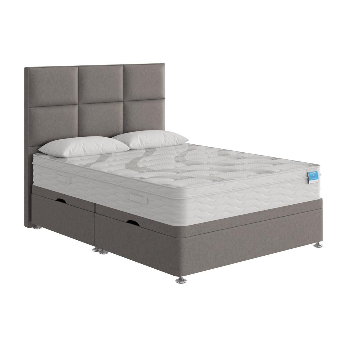 Imagine drifting off to sleep on a beautifully crafted pocket spring mattress layered with natural fillings of cashmere, cotton, wool and silk. The medium-feel Sleep Story Natural Luxury Hybrid mattress combines perfect support with the sumptuous cushioning of natural materials – and it’s hypoallergenic too. Made especially for Furniture Village by Highgrove, the collection includes mattresses in every size from small single to super king as well as a wide choice of divan sets with built-in drawer and ottoman storage upholstered in gorgeous fabrics. The excellent-value Sleep Story Natural Luxury Hybrid range is only available at Furniture Village. With sumptuous layers of cashmere, cotton, wool and silk, this well-crafted pocket spring mattress really does represent affordable luxury. The practical base has roomy side-opening ottoman storage. Only at Furniture Village. Why you'll love it. Exceptional-value ottoman divan set with sumptuous pocket spring and natural fillings mattress. Relax into layers of cashmere, cotton, wool and silk. 1400 pocket springs in king size provide supportive comfort. Hypoallergenic. Made in the UK by Highgrove and exclusive to Furniture Village. Platform-top base has a practical side-opening ottoman storage space. Wide selection of stylish upholstery fabrics. Made in the UK by Highgrove and exclusive to Furniture Village. The Sleep Story Natural Luxury Hybrid range includes a mattress and ottoman divan sets. What you need to know. Headboard is an optional extra. Mattress type: Pocket spring, reflex foam and natural fillings. Depth: 25.5 cm. Firmness: Medium. Springs: 1400 pocket springs in king size. Pillow top: No. Fillings: 5 cm reflex foam, 18 cm fibre, plus cashmere, cotton, wool and silk. Cover: Tencel, Elastance and polyester. Requires turning: No. Base type: Platform top with side-opening ottoman storage. Sizes: Small single, single, small double, double, king and super king. Mattress care: Air for 4 hours before using to remove any odour. Allow at least 4 hours for springs to settle and for mattress to attain its full size. Indentations caused by settlement of fillings or body weight are normal and are not considered defects. If used on a slatted bed frame, the space between slats must be no wider than 7.5 cm. Spaces wider than this may cause excess dipping of the mattress and invalidate the guarantee. Always use a mattress protector. Rotate regularly. Divan base care: Clean upholstery weekly using a soft brush or vacuum with the curtain attachment. Professional cleaning advised for oil- and grease-based stains. Please note: Divan base is supplied in two halves for small double, double, king and super king sizes.