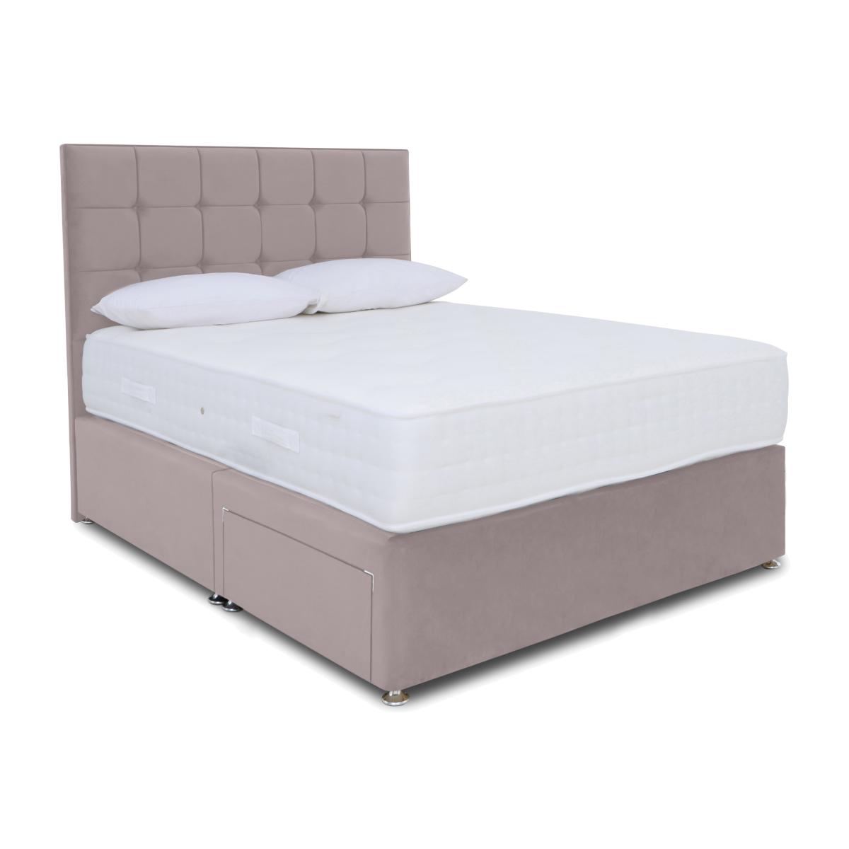 If you prefer a firmer feel mattress, you’ll love the extra-firm mattress that’s part of our Sleep Story Ortho 2000 divan set. Great price, too. Why you'll love it The mattress in this expertly crafted divan set has the extra-firm support your body needs. Rejuvenating comfort and superb support at a great-value price. AdvantEdge® pocket spring system has 2000 springs in king size. It’s designed to offer total body support across the entire sleep surface. Ensures correct spinal alignment for better quality of sleep. DynamicEdge active side support maximises the sleep surface and prevents roll off. Stretch damask cover. Hypoallergenic. Divan set includes a platform-top base with optional storage drawers. Available in a wide selection of stylish upholstery fabrics. Made in the UK by Highgrove and exclusive to Furniture Village. This divan set is part of the Sleep Story Ortho 2000 range. Shop the Sleep Story Ortho 2000 range for mattresses, divan sets, electric ottoman beds and more. What you need to know Headboard is an optional extra. Mattress type: Pocket spring. Depth: 30 cm. Weight:Small single 26 kg, single 31.2 kg, small double 41.6 kg, double 46.8 kg, king 52 kg and super king 62.4 kg. Firmness: Extra firm. Springs: 2000 pocket springs in king size. Pillow top: No. Fillings: Foam and fibre. Cover: Stretch fabric. Requires turning:Yes. Base type: Platform top with optional storage drawers. Sizes: Small single, single, small double, double, king and super king. Mattress care:Air for 4 hours before using to remove any odour. Indentations caused by settlement of fillings or body weight are normal and are not considered defects. If used on a slatted bed frame, the space between slats must be no wider than 7.5 cm. Spaces wider than this may cause excess dipping of the mattress and invalidate the guarantee. Always use a mattress protector. Rotate regularly. Divan base care: Clean upholstery weekly using a soft brush or vacuum with the curtain attachment. Professional cleaning advised for oil- and grease-based stains. Ordering a small double, double, king or super king size? Your divan base will be supplied in two halves for easier access.