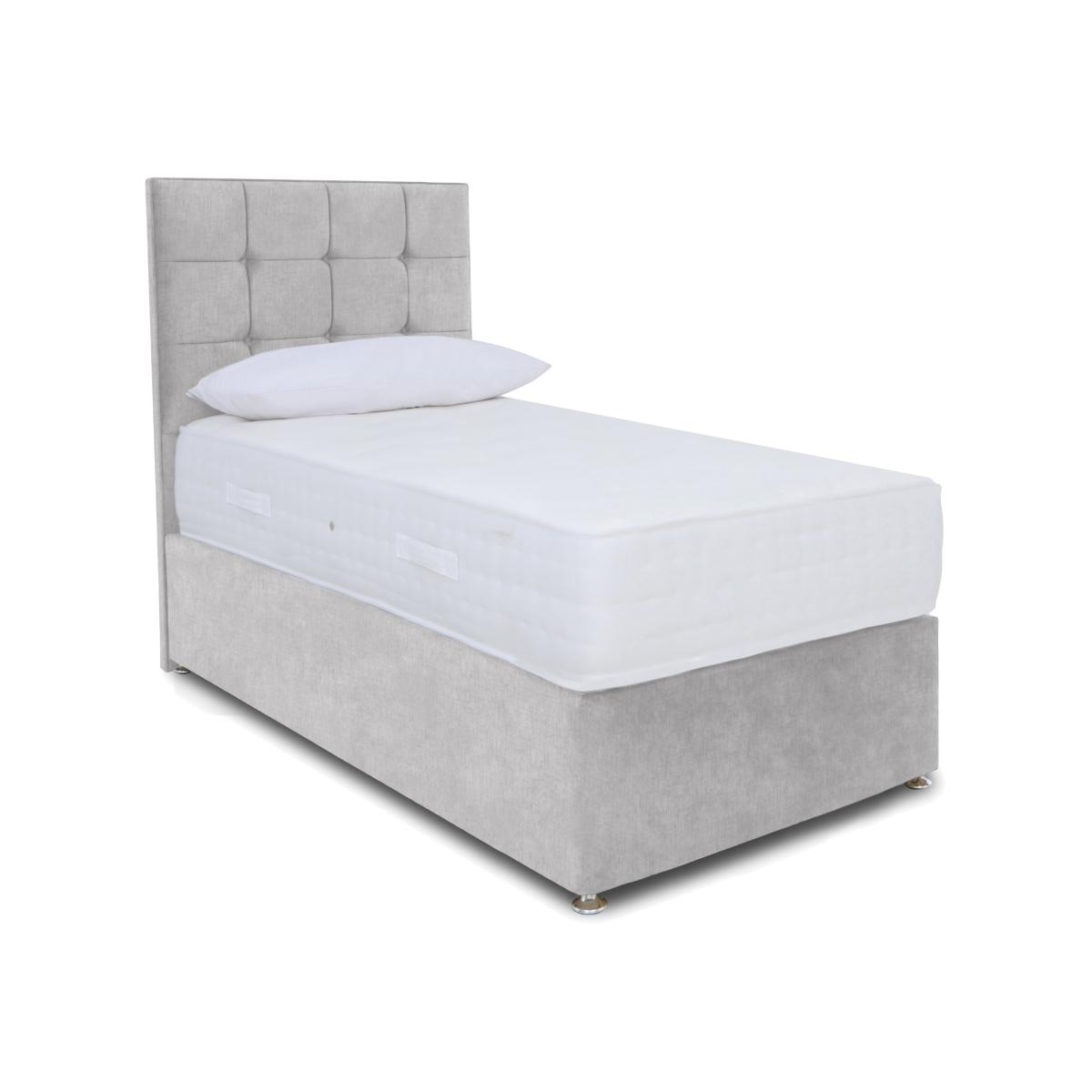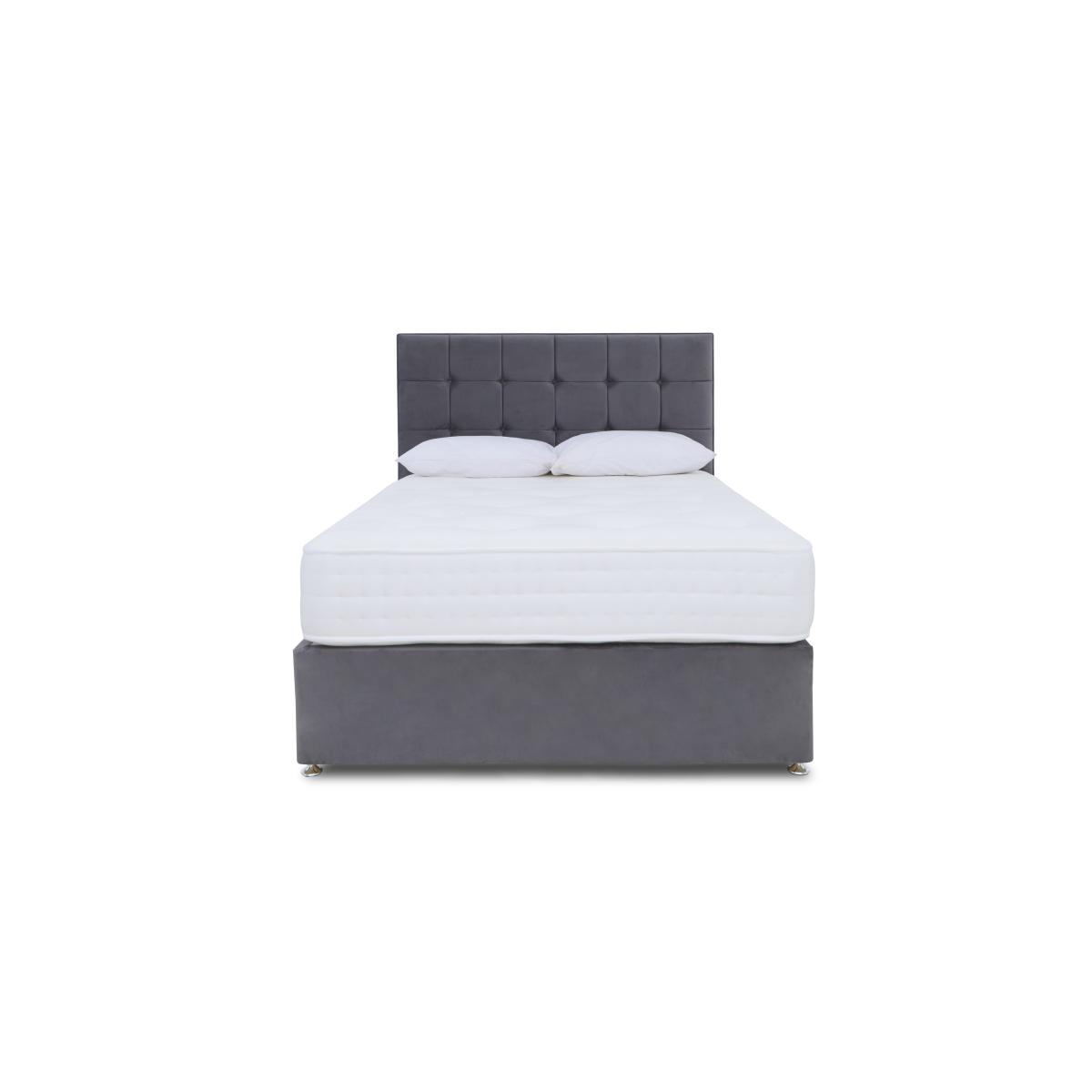 If you prefer a firmer feel mattress, you’ll love the extra-firm mattress that’s part of our Sleep Story Ortho 2000 divan set. Great price, too. Why you'll love it The mattress in this expertly crafted divan set has the extra-firm support your body needs. Rejuvenating comfort and superb support at a great-value price. AdvantEdge® pocket spring system has 2000 springs in king size. It’s designed to offer total body support across the entire sleep surface. Ensures correct spinal alignment for better quality of sleep. DynamicEdge active side support maximises the sleep surface and prevents roll off. Stretch damask cover. Hypoallergenic. Divan set includes a platform-top base with optional storage drawers. Available in a wide selection of stylish upholstery fabrics. Made in the UK by Highgrove and exclusive to Furniture Village. This divan set is part of the Sleep Story Ortho 2000 range. Shop the Sleep Story Ortho 2000 range for mattresses, divan sets, electric ottoman beds and more. What you need to know Headboard is an optional extra. Mattress type: Pocket spring. Depth: 30 cm. Weight:Small single 26 kg, single 31.2 kg, small double 41.6 kg, double 46.8 kg, king 52 kg and super king 62.4 kg. Firmness: Extra firm. Springs: 2000 pocket springs in king size. Pillow top: No. Fillings: Foam and fibre. Cover: Stretch fabric. Requires turning:Yes. Base type: Platform top with optional storage drawers. Sizes: Small single, single, small double, double, king and super king. Mattress care:Air for 4 hours before using to remove any odour. Indentations caused by settlement of fillings or body weight are normal and are not considered defects. If used on a slatted bed frame, the space between slats must be no wider than 7.5 cm. Spaces wider than this may cause excess dipping of the mattress and invalidate the guarantee. Always use a mattress protector. Rotate regularly. Divan base care: Clean upholstery weekly using a soft brush or vacuum with the curtain attachment. Professional cleaning advised for oil- and grease-based stains. Ordering a small double, double, king or super king size? Your divan base will be supplied in two halves for easier access.