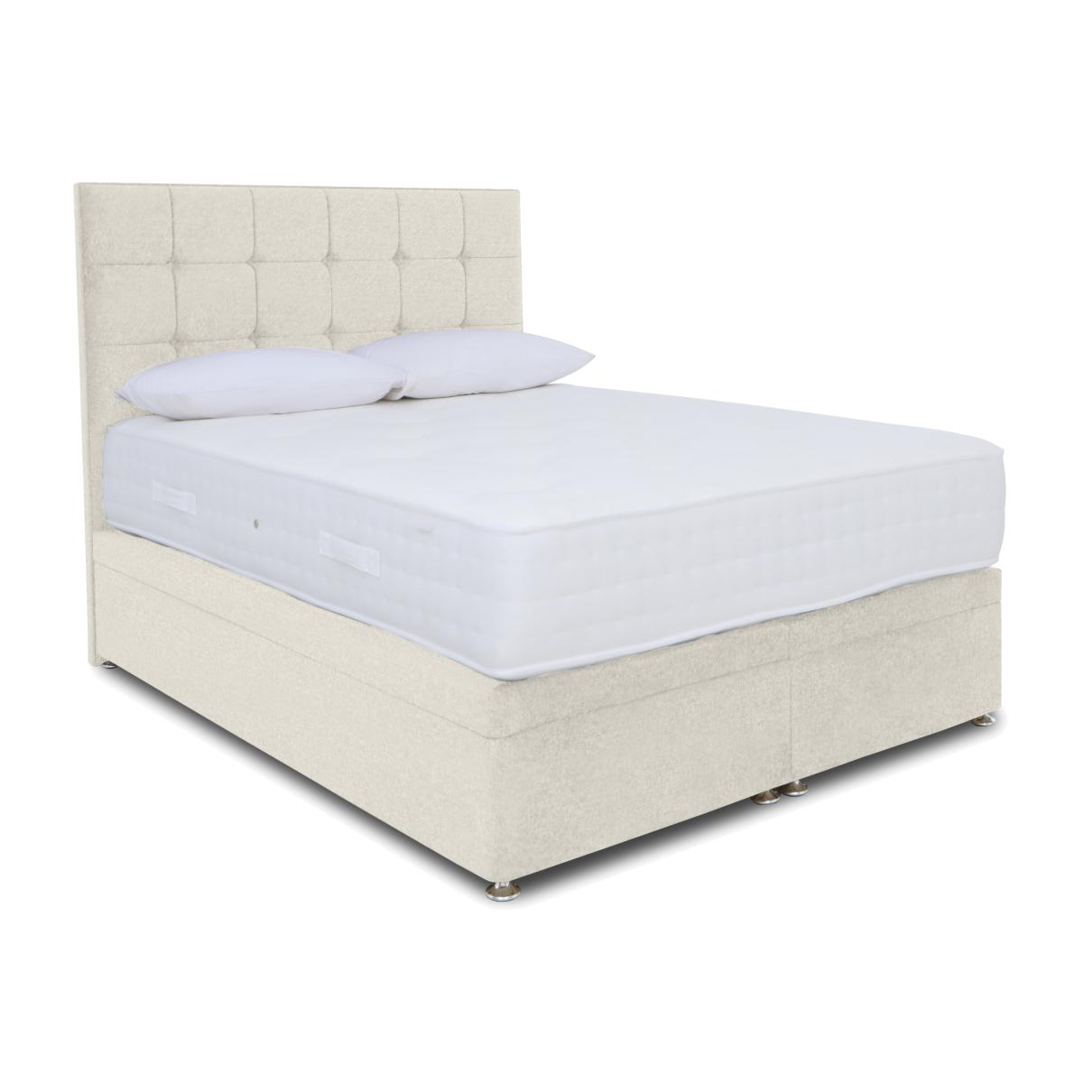 This ottoman divan set ticks all the boxes. It has a fantastic extra-firm ortho mattress with 2000 pocket springs in king size plus effortless electric-lift ottoman storage. Why you'll love it The mattress in this expertly crafted electric ottoman divan set has the extra-firm support your body needs. Rejuvenating comfort and superb support at a great-value price. AdvantEdge® pocket spring system has 2000 springs in king size. It’s designed to offer total body support across the entire sleep surface. Ensures correct spinal alignment for better quality of sleep. DynamicEdge active side support maximises the sleep surface and prevents roll off. Stretch damask cover. Hypoallergenic. Divan set includes a platform-top base with spacious end-opening ottoman storage. It’s electric powered for effortless access to the storage compartment. Available in a wide selection of stylish upholstery fabrics. Made in the UK by Highgrove and exclusive to Furniture Village. This electric ottoman divan set is part of the Sleep Story Ortho 2000 range. Shop the Sleep Story Ortho 2000 range for mattresses, divan sets, electric ottoman beds and more. What you need to know Headboard is an optional extra. Mattress type: Pocket spring. Depth: 30 cm. Weight:Small single 26 kg, single 31.2 kg, small double 41.6 kg, double 46.8 kg, king 52 kg and super king 62.4 kg. Firmness: Extra firm. Springs: 2000 pocket springs in king size. Pillow top: No. Fillings: Foam and fibre. Cover: Stretch fabric. Requires turning: Yes. Base type: Platform top with electric-powered end-opening ottoman storage. Sizes: Small single, single, small double, double, king and super king. Mattress care:Air for 4 hours before using to remove any odour. Indentations caused by settlement of fillings or body weight are normal and are not considered defects. If used on a slatted bed frame, the space between slats must be no wider than 7.5 cm. Spaces wider than this may cause excess dipping of the mattress and invalidate the guarantee. Always use a mattress protector. Rotate regularly. Divan base care: Clean upholstery weekly using a soft brush or vacuum with the curtain attachment. Professional cleaning advised for oil- and grease-based stains. Be careful care when opening and closing the ottoman base. The ottoman base is powered by mains electricity. Please ensure that you will be able to connect it to a power source before ordering. Ordering a small double, double, king or super king size? Your divan base will be supplied in two halves for easier access.