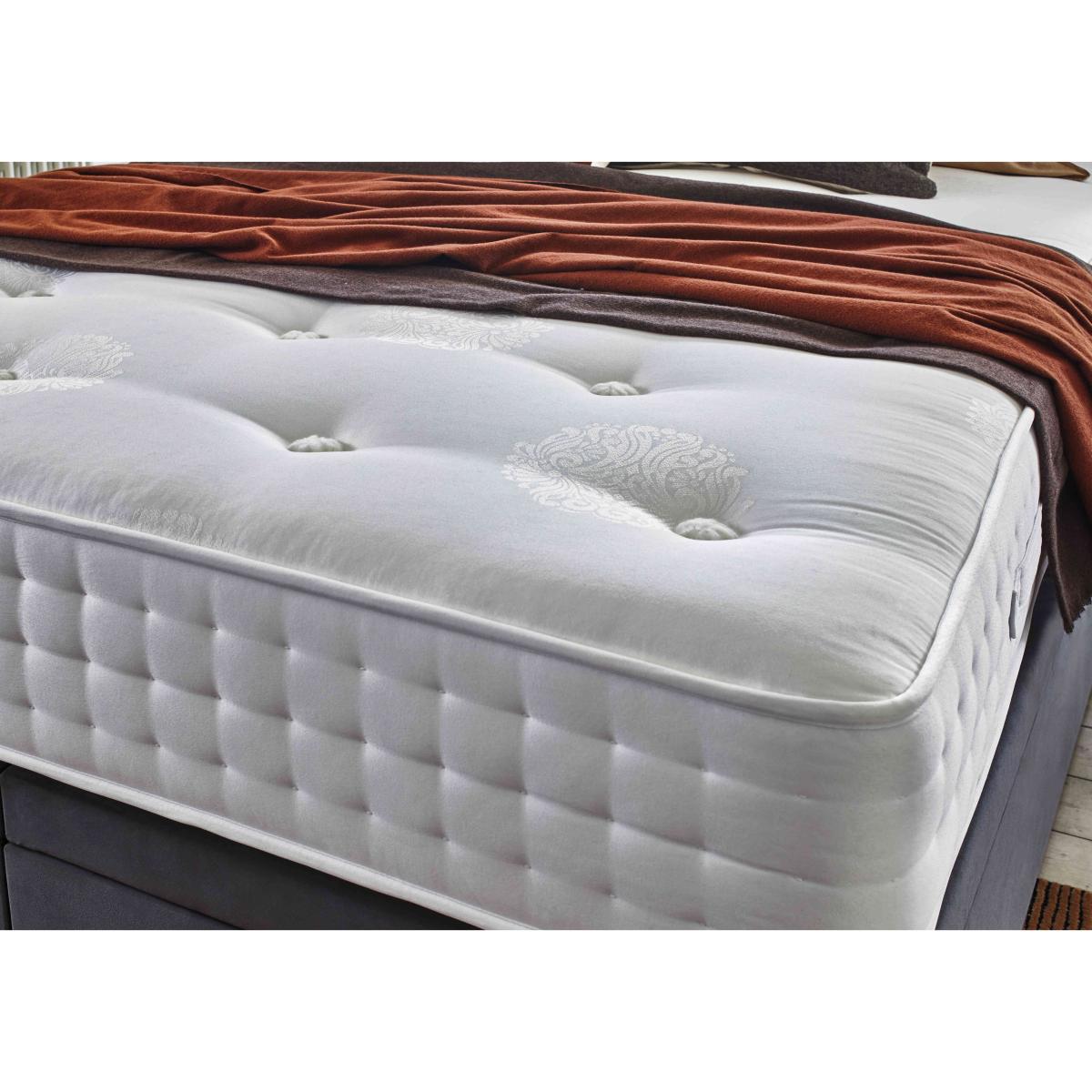 The pocket spring mattress in this divan set offers fantastic extra-firm support and the upholstered divan base has a really spacious ottoman storage compartment. Why you'll love it The mattress in this expertly crafted ottoman divan set has the extra-firm support your body needs. Rejuvenating comfort and superb support at a great-value price. AdvantEdge® pocket spring system has 2000 springs in king size. It’s designed to offer total body support across the entire sleep surface. Ensures correct spinal alignment for better quality of sleep. DynamicEdge active side support maximises the sleep surface and prevents roll off. Stretch damask cover. Hypoallergenic. Divan set includes a platform-top base with end-opening ottoman storage. Available in a wide selection of stylish upholstery fabrics. Made in the UK by Highgrove and exclusive to Furniture Village. This ottoman divan set is part of the Sleep Story Ortho 2000 range. Shop the Sleep Story Ortho 2000 range for mattresses, divan sets, electric ottoman beds and more. What you need to know Headboard is an optional extra. Mattress type: Pocket spring. Depth: 30 cm. Weight:Small single 26 kg, single 31.2 kg, small double 41.6 kg, double 46.8 kg, king 52 kg and super king 62.4 kg. Firmness: Extra firm. Springs: 2000 pocket springs in king size. Pillow top: No. Fillings: Foam and fibre. Cover: Stretch fabric. Requires turning: Yes. Base type: Platform top with end-opening ottoman storage. Sizes: Small single, single, small double, double, king and super king. Mattress care:Air for 4 hours before using to remove any odour. Indentations caused by settlement of fillings or body weight are normal and are not considered defects. If used on a slatted bed frame, the space between slats must be no wider than 7.5 cm. Spaces wider than this may cause excess dipping of the mattress and invalidate the guarantee. Always use a mattress protector. Rotate regularly. Divan base care: Clean upholstery weekly using a soft brush or vacuum with the curtain attachment. Professional cleaning advised for oil- and grease-based stains. Be careful care when opening and closing the ottoman base. Ordering a small double, double, king or super king size? Your divan base will be supplied in two halves for easier access.