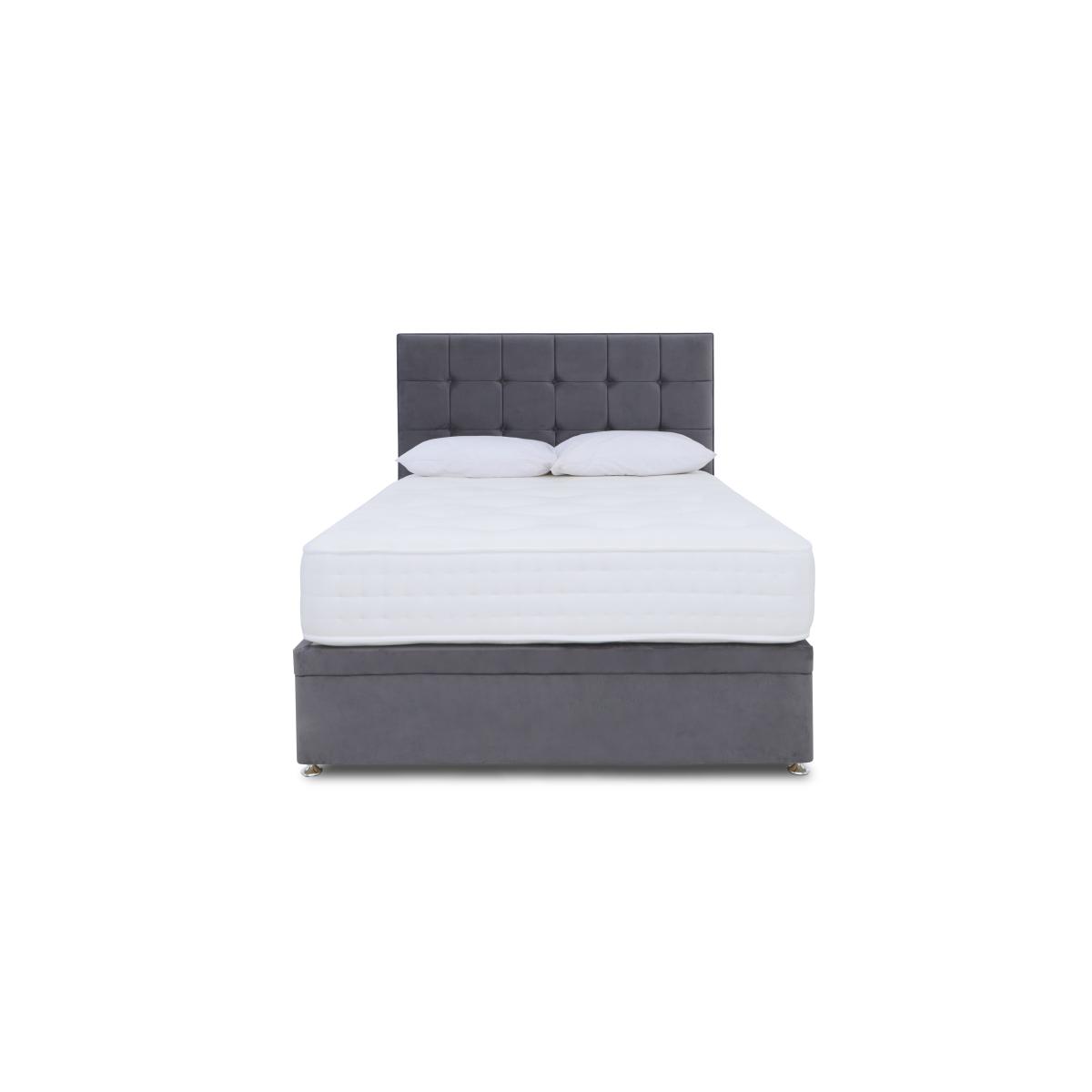 Smaller bedroom? This divan set with side-opening ottoman storage is designed to fit any space. You’ll love the extra-firm pocket spring mattress too. Why you'll love it The mattress in this expertly crafted ottoman divan set has the extra-firm support your body needs. Rejuvenating comfort and superb support at a great-value price. AdvantEdge® pocket spring system has 2000 springs in king size. It’s designed to offer total body support across the entire sleep surface. Ensures correct spinal alignment for better quality of sleep. DynamicEdge active side support maximises the sleep surface and prevents roll off. Stretch damask cover. Hypoallergenic. Divan set includes a platform-top base with space-saving side-opening ottoman storage. Available in a wide selection of stylish upholstery fabrics. Made in the UK by Highgrove and exclusive to Furniture Village. This ottoman divan set is part of the Sleep Story Ortho 2000 range. Shop the Sleep Story Ortho 2000 range for mattresses, divan sets, electric ottoman beds and more. What you need to know Headboard is an optional extra. Mattress type: Pocket spring. Depth: 30 cm. Weight:Small single 26 kg, single 31.2 kg, small double 41.6 kg, double 46.8 kg, king 52 kg and super king 62.4 kg. Firmness: Extra firm. Springs: 2000 pocket springs in king size. Pillow top: No. Fillings: Foam and fibre. Cover: Stretch fabric. Requires turning: Yes. Base type: Platform top with side-opening ottoman storage. Sizes: Small single, single, small double, double, king and super king. Mattress care:Air for 4 hours before using to remove any odour. Indentations caused by settlement of fillings or body weight are normal and are not considered defects. If used on a slatted bed frame, the space between slats must be no wider than 7.5 cm. Spaces wider than this may cause excess dipping of the mattress and invalidate the guarantee. Always use a mattress protector. Rotate regularly. Divan base care: Clean upholstery weekly using a soft brush or vacuum with the curtain attachment. Professional cleaning advised for oil- and grease-based stains. Be careful care when opening and closing the ottoman base. Ordering a small double, double, king or super king size? Your divan base will be supplied in two halves for easier access.
