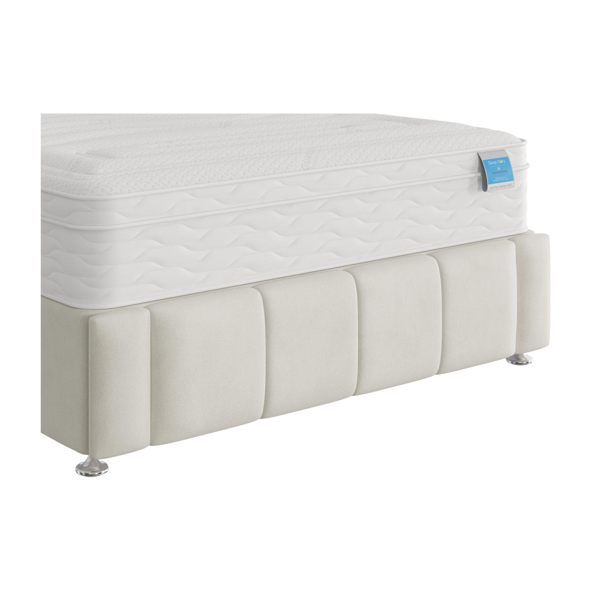 Orwell: a statement footboard for any style of bedroom. Clean lines and a chic finish. Why you'll love it. Luxuriously cushioned for extra cosiness. Modern design. Choose from a selection of fabrics. Contemporary vertical fluting. Made in Britain for Furniture Village. What you need to know. Must be ordered at the same time as your divan base. The footboard is built into the divan base and is non removable. Upholstered to match the Orwell headboard. Designed to complement Sleep Story divans and mattresses. Available in standard bed sizes.