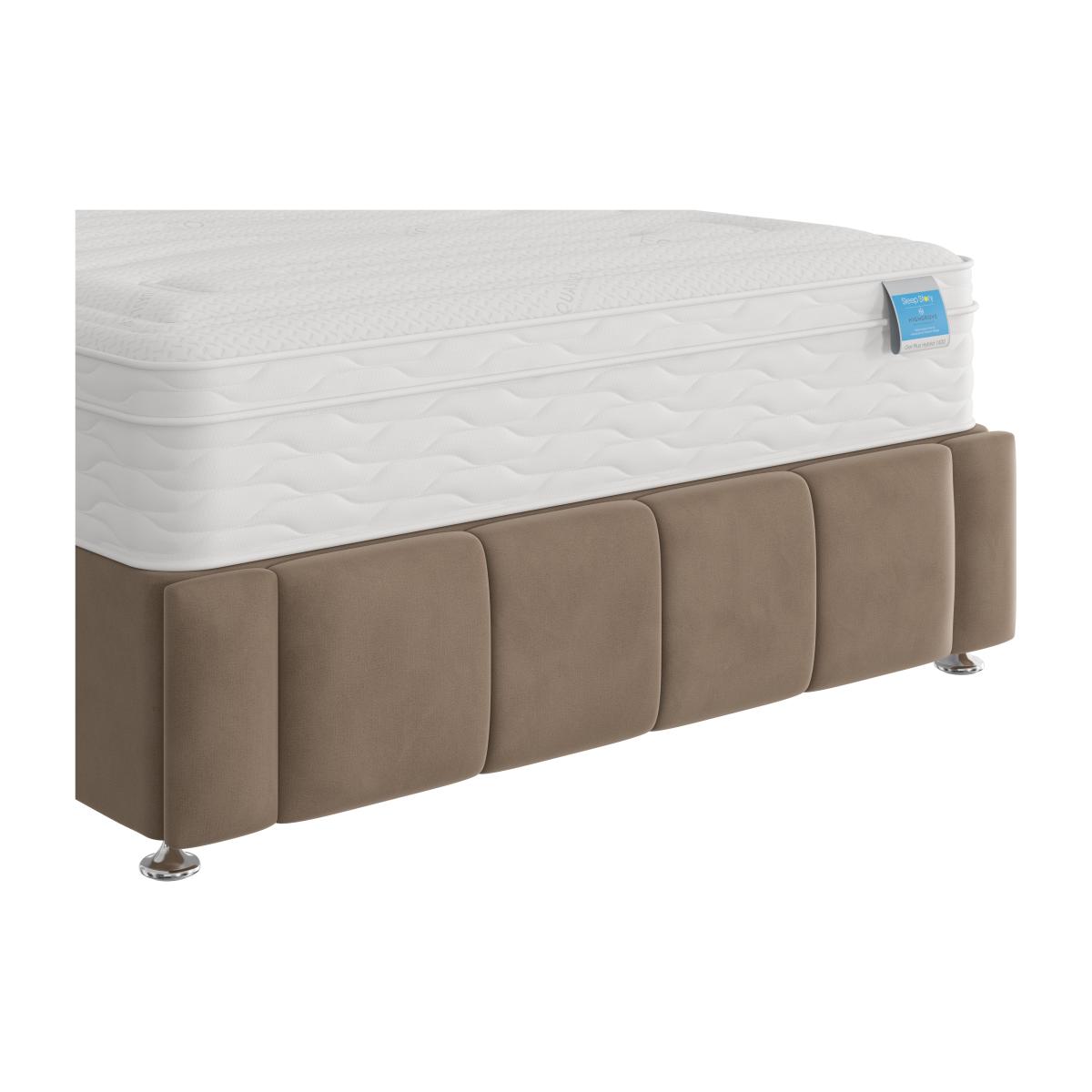Orwell: a statement footboard for any style of bedroom. Clean lines and a chic finish. Why you'll love it. Luxuriously cushioned for extra cosiness. Modern design. Choose from a selection of fabrics. Contemporary vertical fluting. Made in Britain for Furniture Village. What you need to know. Must be ordered at the same time as your divan base. The footboard is built into the divan base and is non removable. Upholstered to match the Orwell headboard. Designed to complement Sleep Story divans and mattresses. Available in standard bed sizes.
