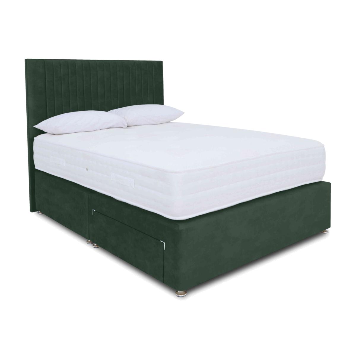 This very affordable divan set includes a luxurious pocket spring mattress with all-natural fillings and a divan base with optional storage drawers. Why you'll love it Divan set with pocket spring mattress layered with wool, silk, cashmere and cotton. The sumptuous feel of all-natural matress fillings at a great-value price. AdvantEdge® pocket spring system has 1000 springs in king size. It’s designed to offer total body support across the entire sleep surface. Ensures correct spinal alignment for better quality of sleep. DynamicEdge active side support maximises the sleep surface and prevents roll off. Breathable stretch fabric cover made with Tencel®. Hypoallergenic. Divan set includes a platform-top base with optional storage drawers. Available in a wide selection of stylish upholstery fabrics. Made in the UK by Highgrove and exclusive to Furniture Village. This divan set is part of the Sleep Story Pocket Luxury range. Shop the Sleep Story Pocket Luxury range for mattresses, divan sets, electric ottoman beds and more. What you need to know Headboard is an optional extra. Mattress type: Pocket spring. Depth: 28 cm. Weight:Small single 21.1 kg, single 25.32 kg, small double 33.76 kg, double 37.98 kg, king 42.2 kg and super king 50.64 kg. Firmness: Medium. Springs: 1000 pocket springs in king size. Pillow top: No. Fillings: Wool, cotton, silk, cashmere, foam and polyester. Cover: Tencel® knitted stretch fabric cover. Requires turning: Yes. Base type: Platform top with optional storage drawers. Sizes: Small single, single, small double, double, king and super king. Mattress care:Air for 4 hours before using to remove any odour. Indentations caused by settlement of fillings or body weight are normal and are not considered defects. If used on a slatted bed frame, the space between slats must be no wider than 7.5 cm. Spaces wider than this may cause excess dipping of the mattress and invalidate the guarantee. Always use a mattress protector. Rotate regularly. Divan base care: Clean upholstery weekly using a soft brush or vacuum with the curtain attachment. Professional cleaning advised for oil- and grease-based stains. Ordering a small double, double, king or super king size? Your divan base will be supplied in two halves for easier access.
