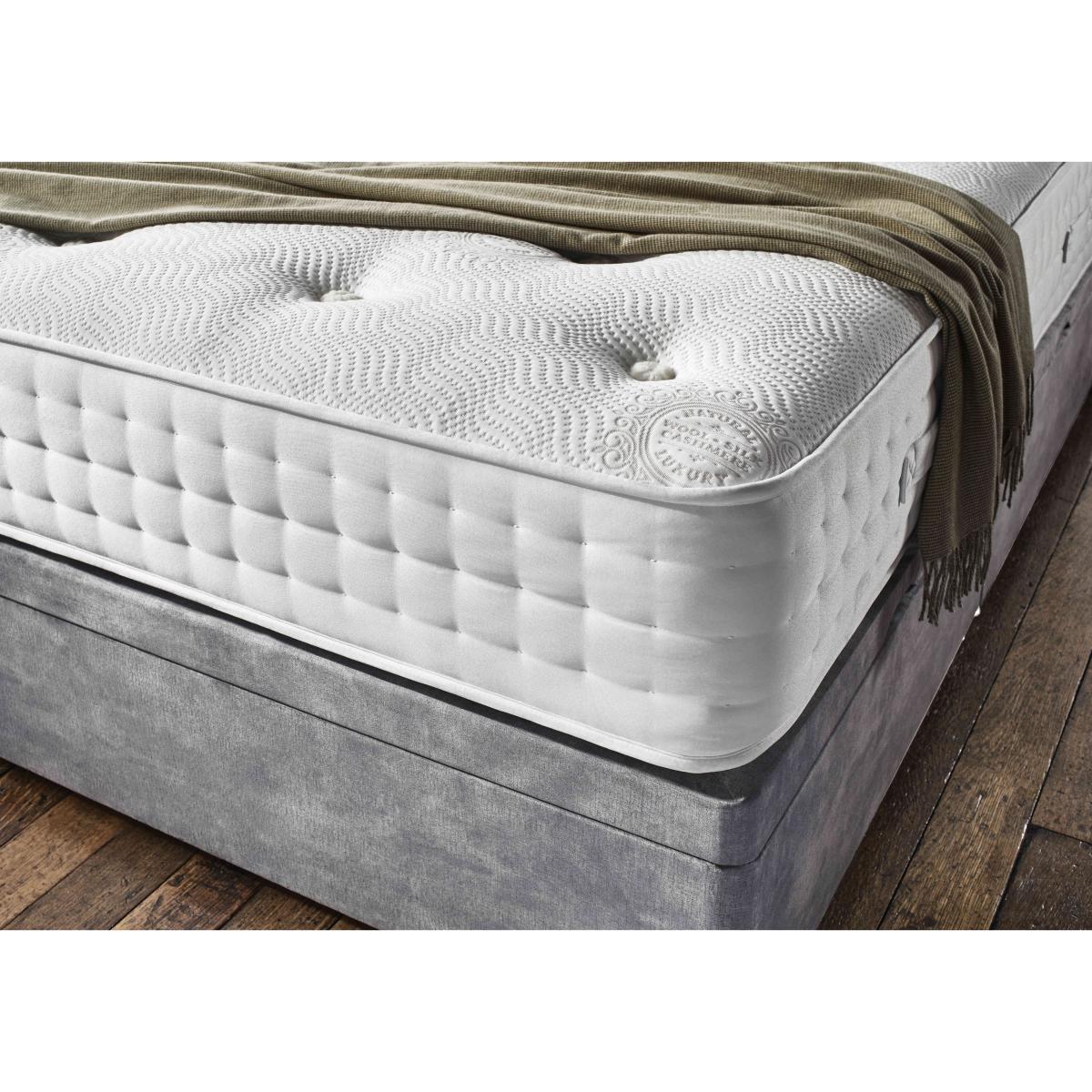 This space-saving ottoman divan set – it opens at the side – also includes a wonderfully luxurious mattress with all-natural fillings. Incredible value. Why you'll love it With soft natural fillings and pocket spring support, this is a truly luxurious mattress. The sumptuous feel of all-natural matress fillings at a great-value price. AdvantEdge® pocket spring system has 1000 springs in king size. It’s designed to offer total body support across the entire sleep surface. Ensures correct spinal alignment for better quality of sleep. DynamicEdge active side support maximises the sleep surface and prevents roll off. Breathable stretch fabric cover made with Tencel®. Hypoallergenic. Divan set includes a platform-top base with space-saving side-opening ottoman storage. Available in a wide selection of stylish upholstery fabrics. Made in the UK by Highgrove and exclusive to Furniture Village. This ottoman divan set is part of the Sleep Story Pocket Luxury range. Shop the Sleep Story Pocket Luxury range for mattresses, divan sets, electric ottoman beds and more. What you need to know Headboard is an optional extra. Mattress type: Pocket spring. Depth: 28 cm. Weight:Small single 21.1 kg, single 25.32 kg, small double 33.76 kg, double 37.98 kg, king 42.2 kg and super king 50.64 kg. Firmness: Medium. Springs: 1000 pocket springs in king size. Pillow top: No. Fillings: Wool, cotton, silk, cashmere, foam and polyester. Cover: Tencel® knitted stretch fabric cover. Requires turning: Yes. Base type: Platform top with electric-powered end-opening ottoman storage. Sizes: Small single, single, small double, double, king and super king. Mattress care:Air for 4 hours before using to remove any odour. Indentations caused by settlement of fillings or body weight are normal and are not considered defects. If used on a slatted bed frame, the space between slats must be no wider than 7.5 cm. Spaces wider than this may cause excess dipping of the mattress and invalidate the guarantee. Always use a mattress protector. Rotate regularly. Divan base care: Clean upholstery weekly using a soft brush or vacuum with the curtain attachment. Professional cleaning advised for oil- and grease-based stains. Be careful care when opening and closing the ottoman base. Ordering a small double, double, king or super king size? Your divan base will be supplied in two halves for easier access.
