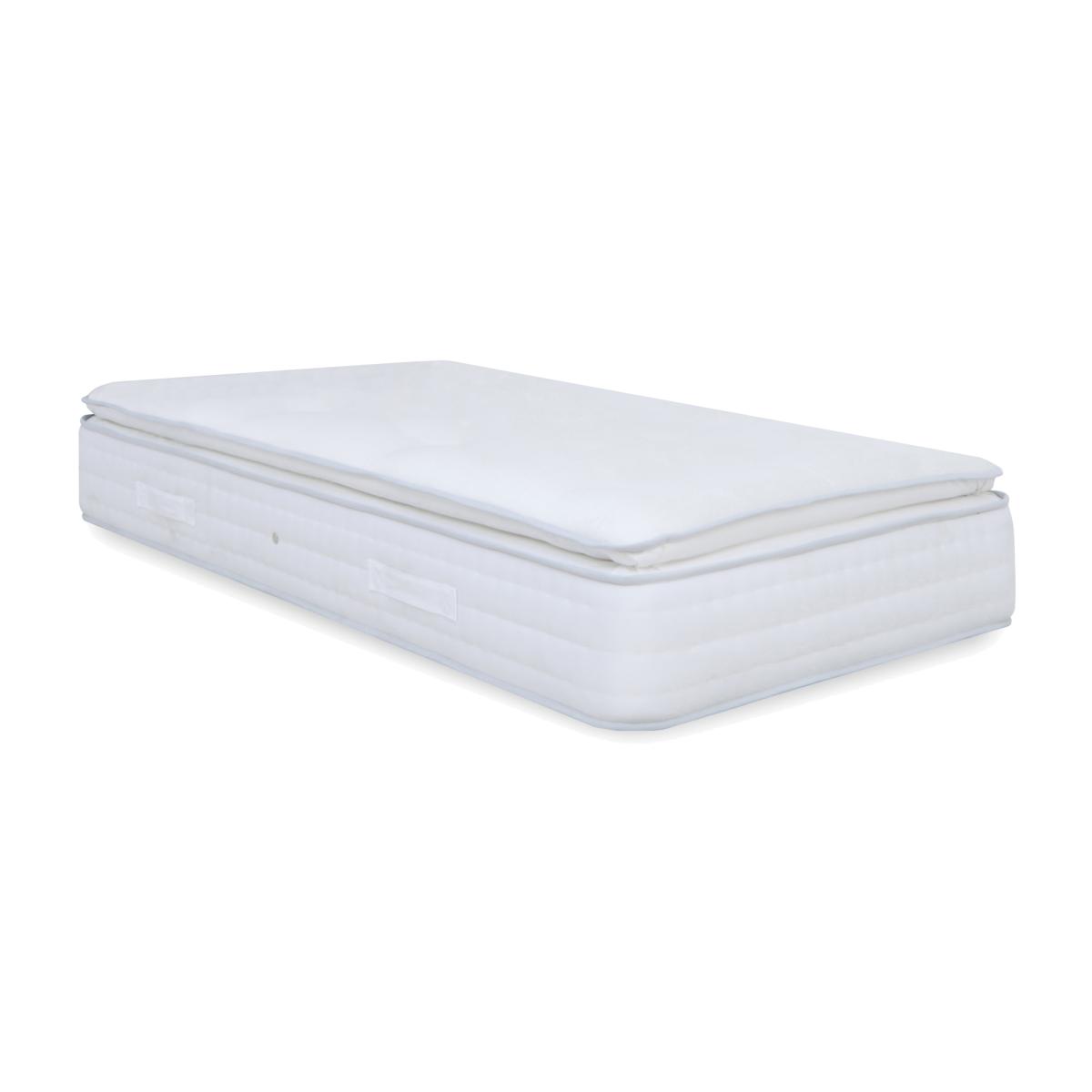 A soft damask cover, a comfort layer of wool, silk and cotton, and an advanced pocket spring system – the mattresses and divan sets in the Sleep Story Pocket Pillowtop range offer luxurious comfort at an exceptional price. Mattresses have 2000 individually pocketed springs in king size so you can count on wonderful medium-feel support. The range also includes a wide choice of beautifully upholstered divan sets with optional built-in storage – spacious drawers and roomy ottoman compartments. There’s even an electric-powered ottoman divan set. The Sleep Story Pocket Pillowtop range is handcrafted in Britain by Highgrove exclusively for Furniture Village. You’ll love this mattress’s soft and cushioning built in pillow top as much as it’s superb pocket spring support – and it’s great-value price. Why you'll love it This pocket spring pillowtop mattress has a sumptuous all-natural comfort layer. Softness meets support at a great-value price. Luxuriously soft pillow top with wool, cotton and silk fillings for exceptional comfort. AdvantEdge® pocket spring system has 2000 springs in king size. It’s designed to offer total body support across the entire sleep surface. Ensures correct spinal alignment for better quality of sleep. Luxurious damask fabric cover. Hypoallergenic. Made in the UK by Highgrove and exclusive to Furniture Village. This mattress is part of the Sleep Story Pocket Pillowtop range. Shop the Sleep Story Pocket Pillowtop range for mattresses, divan sets, electric ottoman beds and more. What you need to know Mattress type: Pocket spring. Depth: 30 cm. Weight:Small single 23 kg, single 27.6 kg, small double 36.8 kg, double 41.4 kg, king 46 kg and super king 55.2 kg. Firmness: Medium. Springs: 2000 pocket springs in king size. Pillow top:Yes. Fillings: Wool, cotton and silk. Cover:Viscose damask fabric. Requires turning: No. Sizes: Small single, single, small double, double, king and super king. Mattress care:Air for 4 hours before using to remove any odour. Allow at least 4 hours for springs to settle and for mattress to attain its full size. Indentations caused by settlement of fillings or body weight are normal and are not considered defects. If used on a slatted bed frame, the space between slats must be no wider than 7.5 cm. Spaces wider than this may cause excess dipping of the mattress and invalidate the guarantee. Always use a mattress protector. Rotate regularly.