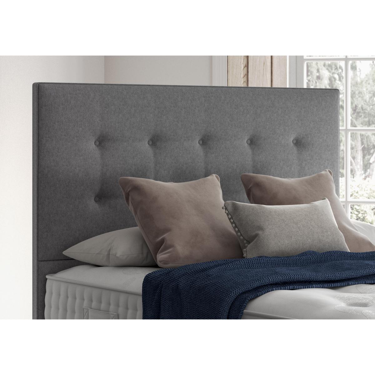 The Sleep Story Reef floor standing headboard has a beautifully buttoned design making it the perfect addition to your contemporary bedroom. This is seriously comfortable, high-end style. Why you'll love it. Modern headboard with a buttoned design. Luxurious silhouette that looks stunning and feels luxurious. Make it your own with our range of beautiful fabrics and colours. High-end style and quality. What you need to know. Sizes: Single, small double, double, king, super king. Designed to complement Sleepstory divans and mattresses. Care: Some fabrics can show wear on areas of more use or in direct sunlight.