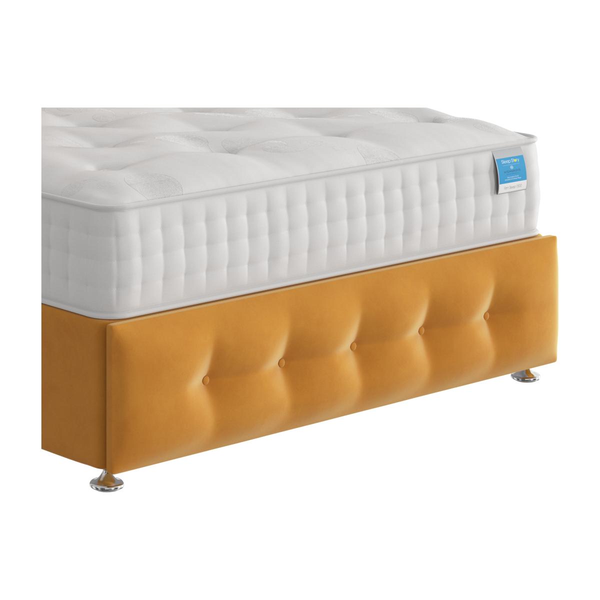 The secret to a beautiful-looking bed: the Reef footboard. It adds a contemporary cosy touch to any bedroom. Why you'll love it. Understated style meets serious comfort. Modern design. Choose from a selection of beautiful fabrics. Chic button detailing. Handmade in Britain for Furniture Village. What you need to know. Must be ordered at the same time as your divan base. The footboard is built into the divan base and is non removable. Upholstered to match the Reef headboard. Designed to complement Sleep Story divans and mattresses. Available in standard bed sizes.