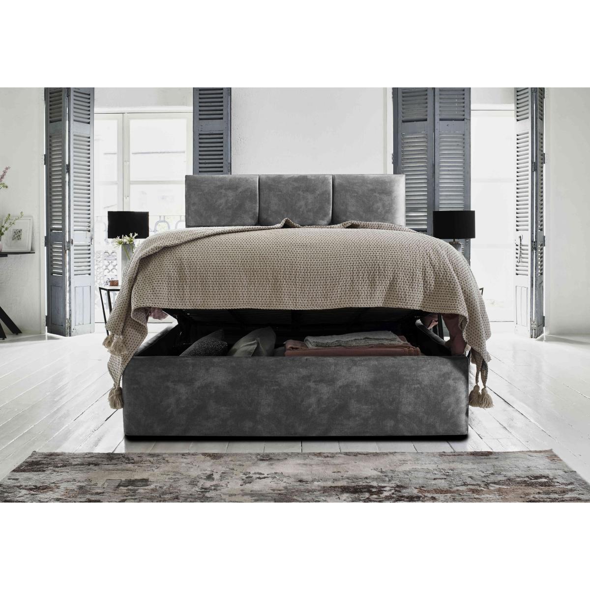 Looking for a bed that commands centre stage? The bed frames in our Sleep Story Rubix collection are big on bold style and dramatic design. Comprising electric-powered and manual-lift ottoman bed frames as well as a floor standing headboard and a footboard, the range’s central motif is oversized buttoning, a feature that's eye-catching and confident. You’ll also enjoy extra bedroom storage thanks to the bed frames’ deep hidden compartments, and the headboard and footboard make it easy to give an existing divan set a whole new look. The great-value Sleep Story Rubix collection is handcrafted in the UK by Highgrove and is exclusively available at Furniture Village. The electric ottoman mechanism makes accessing this bed frame’s huge storage space easy, and the bold take on a traditional buttoned finish gives it undeniable style too. Why you'll love it Make life easier and your bedroom more stylish with this electric ottoman bed frame. Contemporary luxury plus impressive extra storage at an exceptional price. The ottoman lift mechanism is electric powered so accessing the storage space is effortless. Contemporary cushioned headboard with oversized buttoning. High-quality fabric upholstery in a wide choice of lovely colours. Sturdy wooden slatted mattress support. In small double, double, king and super king bed sizes. Handmade in the UK by Highgrove. Exclusively available at Furniture Village. This electric ottoman bed frame is part of our Sleep Story collection. What you need to know Mattress sold separately. Mattress base is composed of 28 wood slats in king size. This ottoman bed frame opens at the end. Maximum mattress weight is 80 kg for all sizes. Please keep hands clear of the mechanism when opening and closing the ottoman. Do not sit on the foot end of this ottoman bed frame when opening. Clean regularly using a soft brush or vacuum with the curtain attachment. Deal with any spills promptly. Professional cleaning advised for oil- and grease-based stains. Some fabrics can show wear on areas of more use or in direct sunlight. Flattening and shading of heavy wear areas on pile fabrics like velvet is unavoidable. Be sure to brush pile fabrics only in the direction of the pile. Please read our upholstery care guide for more advice.
