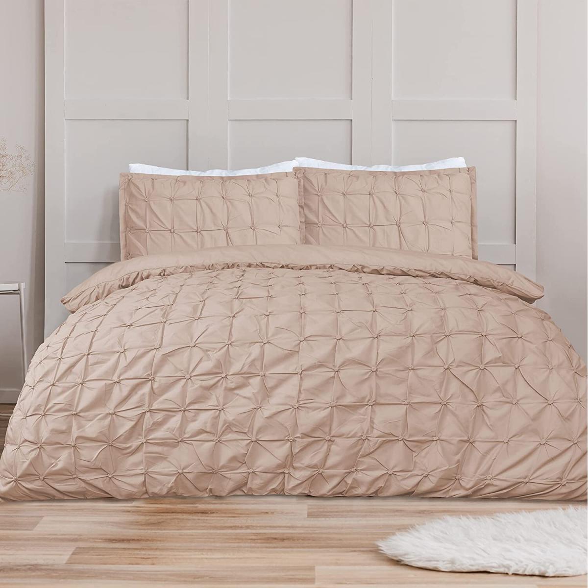 Sleepdown Geometric Rouched Pleat Pintuck Geo Ruched Duvet Set Quilt Cover Pillowcase Bedding. Give your bedroom a fresh modern look with this Rouched Pleats Duvet Cover Set. Polycotton fabric material has the best of both worlds the natural breathability and beauty of cotton and the durability and longevity of polyester. Additional features and benefits of Poly Cotton, Wrinkle Resistant, Strong, Durable, Breathable, Shrink Resistant, Retain Colour, Fade Resistant and can be washed more often