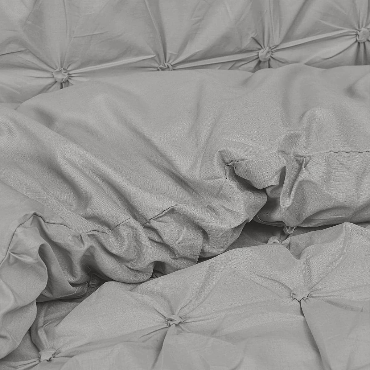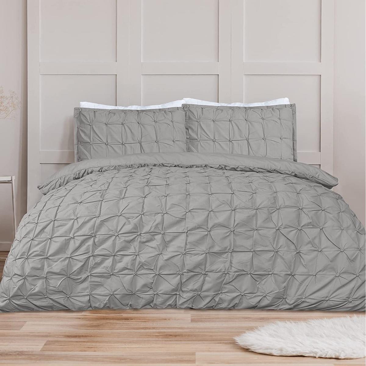 Sleepdown Rouched Pleat Duvet Set Quilt Cover Bedding - Light Grey / Superking